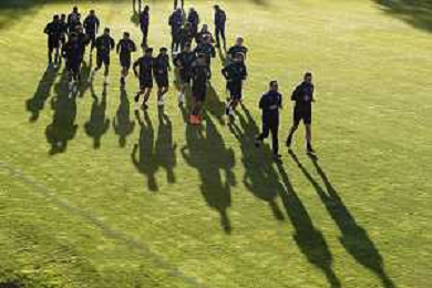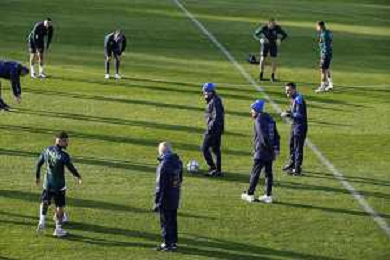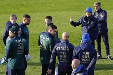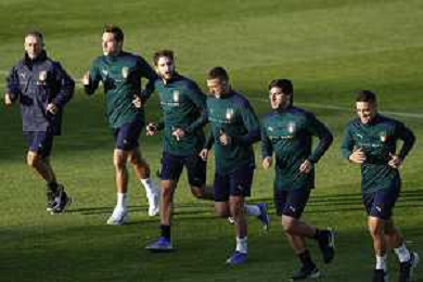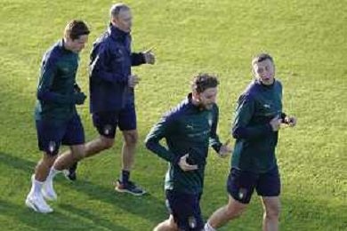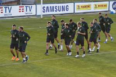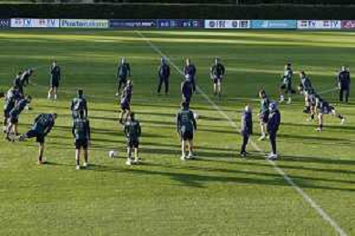 Ritiro della Nazionale Italiana di Calcio presso il centro tecnico federale della FIGC a Coverciano - nella foto: riscaldamento ©Claudio Zamagni/Agenzia Aldo Liverani