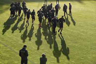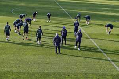 Ritiro della Nazionale Italiana di Calcio presso il centro tecnico federale della FIGC a Coverciano - nella foto: il riscaldamento ©Claudio Zamagni/Agenzia Aldo Liverani