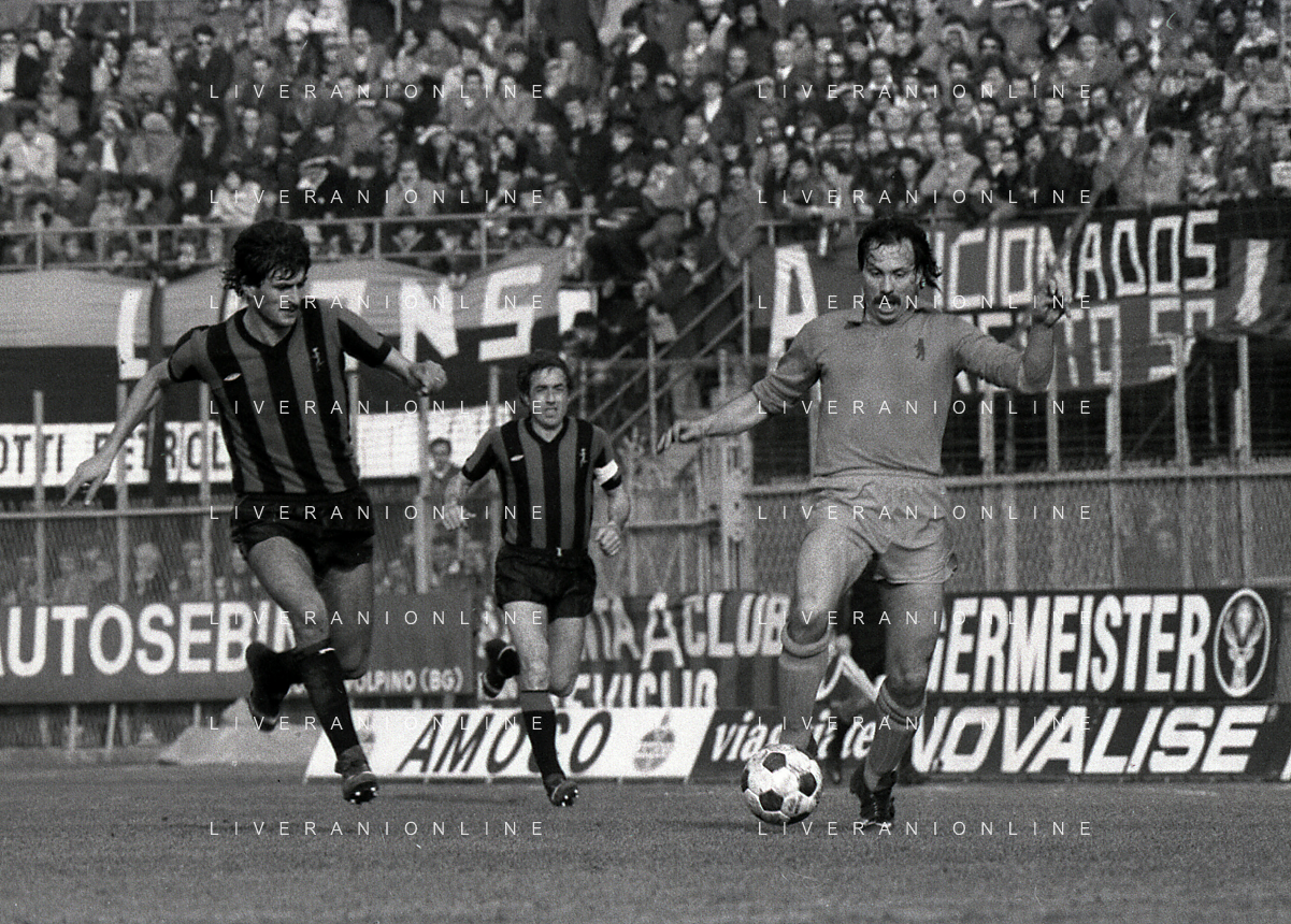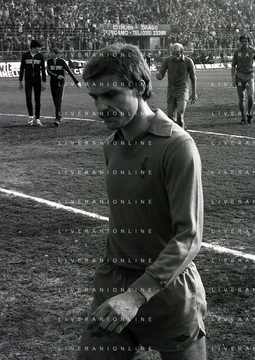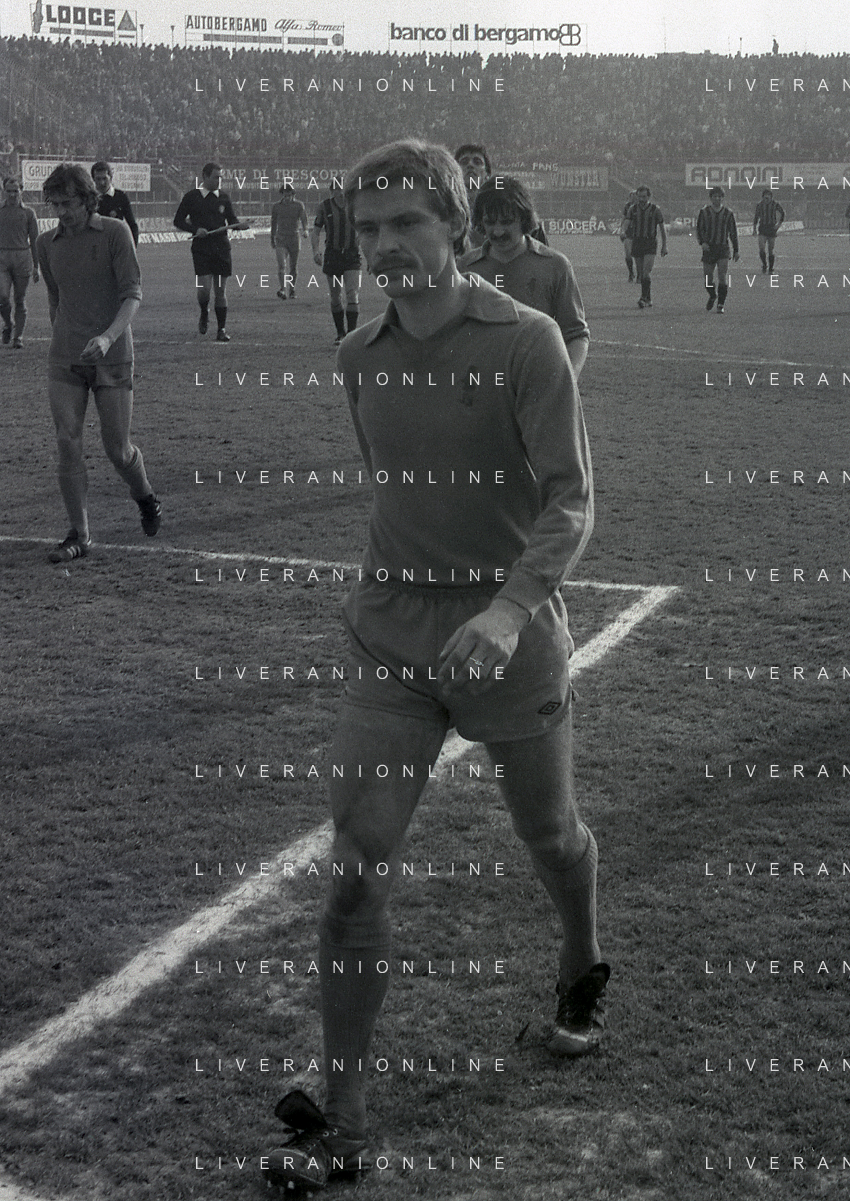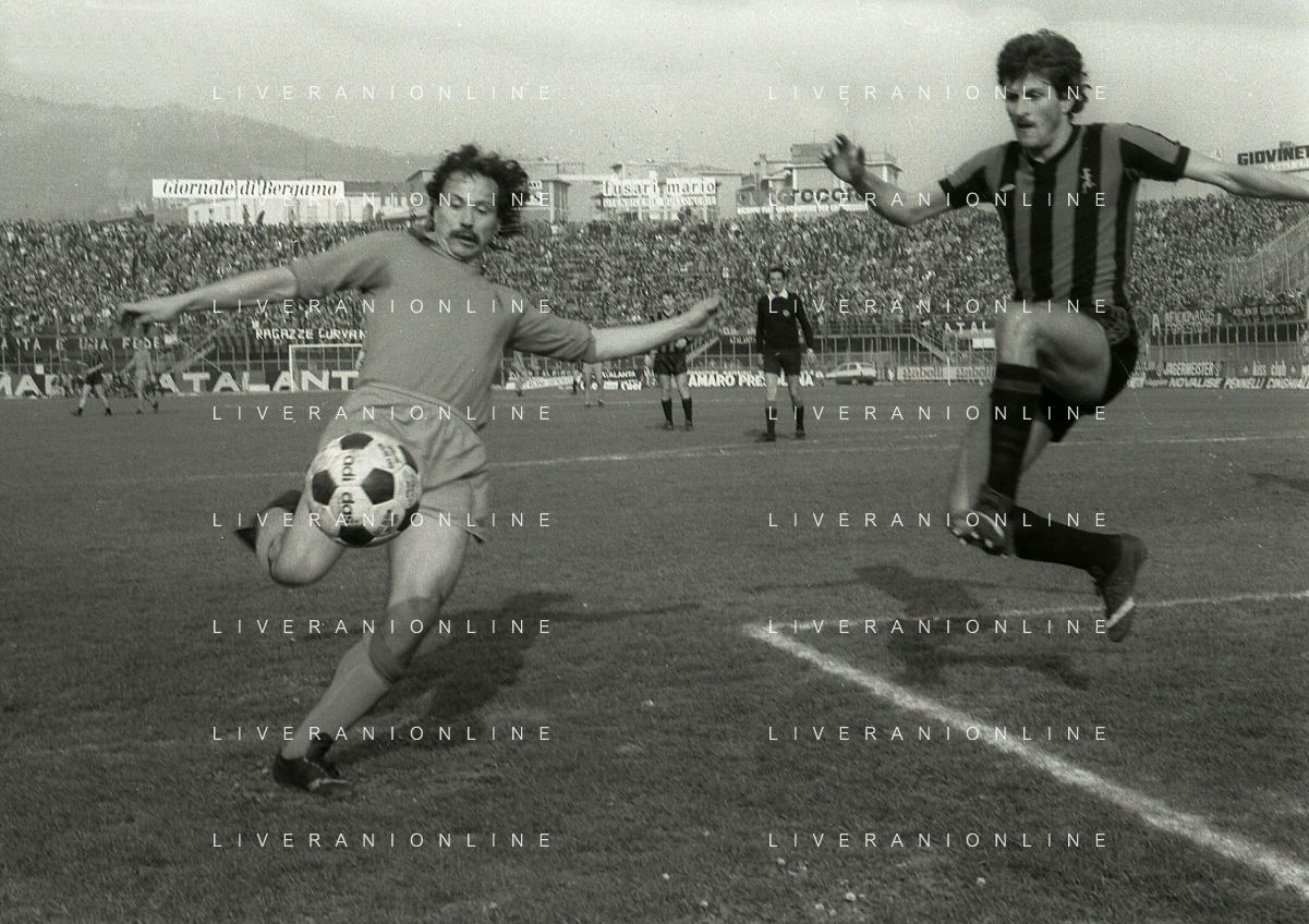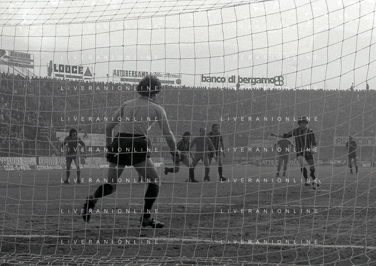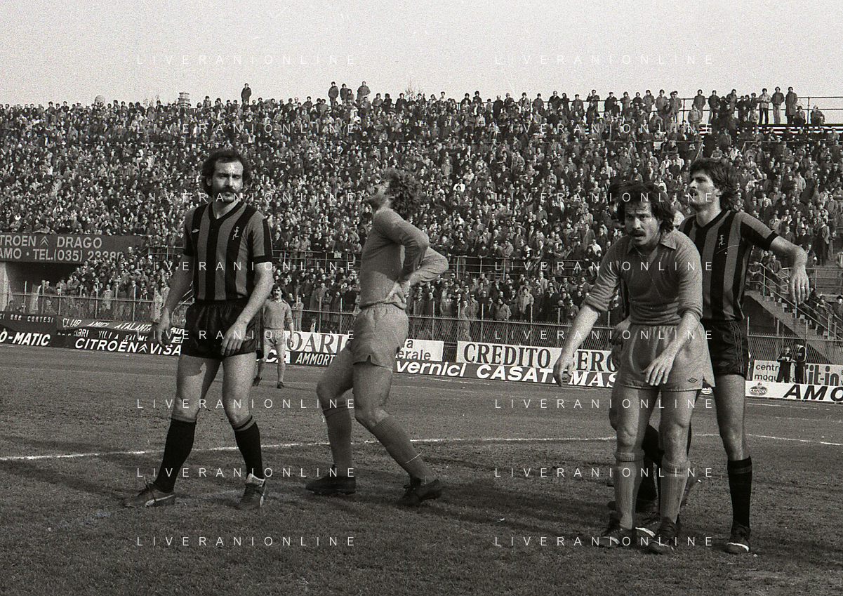 24-02-1980 BERGAMO CAMPIONATO DI CALCIO SERIE B ATALANTA-PISTOIESE 0-0 NELLA FOTO ANTONIO ROCCA-PIER GIUSEPPE MOSTI-NELLO SALTUTTI E GIOVANNI MEI AG ALDO LIVERANI SAS