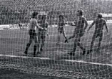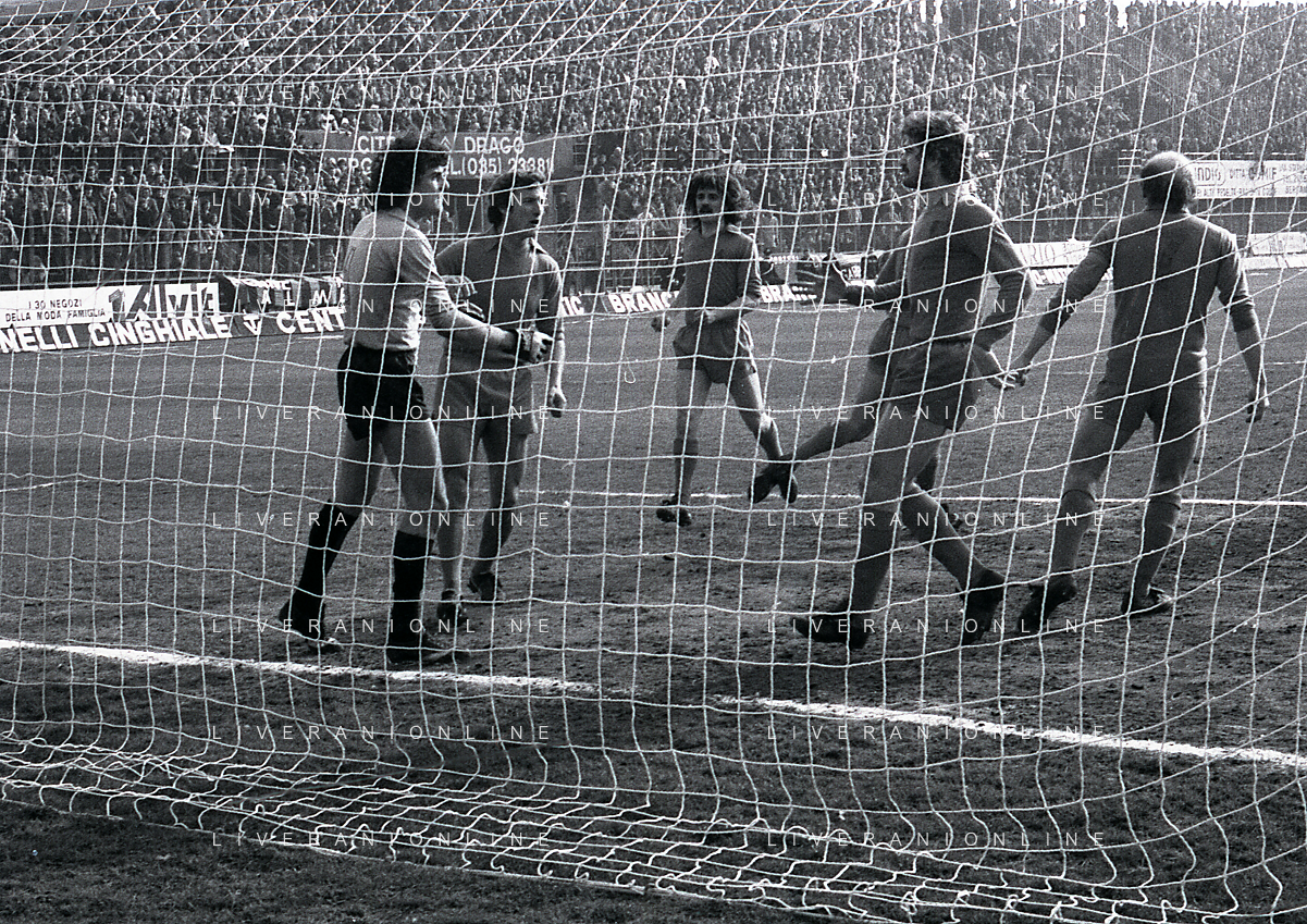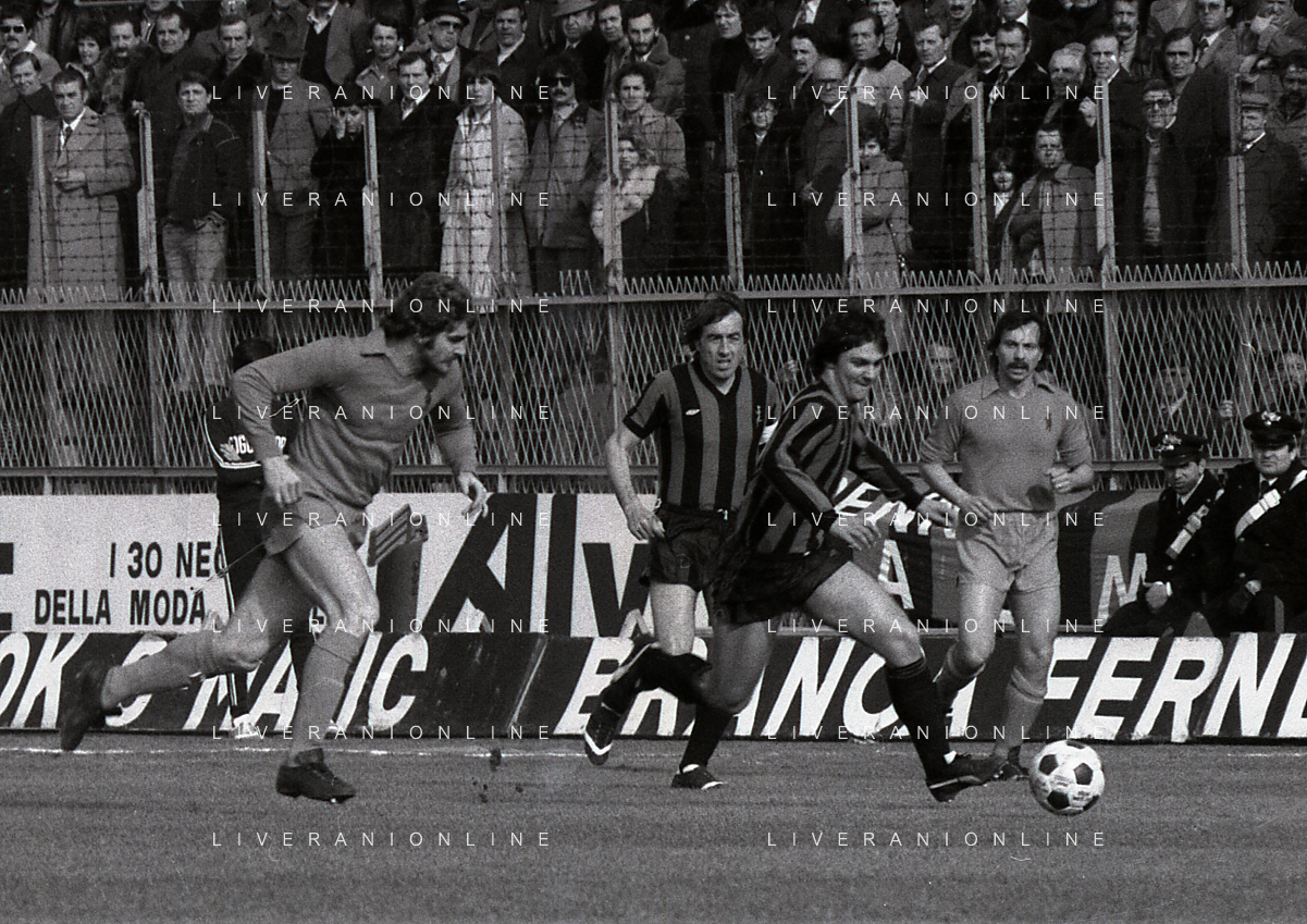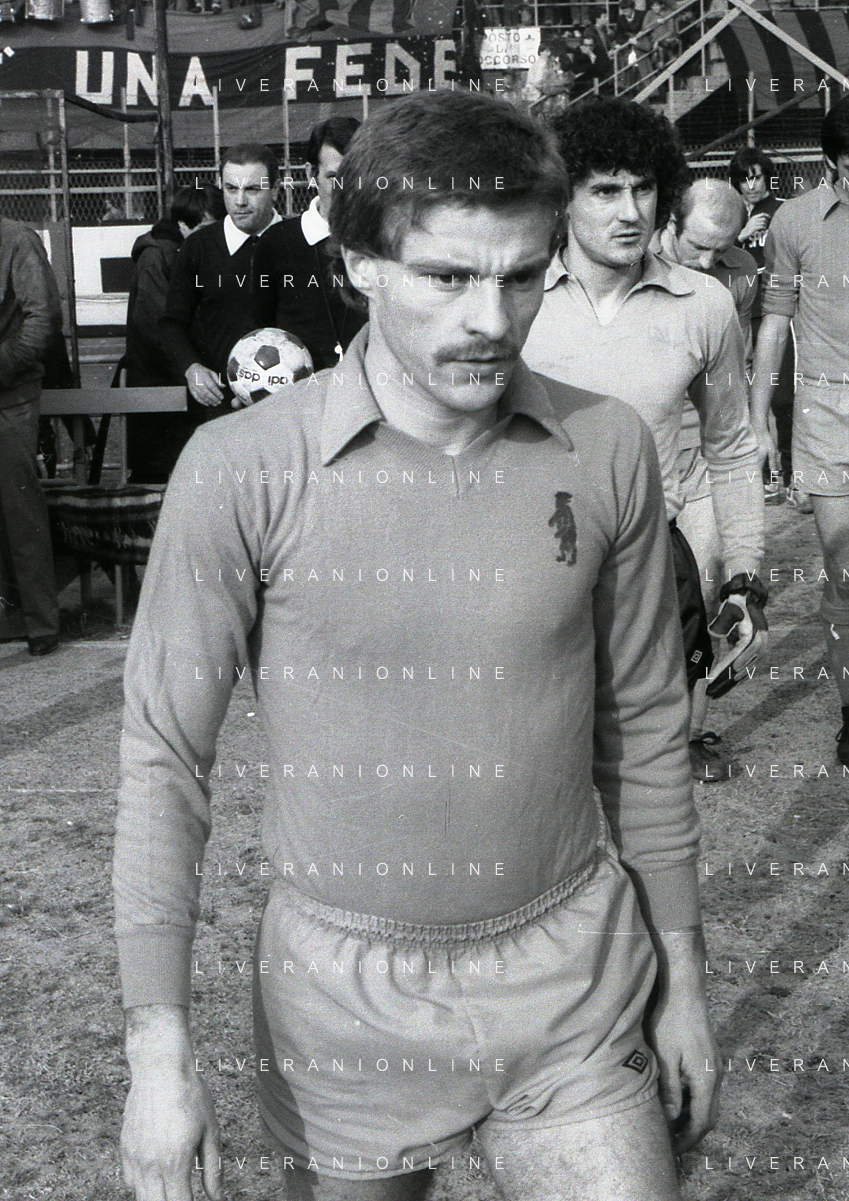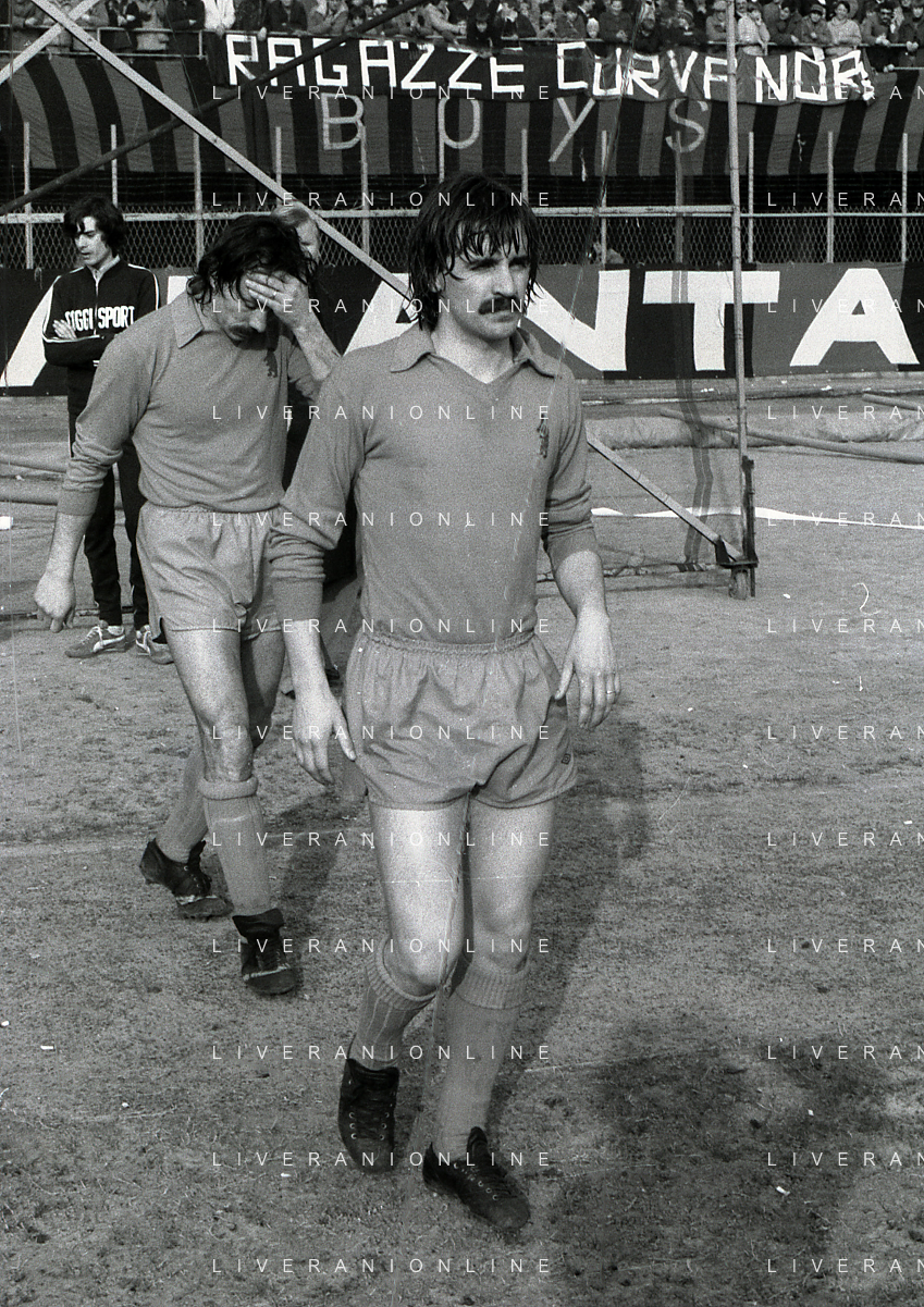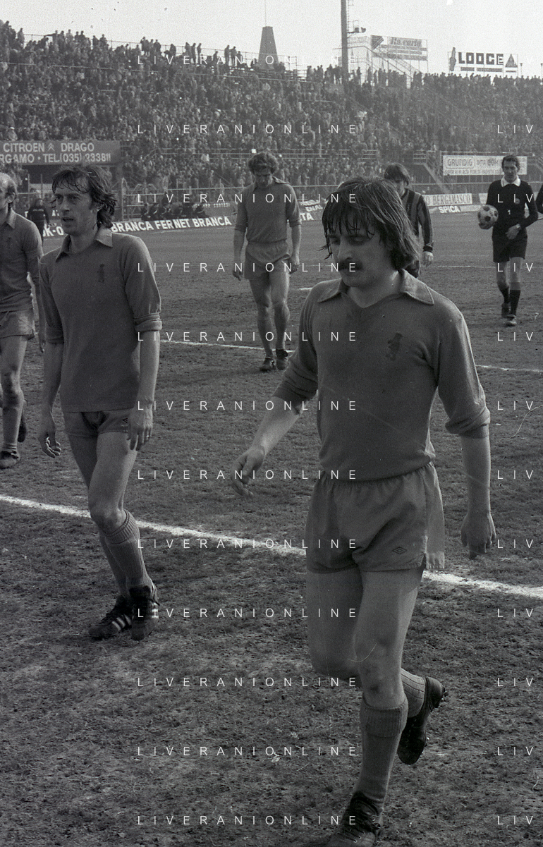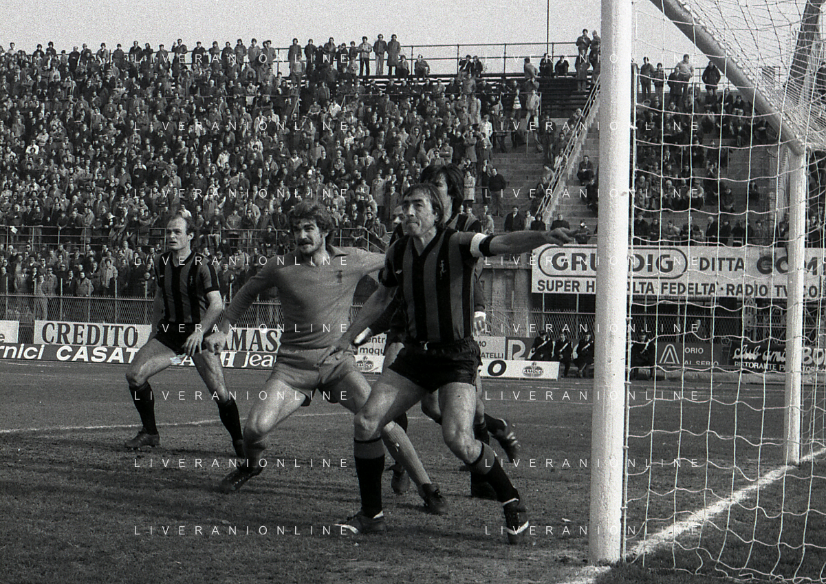 24-02-1980 BERGAMO CAMPIONATO DI CALCIO SERIE B ATALANTA-PISTOIESE 0-0 NELLA FOTO ANTONIO ROCCA-PIER GIUSEPPE MOSTI-NELLO SALTUTTI E GIOVANNI MEI AG ALDO LIVERANI SAS