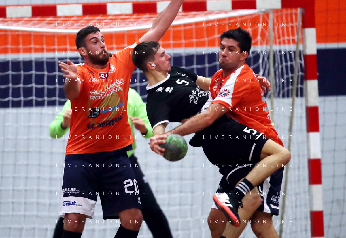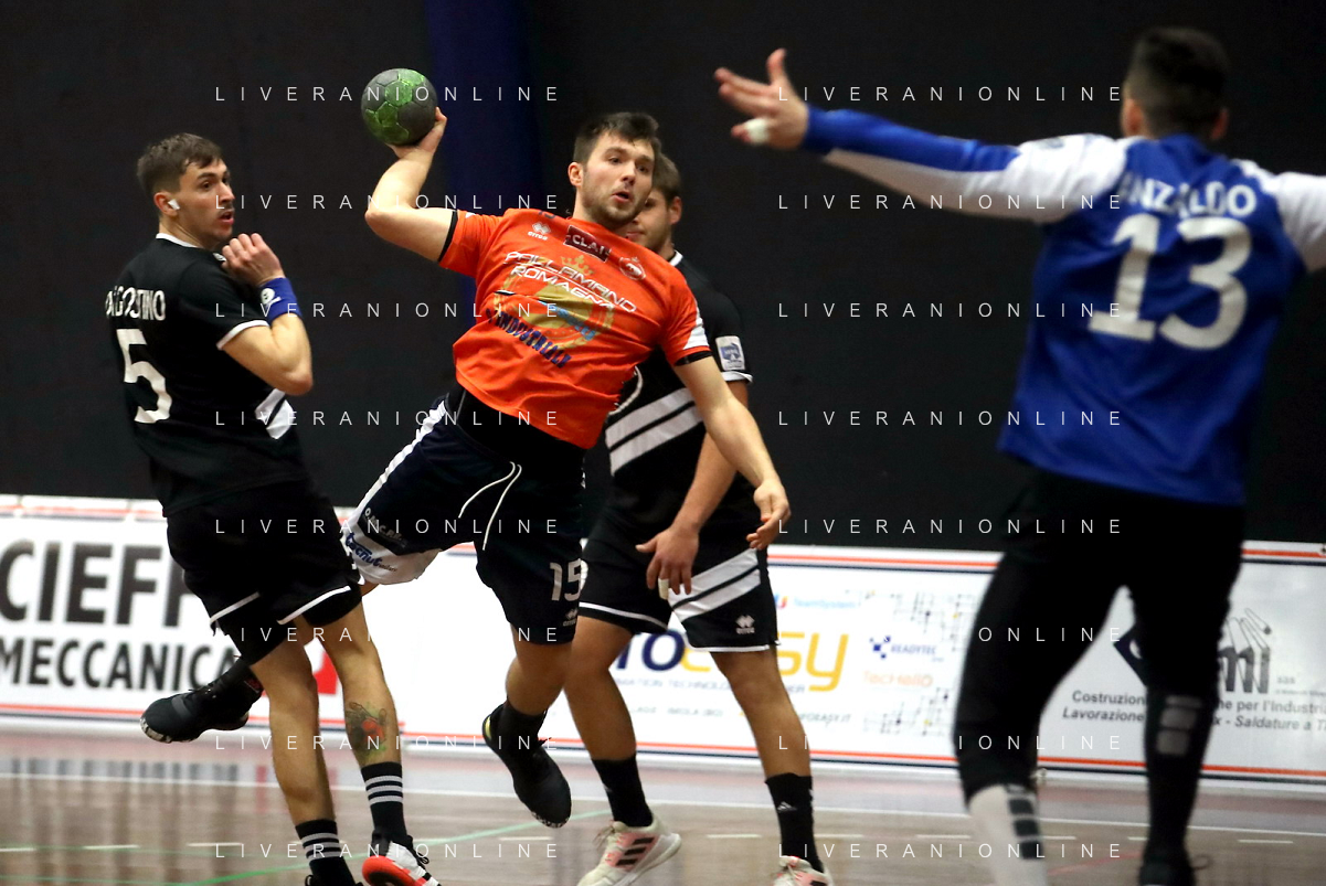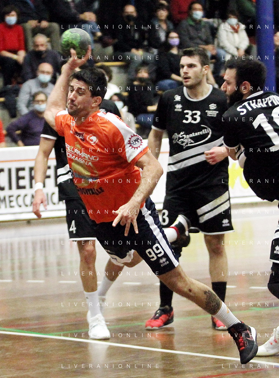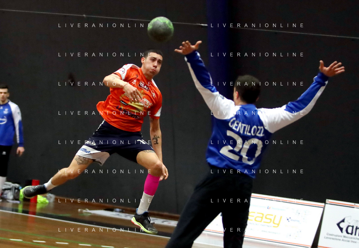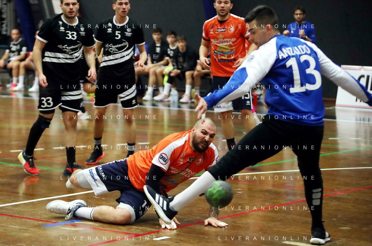 IMOLA 13 11 2021 PALLAMANO ROMAGNA-CINGOLI 27-28 SERIE A2 NELLA FOTO RINALDO CERONI E ANDREA DALL'AGLIO IN DIFESA FOTO GIANNI SANNA-AG ALDO LIVERANI SAS