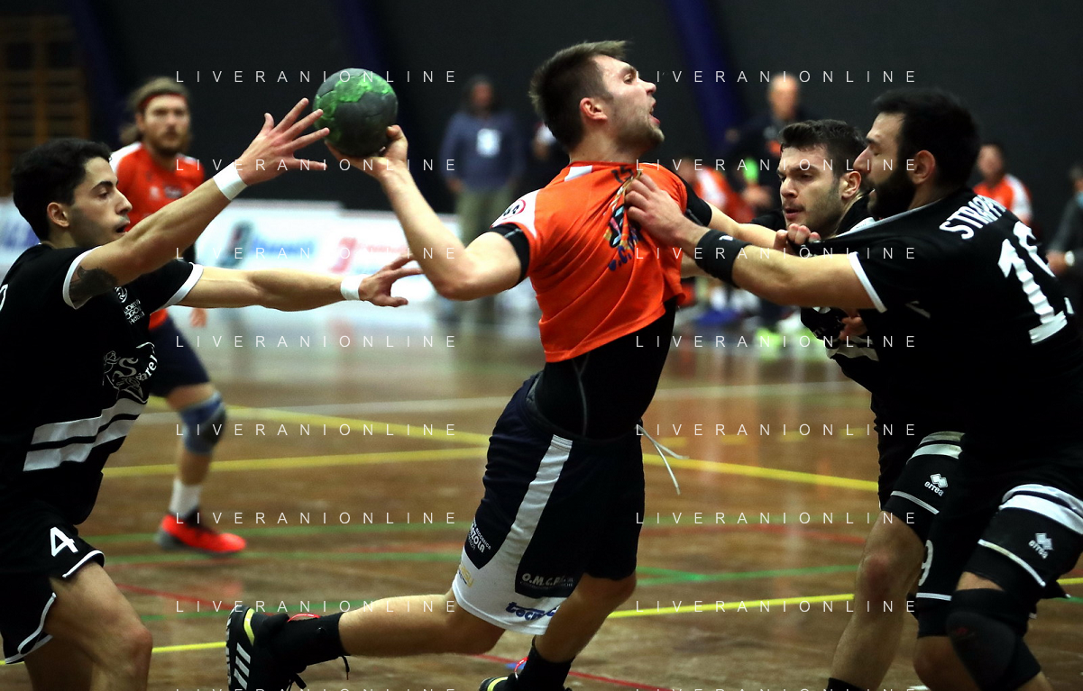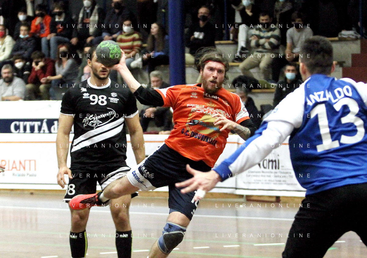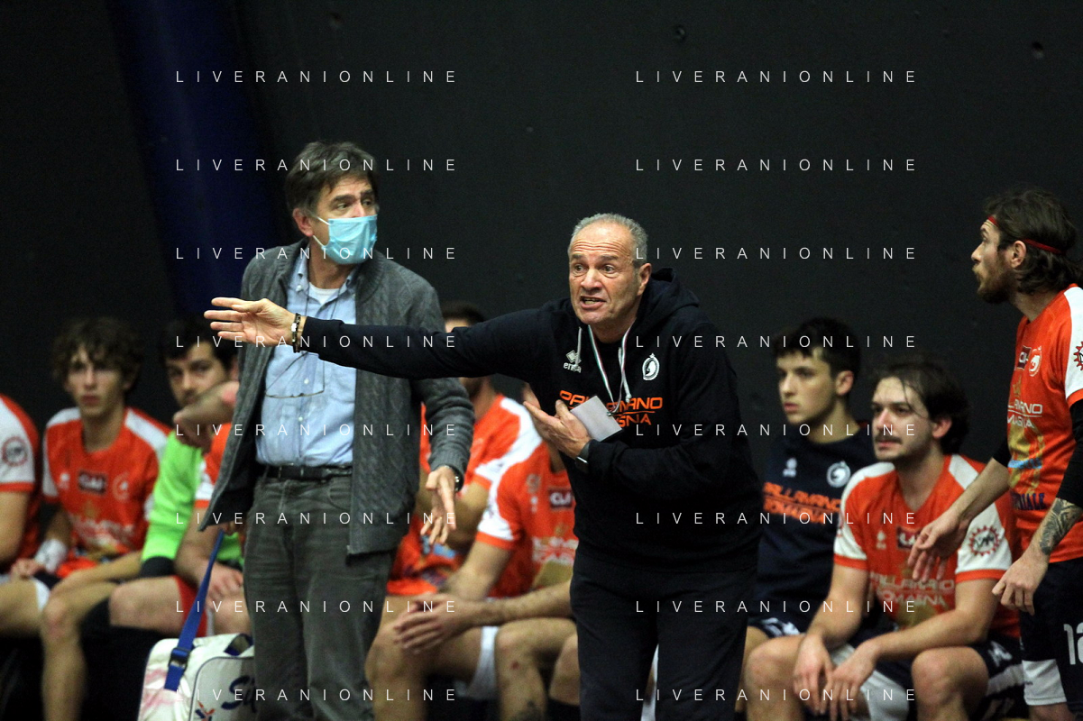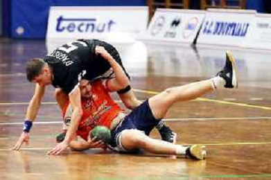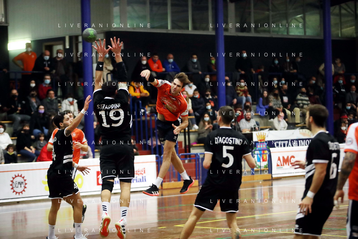 IMOLA 13 11 2021 PALLAMANO ROMAGNA-CINGOLI 27-28 SERIE A2 NELLA FOTO RINALDO CERONI E ANDREA DALL'AGLIO IN DIFESA FOTO GIANNI SANNA-AG ALDO LIVERANI SAS