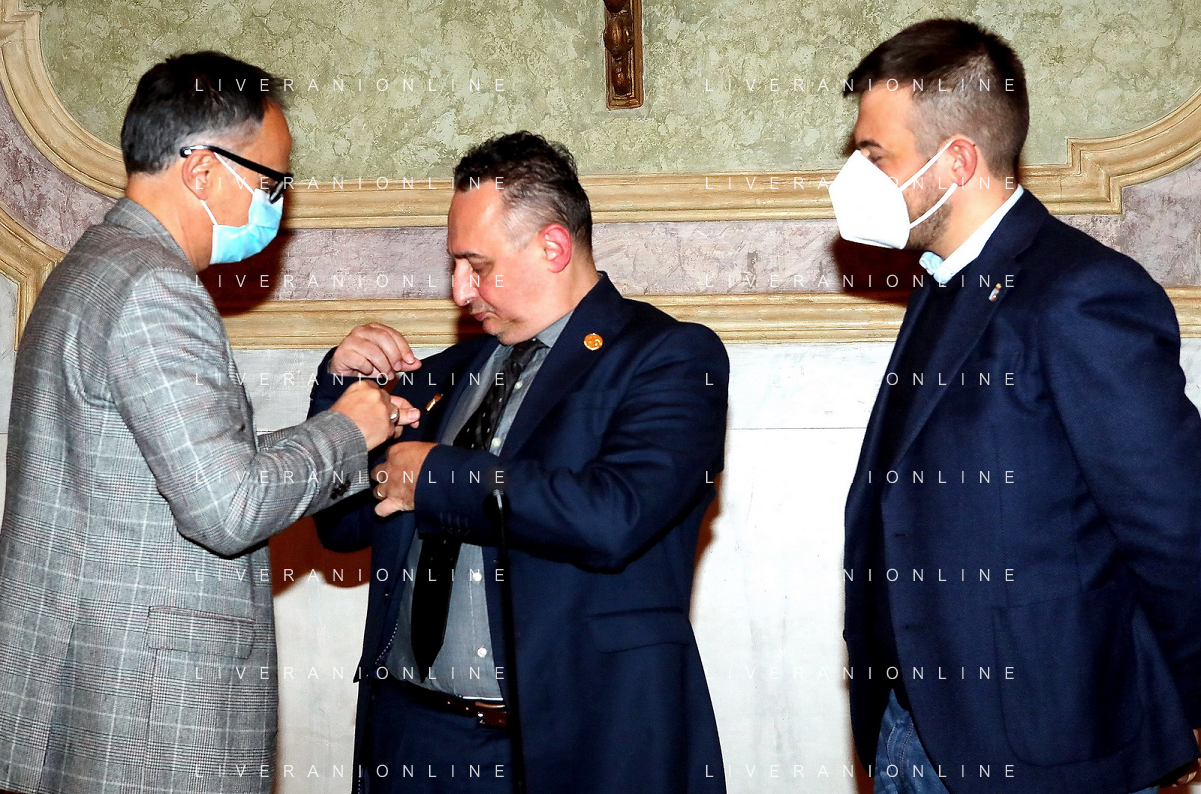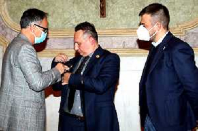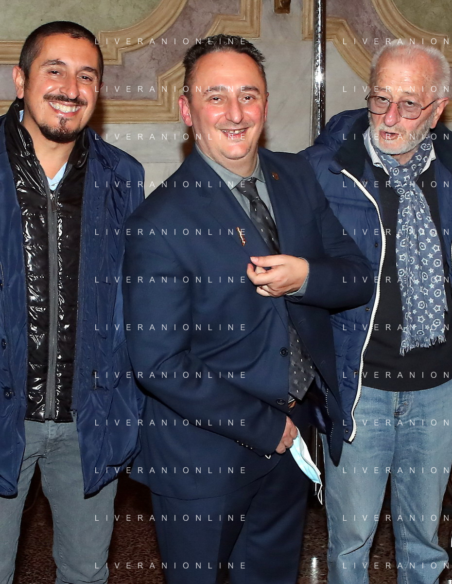 IMOLA 16 11 2021 GARGANELLO D'ORO CONFERITO ALLA FONDAZIONE BANCO ALIMENTARE EMILIA ROMAGNA NELLA FOTO ASSESSORE REGIONALE DEL TURISMO ANDREA CORSINI PRESIDENTE DELLA FONDAZIONE BANCO ALIMENTARE STEFANO DALMONTE E SINDACO MARCO PANIERI FOTO GIANNI SANNA-AG ALDO LIVERANI SAS