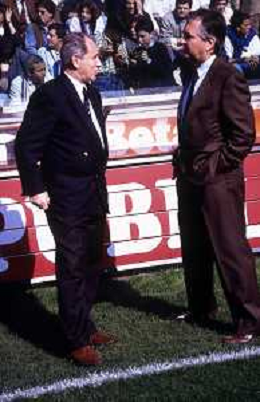 RETROSPETTIVA PAOLO BOREA DIRETTORE SPORTIVO SAMPDORIA CALCIO NELLA FOTO PAOLO BOREA DIRETTORE SPORTICO SAMPDORIA CALCIO NELL'ANNO 1991 CON IL PRESIDENTE DELLA SAMPDORIA PAOLO MANTOVANI AG ALDO LIVERANI SAS