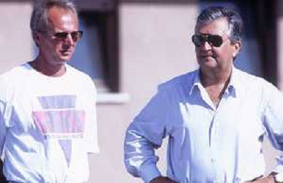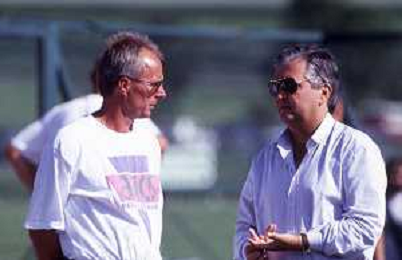 RETROSPETTIVA PAOLO BOREA DIRETTORE SPORTIVO SAMPDORIA CALCIO NELLA FOTO PAOLO BOREA DIRETTORE SPORTICO SAMPDORIA CALCIO NELL'ANNO 1991 CON L'ALLENATORE SVEN GORAN ERIKSSON AG ALDO LIVERANI SAS