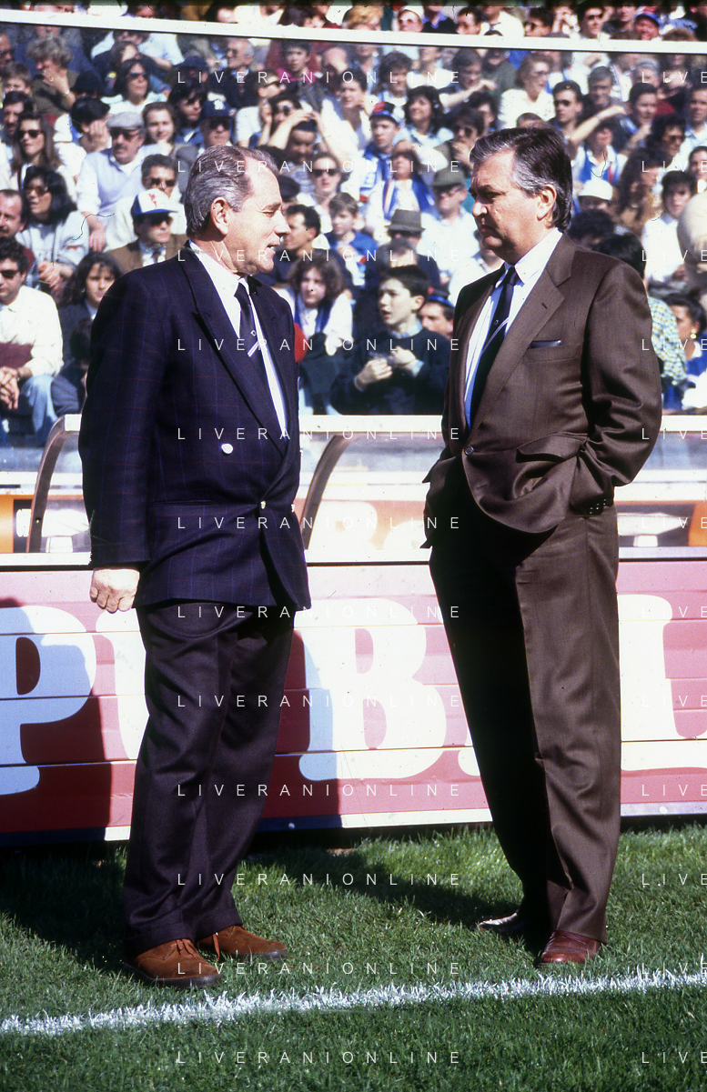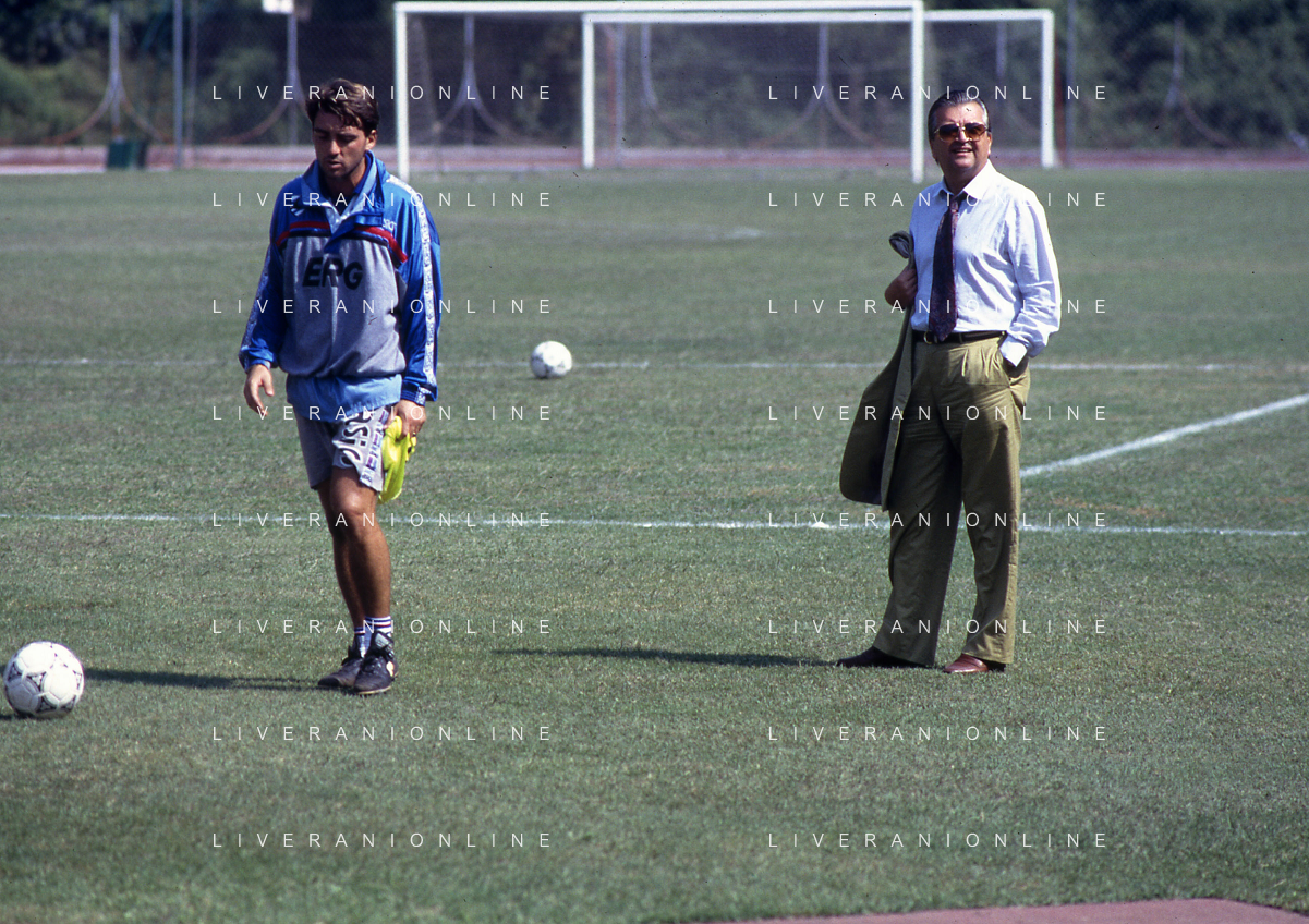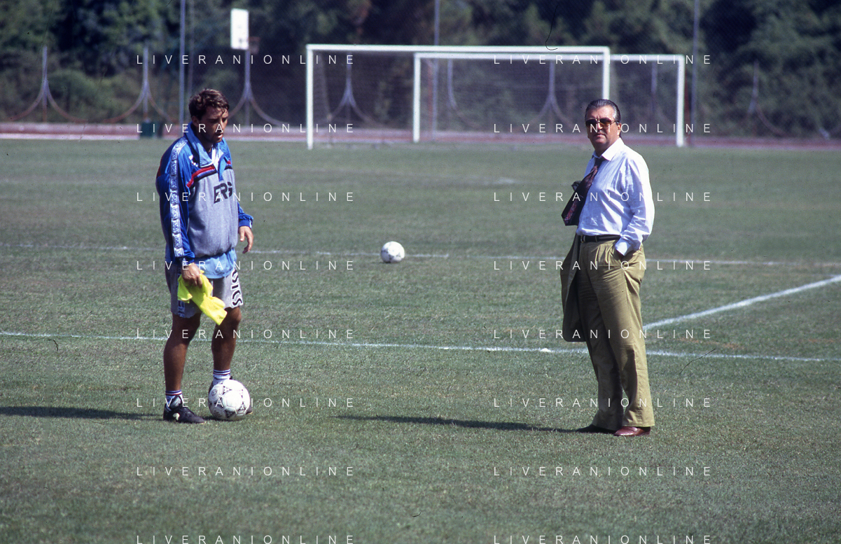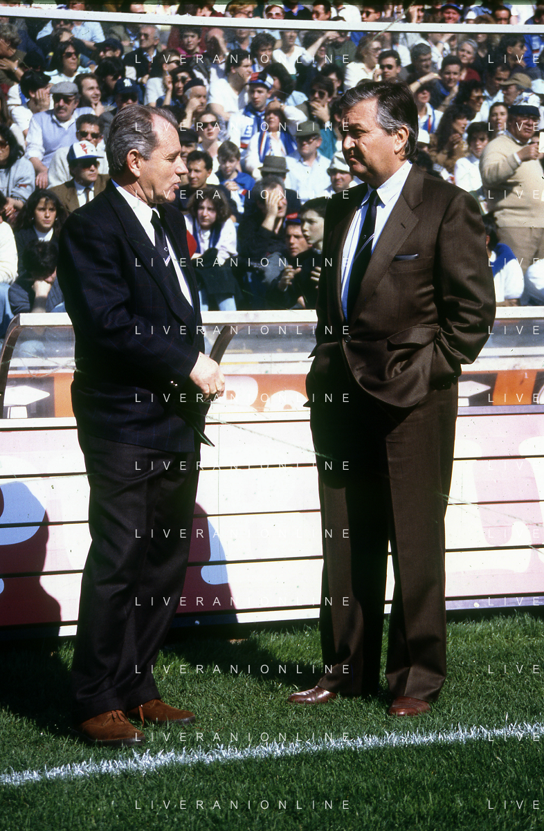 RETROSPETTIVA PAOLO BOREA DIRETTORE SPORTIVO SAMPDORIA CALCIO NELLA FOTO PAOLO BOREA DIRETTORE SPORTIVO SAMPDORIA CON L'ALLENATORE VUJADIN BOSVOV CALCIO NELL'ANNO 1990 AG ALDO LIVERANI SAS