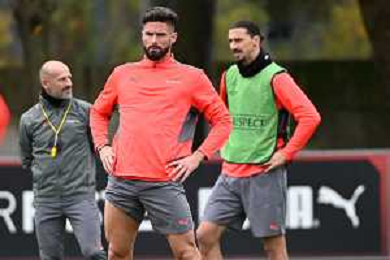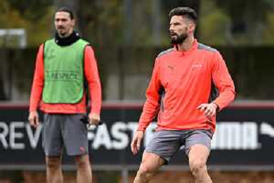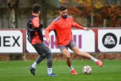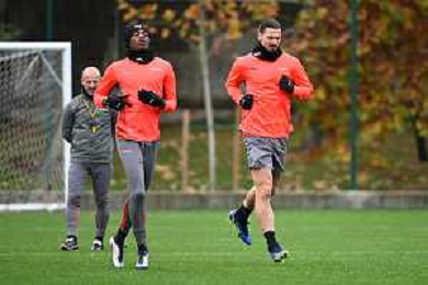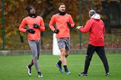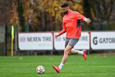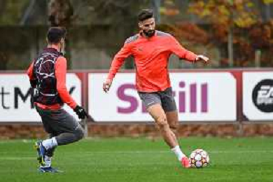 © TVRG allenamento Milan nella foto Olivier Giroud Carnago (VA) 23-11-2021 Centro sportivo Milanello Allenamento del Milan in preparazione della gara contro l'Atletico Madrid valevole per la 5a giornata del gruppo B della fase a gironi della UEFA Champions League foto Roberto Garavaglia/ag. Aldo Liverani sas/AGENZIA ALDO LIVERANI SAS