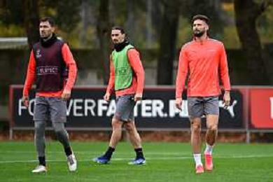 © TVRG allenamento Milan nella foto da SX Alessio Romagnoli, Zlatan Ibrahimovic e Olivier Giroud Carnago (VA) 23-11-2021 Centro sportivo Milanello Allenamento del Milan in preparazione della gara contro l'Atletico Madrid valevole per la 5a giornata del gruppo B della fase a gironi della UEFA Champions League foto Roberto Garavaglia/ag. Aldo Liverani sas/AGENZIA ALDO LIVERANI SAS