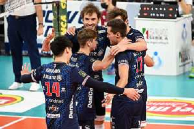 © TVRG esultanza Milano dopo un punto Allianz Milano vs Top Volley Cisterna Campionato SuperLega Credem Banca - 8a giornata Milano 23-11-2021 Allianz Cloud PalaLido foto Roberto Garavaglia/ag. Aldo Liverani sas/AGENZIA ALDO LIVERANI SAS