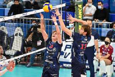 © TVRG Paolo Porro (Milano) e sulla DX Matteo Piano (Milano) Allianz Milano vs Top Volley Cisterna Campionato SuperLega Credem Banca - 8a giornata Milano 23-11-2021 Allianz Cloud PalaLido foto Roberto Garavaglia/ag. Aldo Liverani sas/AGENZIA ALDO LIVERANI SAS