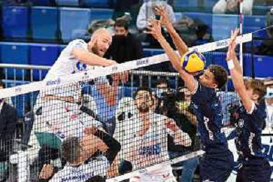 © TVRG Aidan Zingel (Cisterna) SX e Barthelemy Chinenyeze (Milano) DX Allianz Milano vs Top Volley Cisterna Campionato SuperLega Credem Banca - 8a giornata Milano 23-11-2021 Allianz Cloud PalaLido foto Roberto Garavaglia/ag. Aldo Liverani sas/AGENZIA ALDO LIVERANI SAS