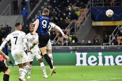 Edin Dzeko (Inter) segna il gol dell'1 a 0 Inter vs Shakhtar Donetsk UEFA Champions League fase a gironi 5a giornata - gruppo D Milano 24-11-2021 Stadio Giuseppe Meazza - San Siro foto Roberto Garavaglia/ag. Aldo Liverani sas /AGENZIA ALDO LIVERANI SAS