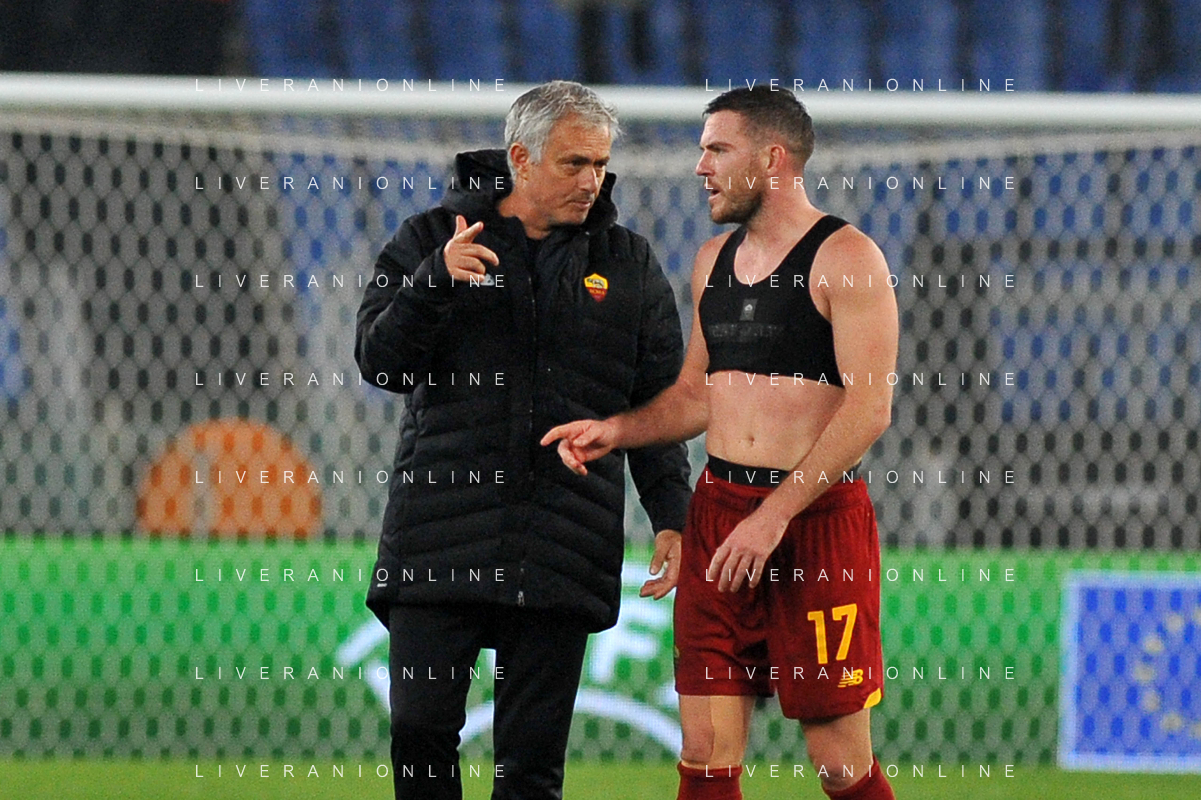 Roma vs Zorya Conference League - 5 giornata Stadio Olimpico - Roma 25-11-2021 nella foto Josè Mourinho e Jordan Veretout FOTO FEDERICO GAETANO-AG ALDO LIVERANI SAS