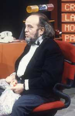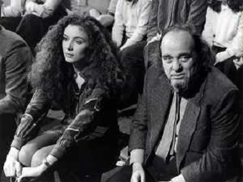 RETROSPETTIVA MARCO FERRERI REGISTA NELLA FOTO MARCO FERRERI A MILANO NELL'ANNO 1982 NELLA TRASMISSIONE “BLITZ“NELL'ANNO 1982 CON ELEONORA BRIGLIADORI AG ALDO LIVERANI SAS