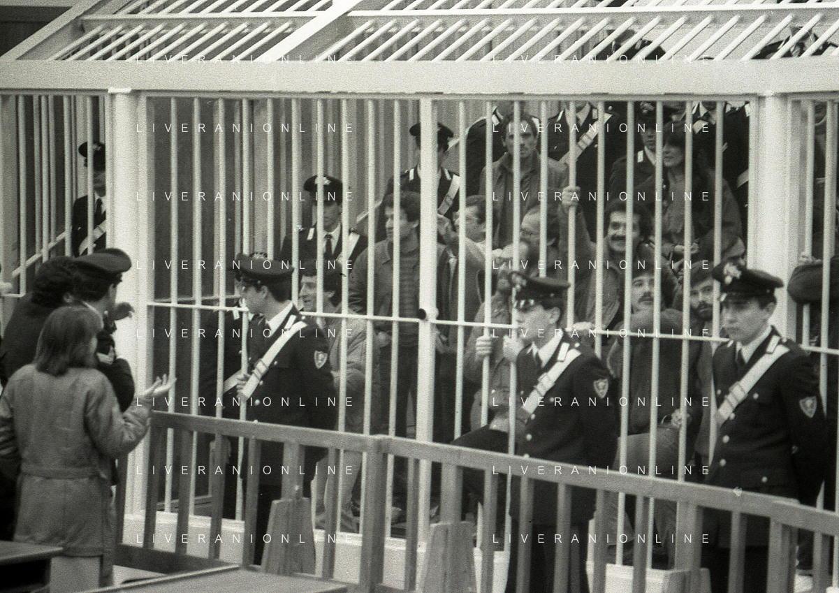 1983 MILANO AULA BUNKER SAN VITTORE PROCESSO ALLA COLONNA DELLE BRIGATE ROSSE WALTER ALASIA AG ALDO LIVERANI SAS