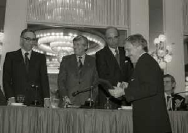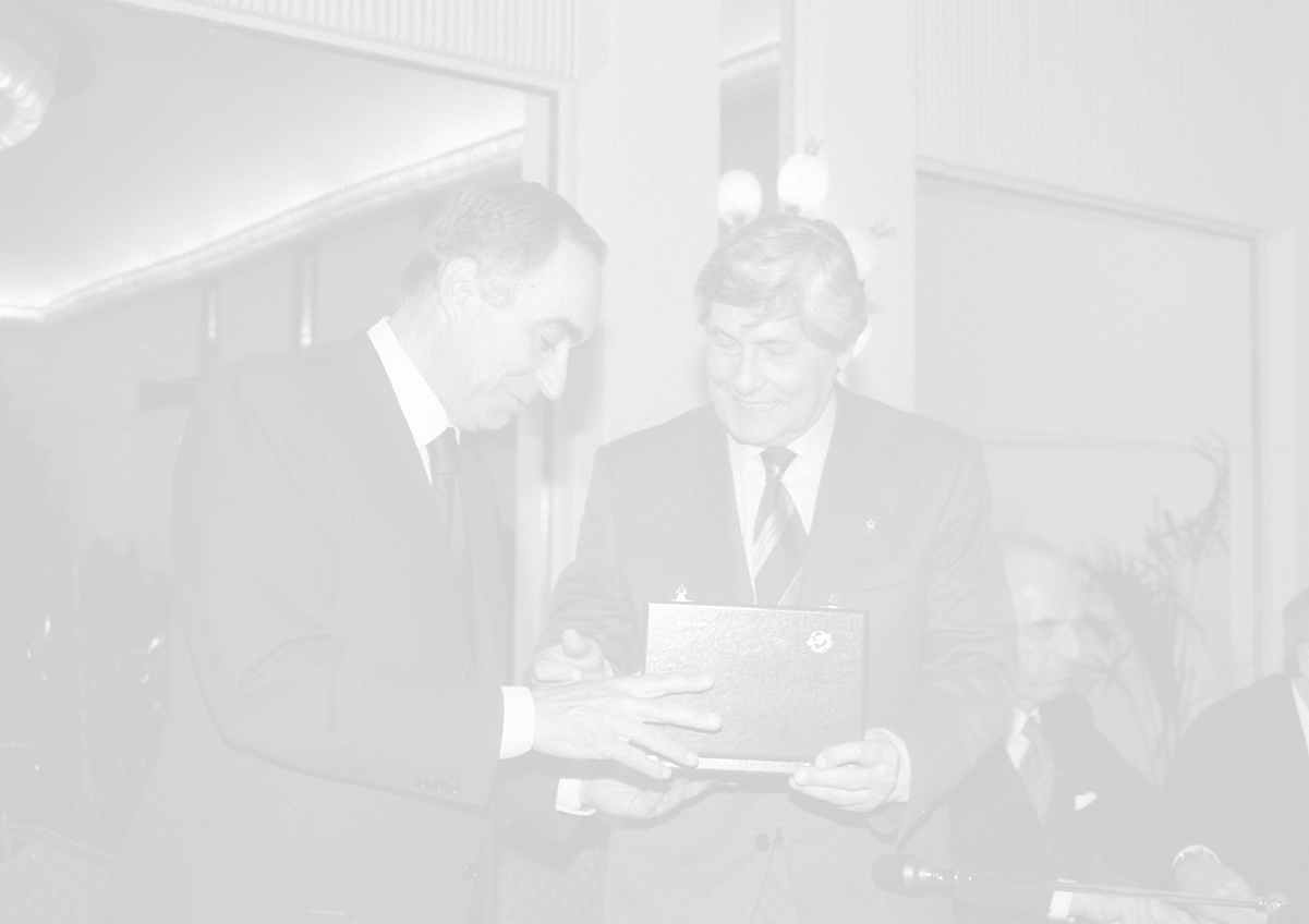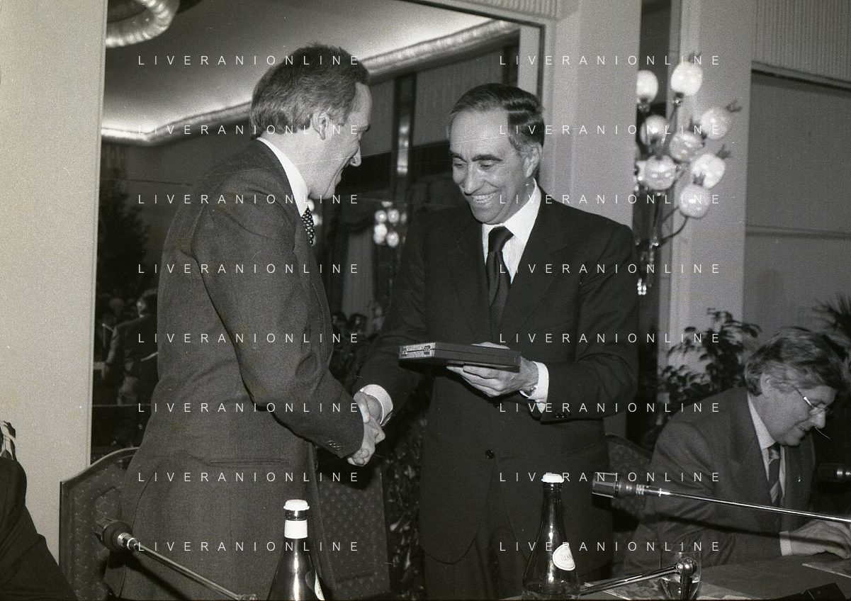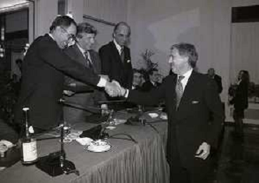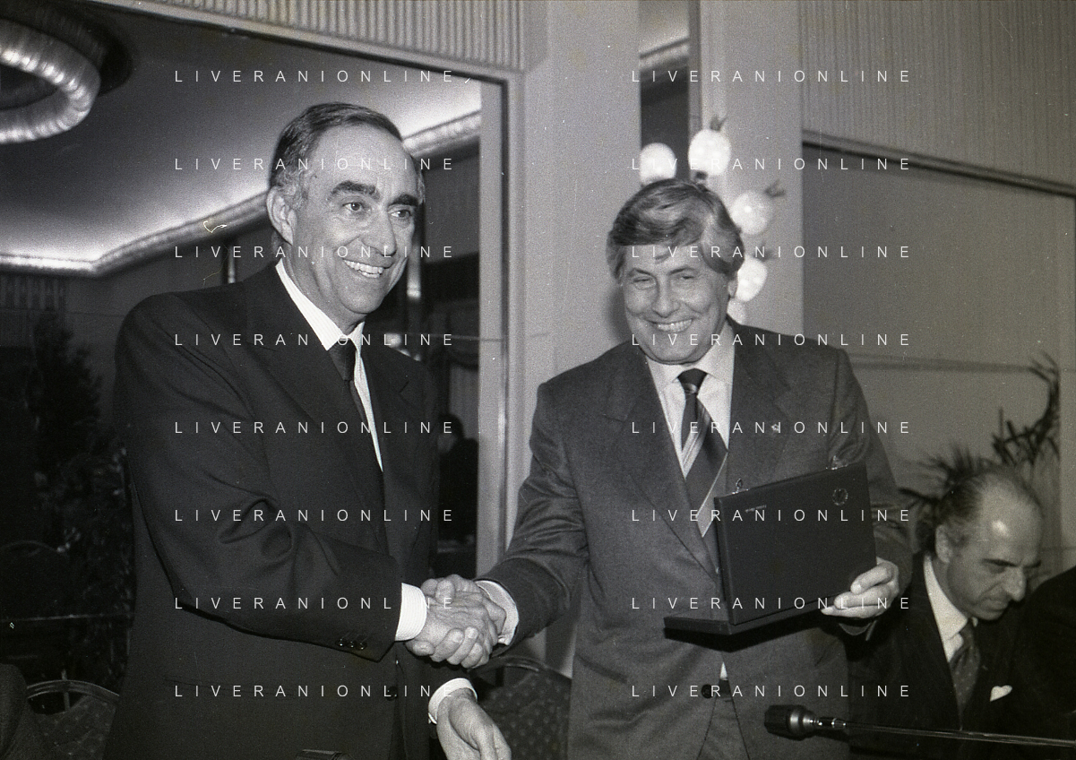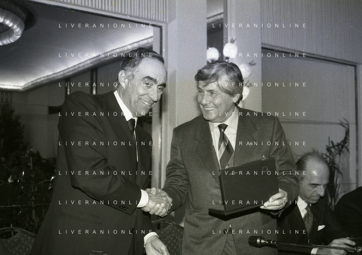16-12-1997 MILANO FESTA DI NATALE LEGA CALCIO NELLA FOTO FRANCO CARRARO E LUCIANO NIZZOLA PREMIANO ADRIANO GALLIANI AG ALDO LIVERANI SAS