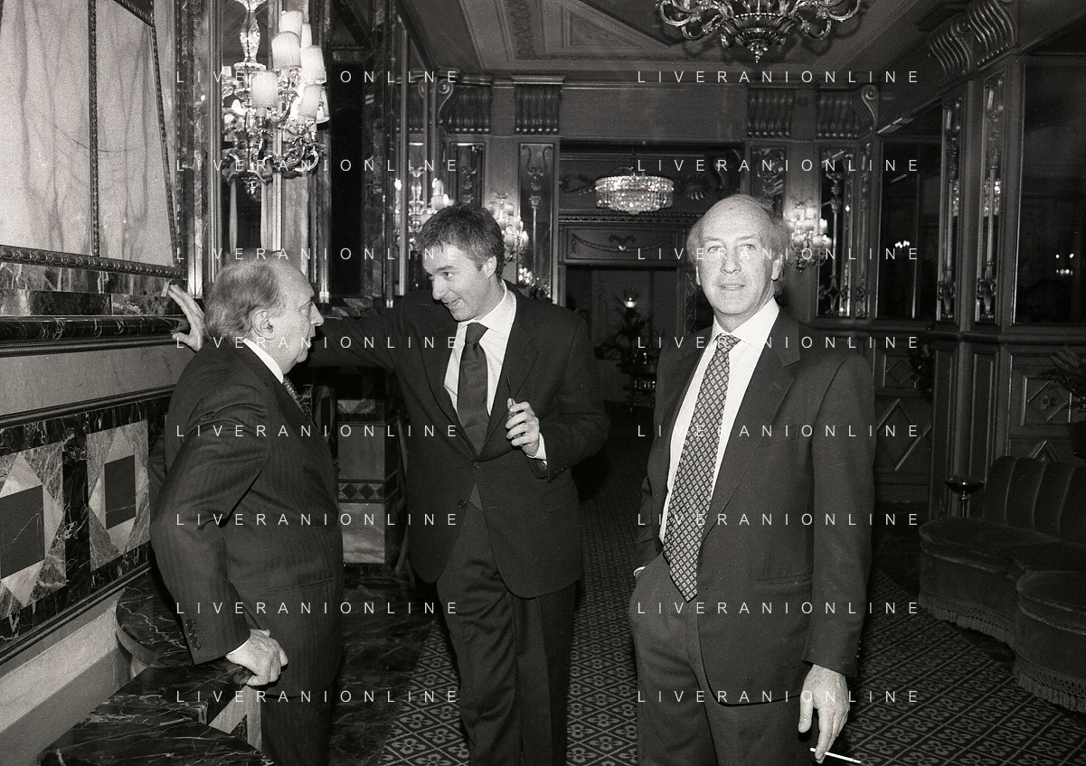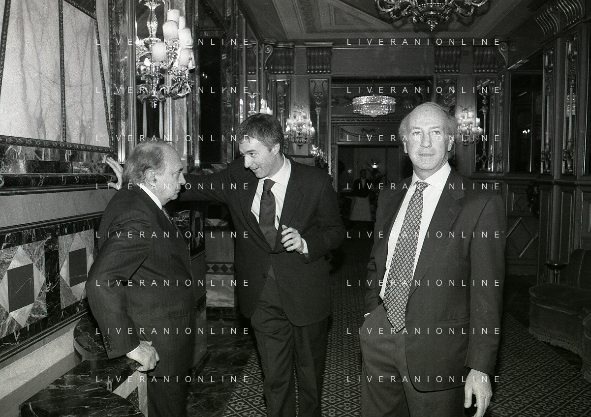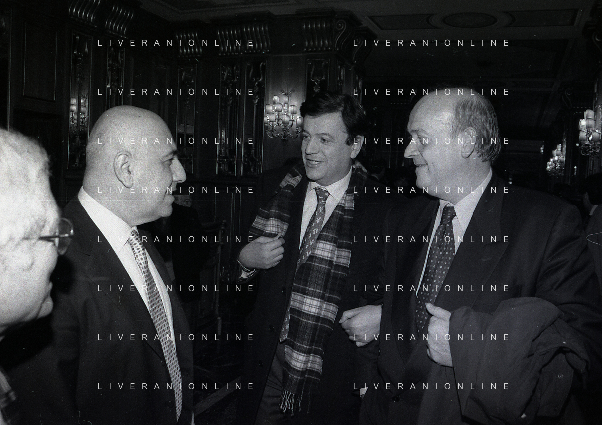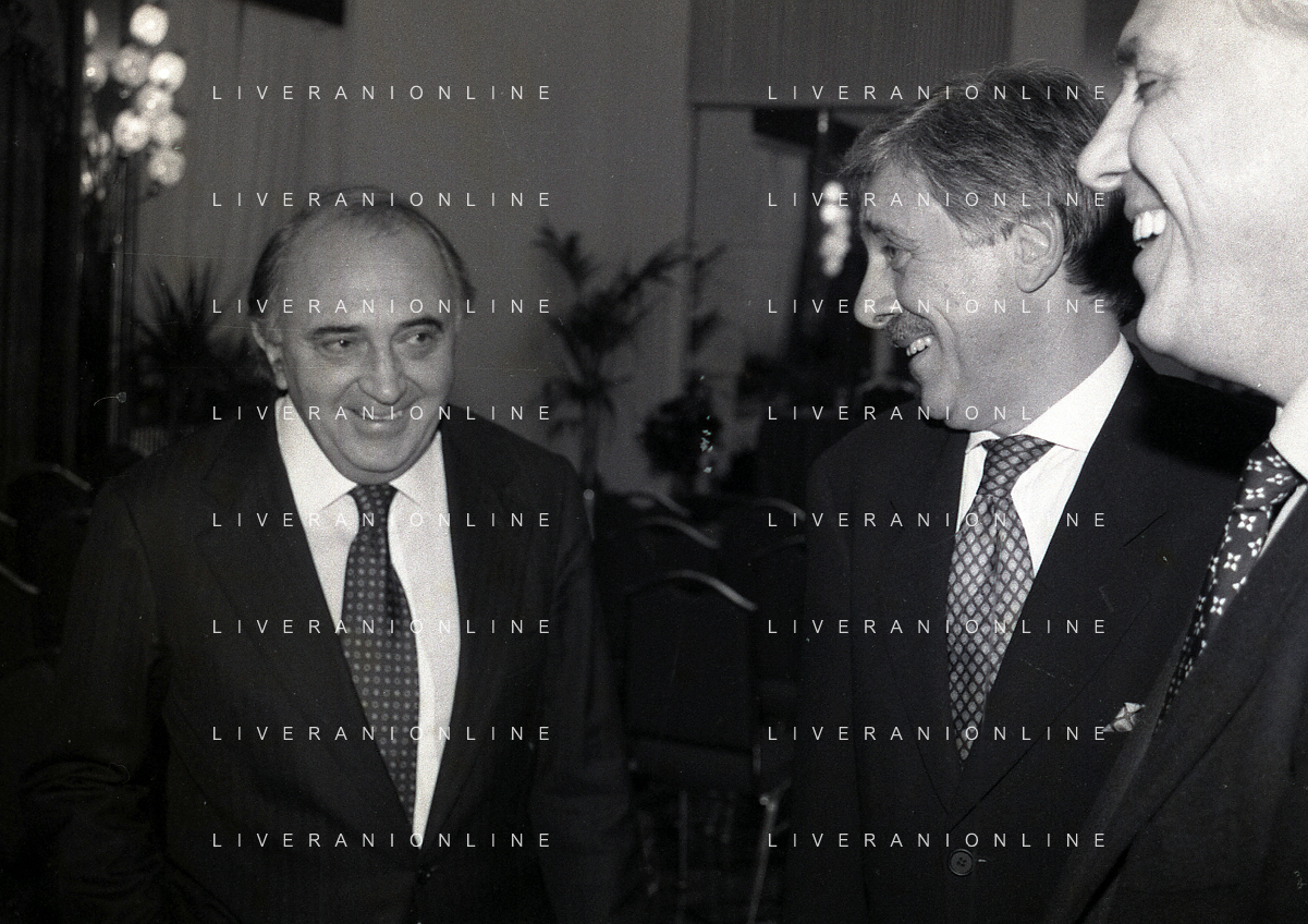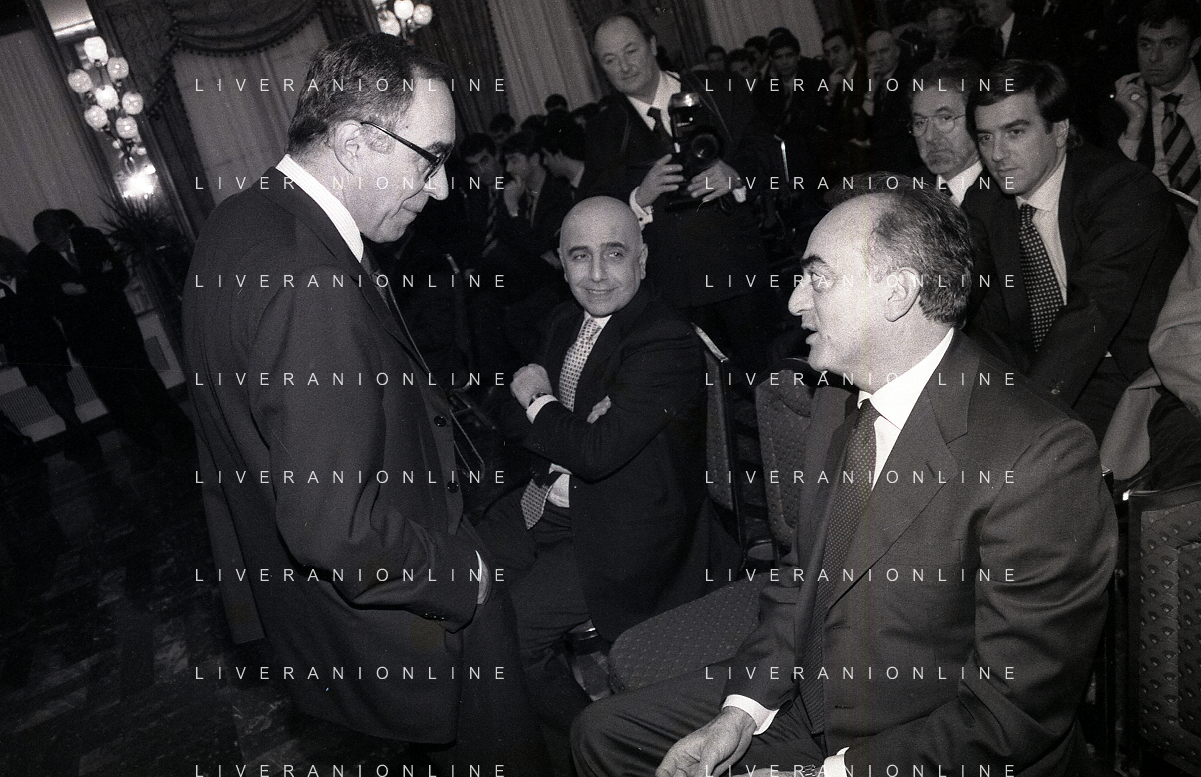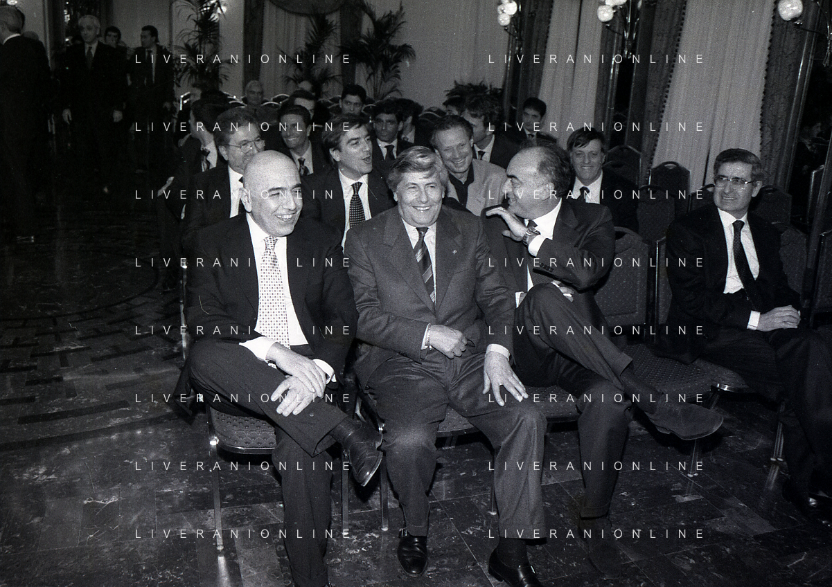 16-12-1997 MILANO FESTA DI NATALE LEGA CALCIO NELLA FOTO FRANCO CARRARO-ANTONIO GIRAUDO E ADRIANO GALLIANI AG ALDO LIVERANI SAS
