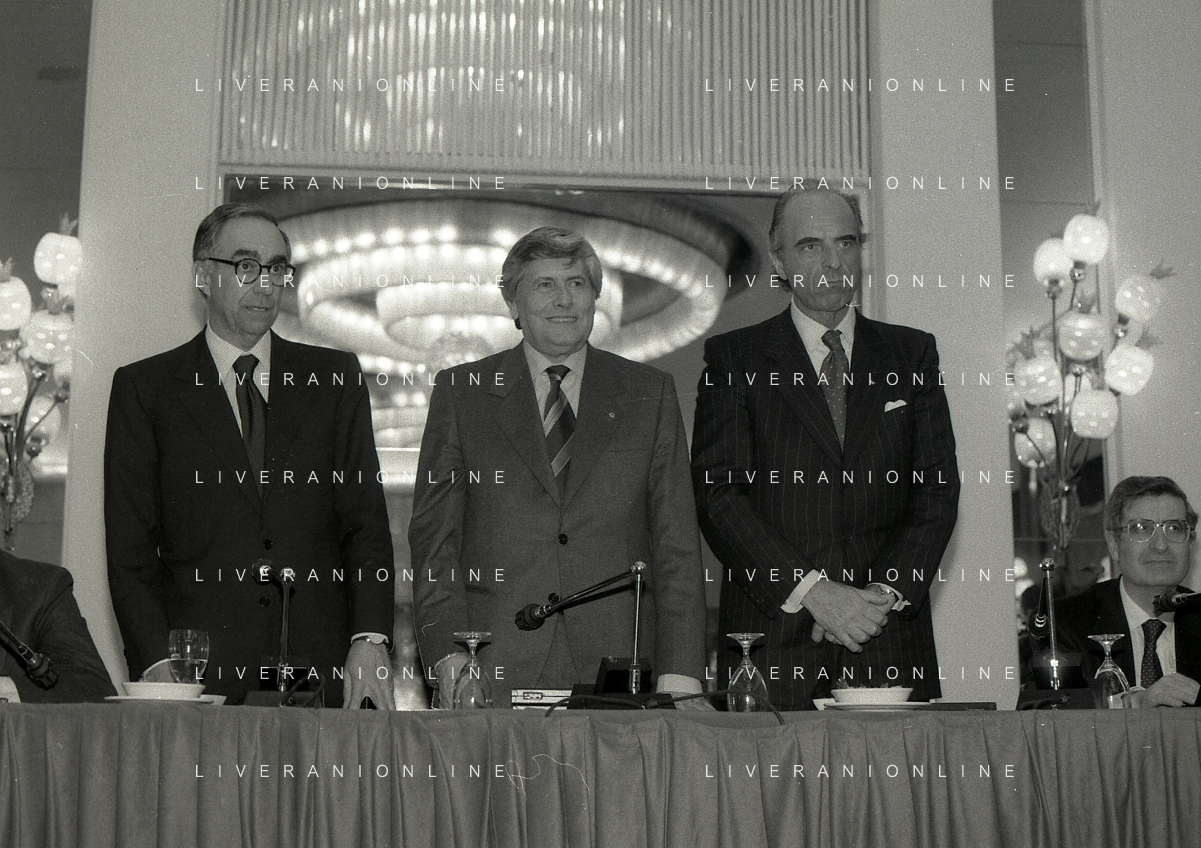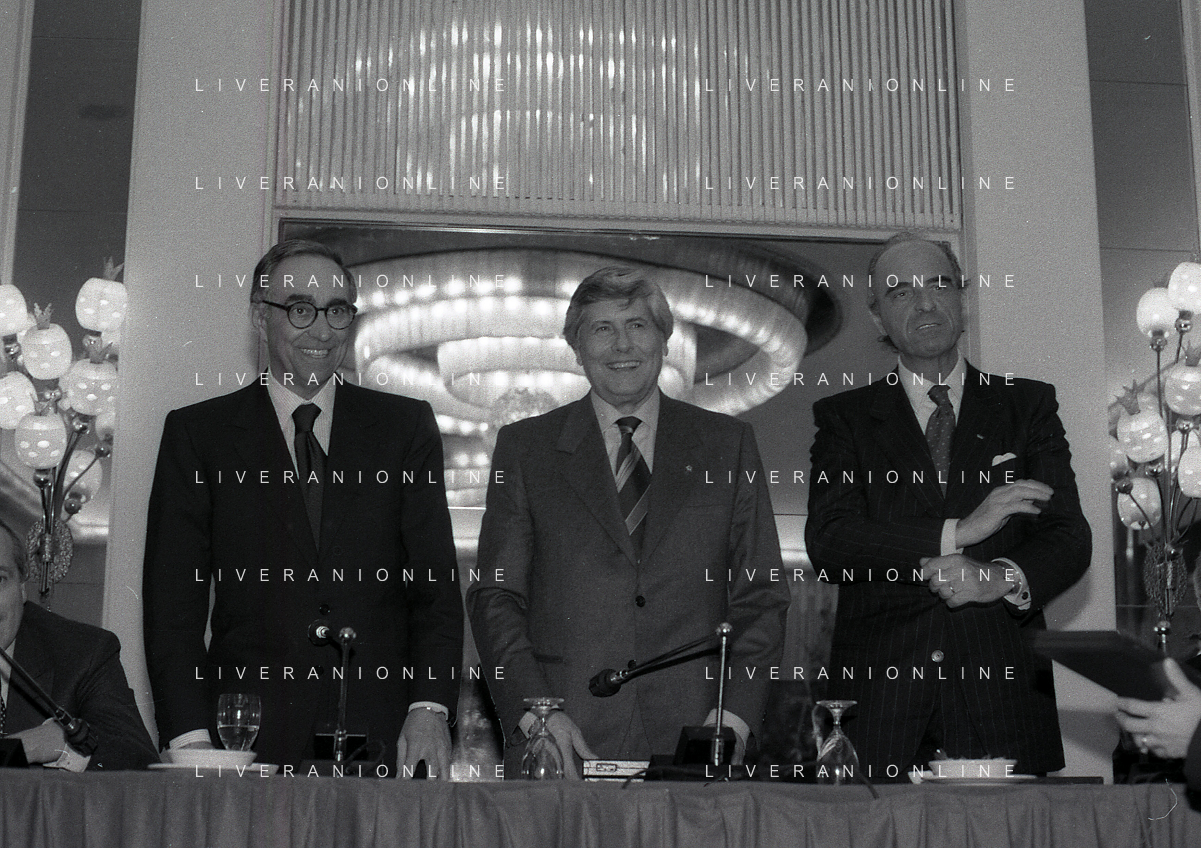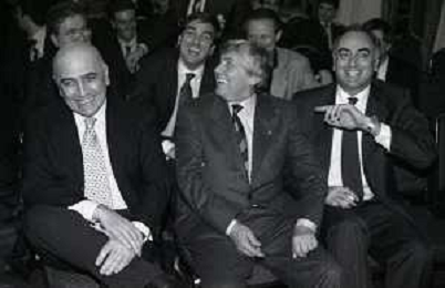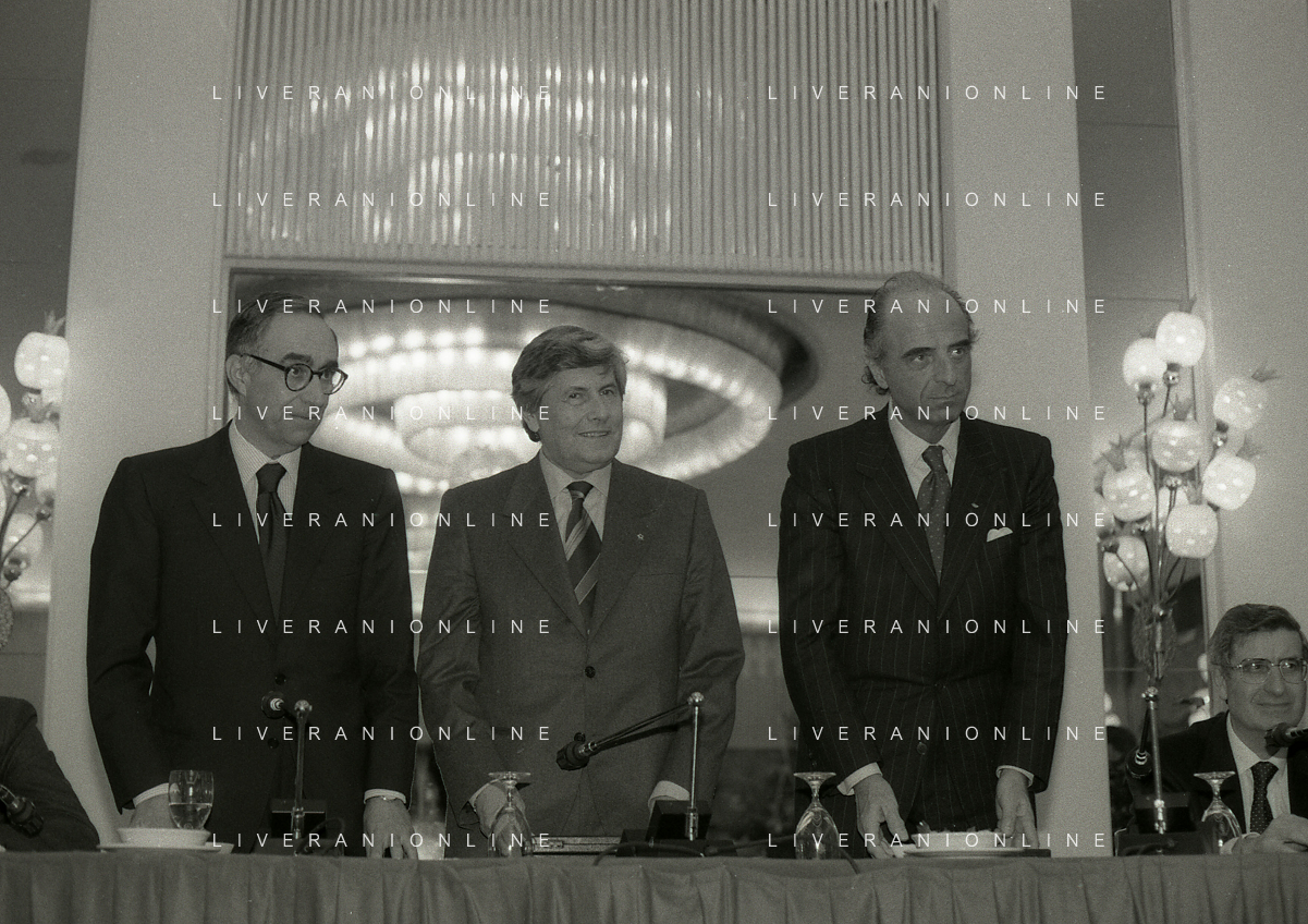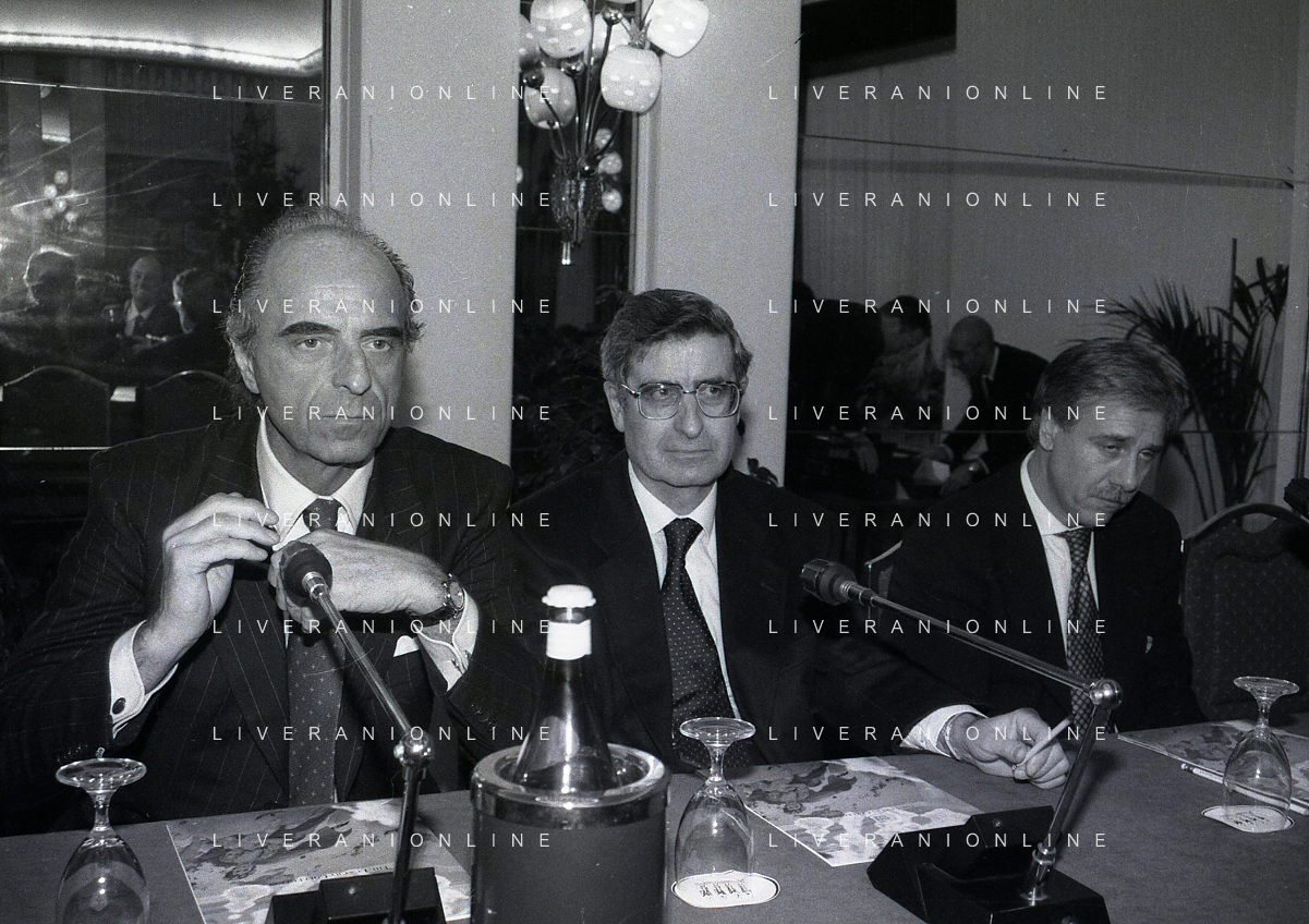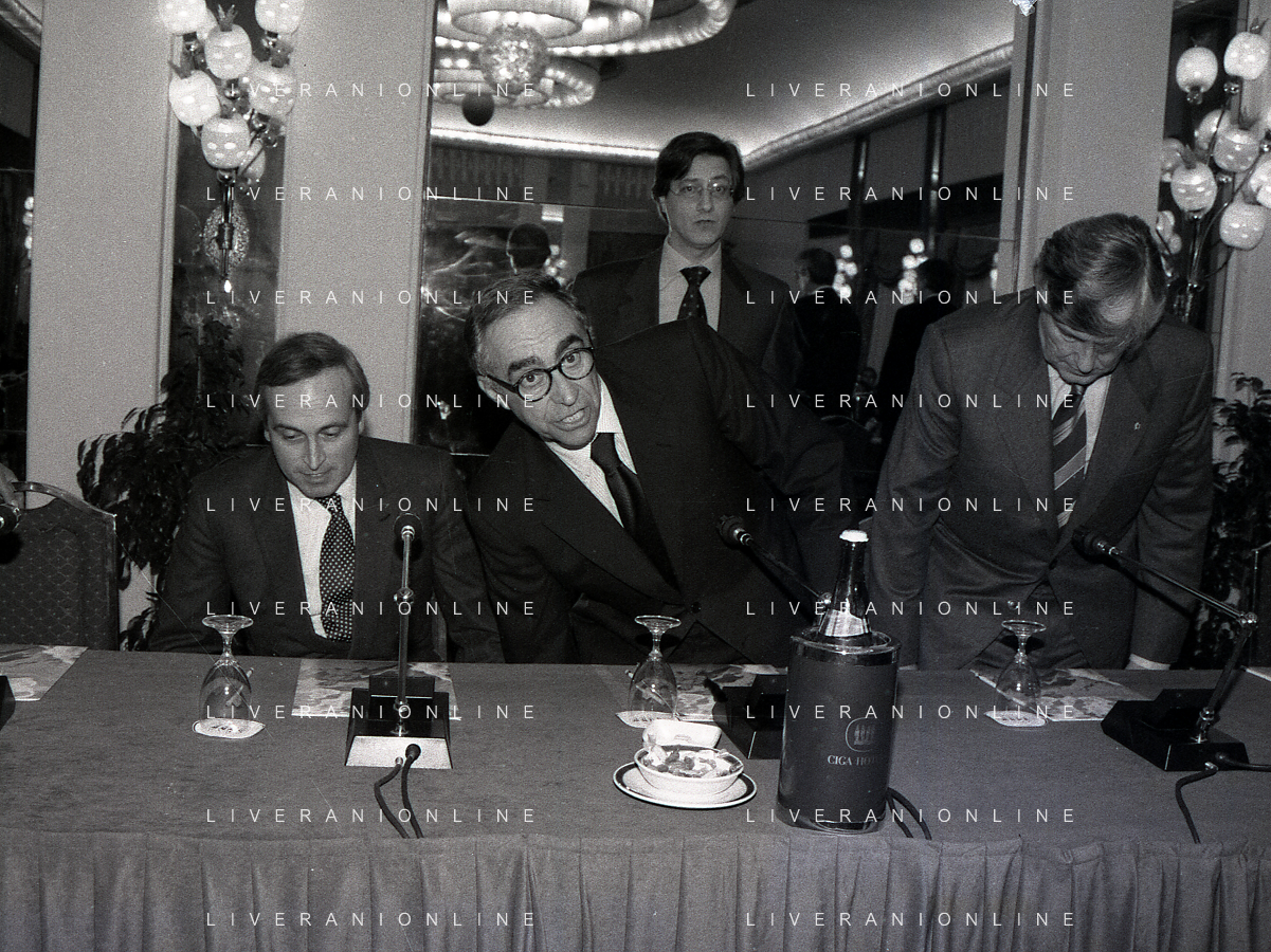16-12-1997 MILANO FESTA DI NATALE LEGA CALCIO NELLA FOTO FRANCO CARRARO-ANTONIO GIRAUDO E ADRIANO GALLIANI AG ALDO LIVERANI SAS