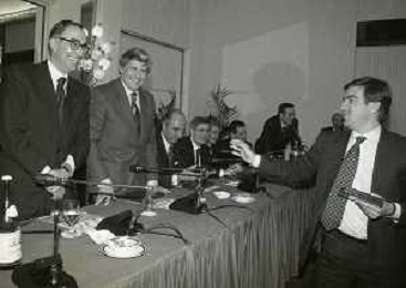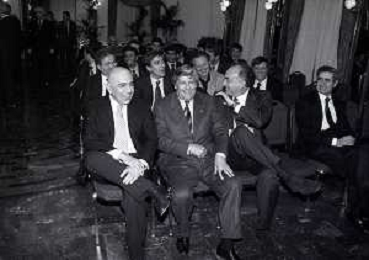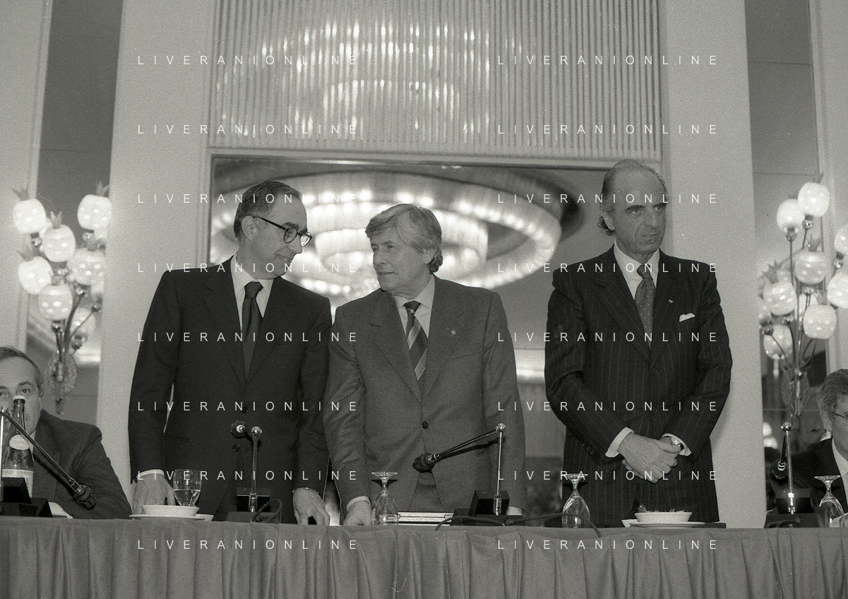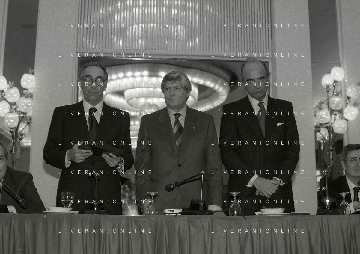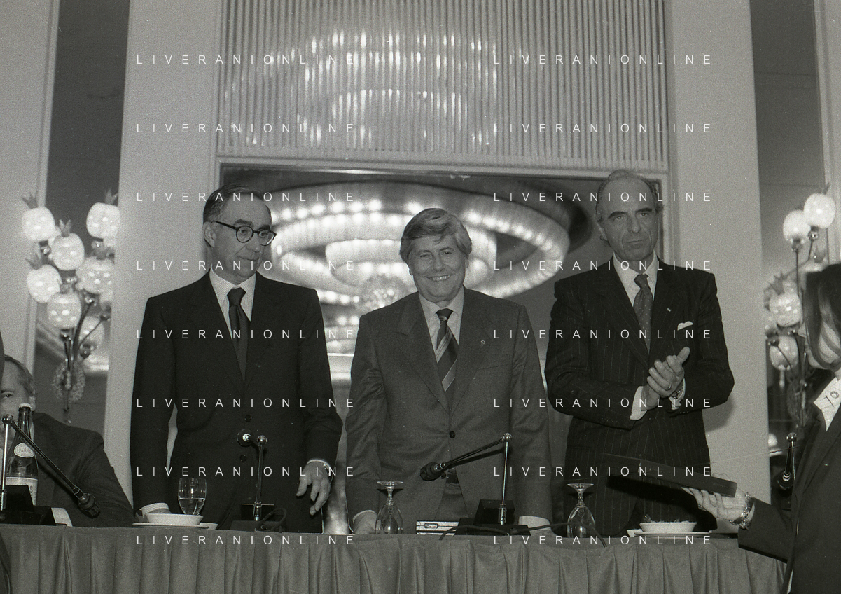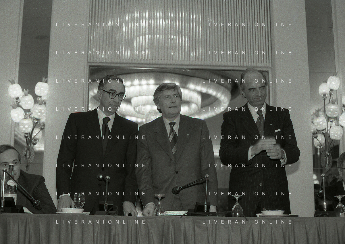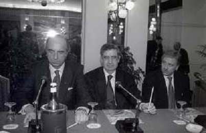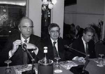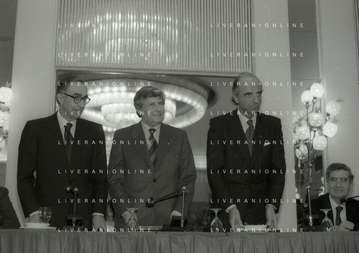 16-12-1997 MILANO FESTA DI NATALE LEGA CALCIO NELLA FOTO FRANCO CARRARO-ANTONIO GIRAUDO E ADRIANO GALLIANI AG ALDO LIVERANI SAS