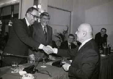 16-12-1997 MILANO FESTA DI NATALE LEGA CALCIO NELLA FOTO GIANCARLO ABETE-FRANCO CARRARO E LUCIANO NIZZOLA AG ALDO LIVERANI SAS