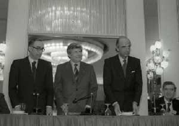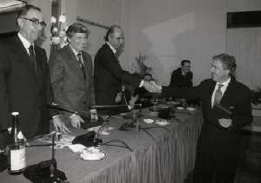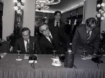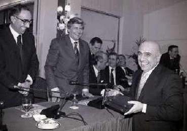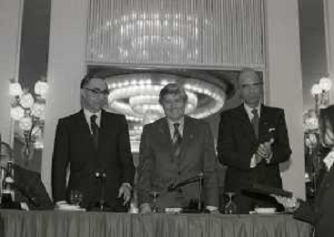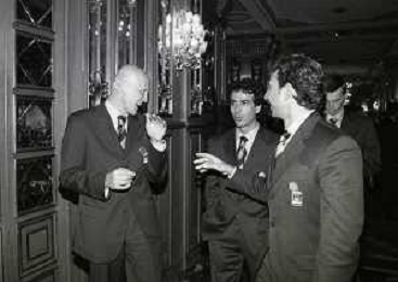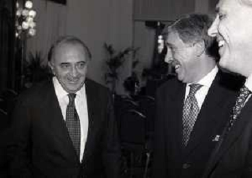 16-12-1997 MILANO FESTA DI NATALE LEGA CALCIO NELLA FOTO FRANCO CARRARO CON LUCIANO NIZZOLA E MARIO PESCANTE AG ALDO LIVERANI SAS