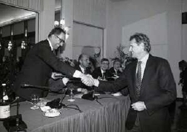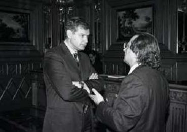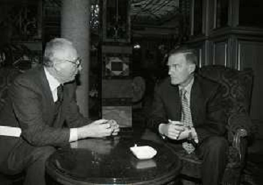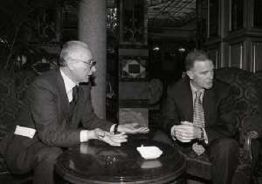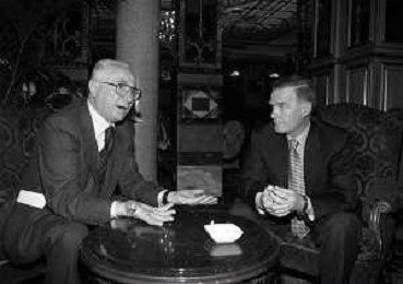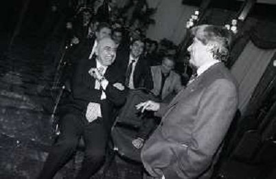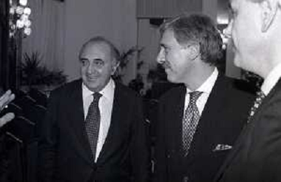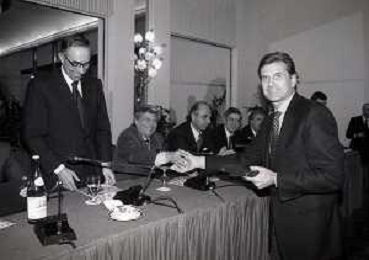 16-12-1997 MILANO FESTA DI NATALE LEGA CALCIO NELLA FOTO ARBITRO PIERO D'ELIA CON CORRADO FERLAINO AG ALDO LIVERANI SAS