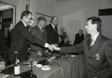 16-12-1997 MILANO FESTA DI NATALE LEGA CALCIO NELLA FOTO FRANCO CARRARO E LUCIANO NIZZOLA PREMIANO FABIO BALDAS AG ALDO LIVERANI SAS