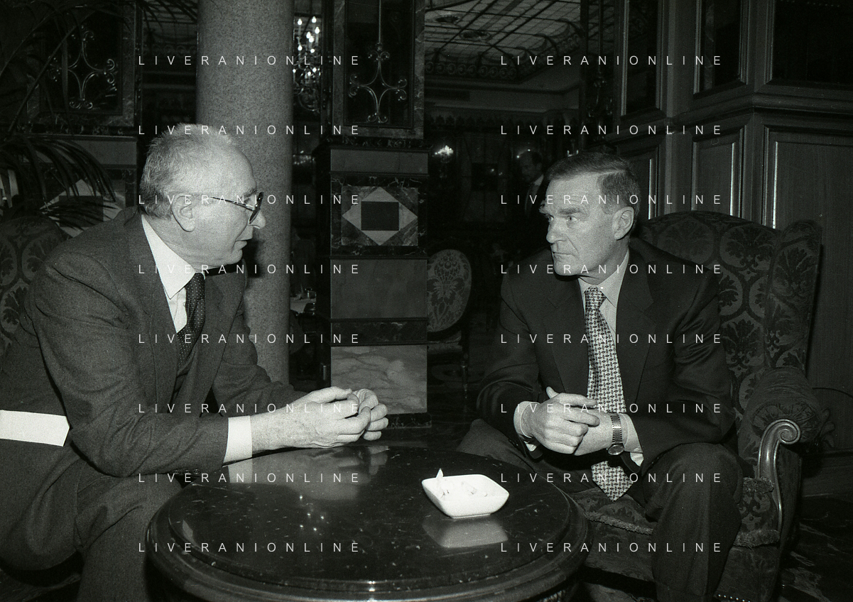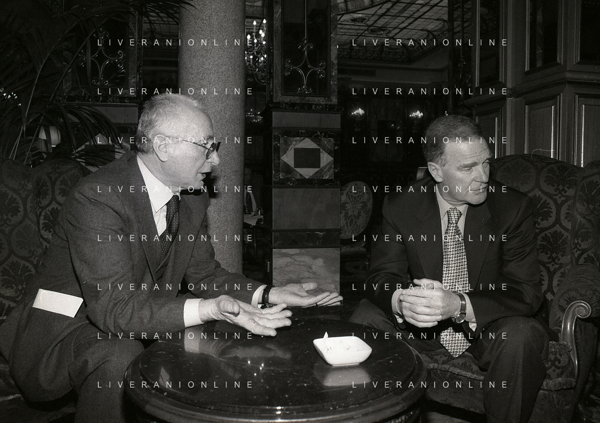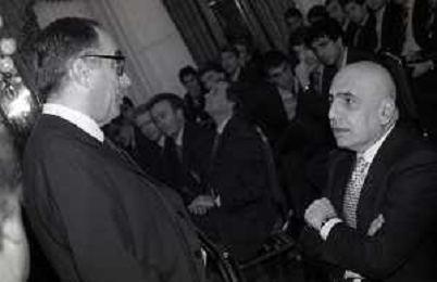 16-12-1997 MILANO FESTA DI NATALE LEGA CALCIO NELLA FOTO FRANCO CARRARO E ADRIANO GALLIANI AG ALDO LIVERANI SAS