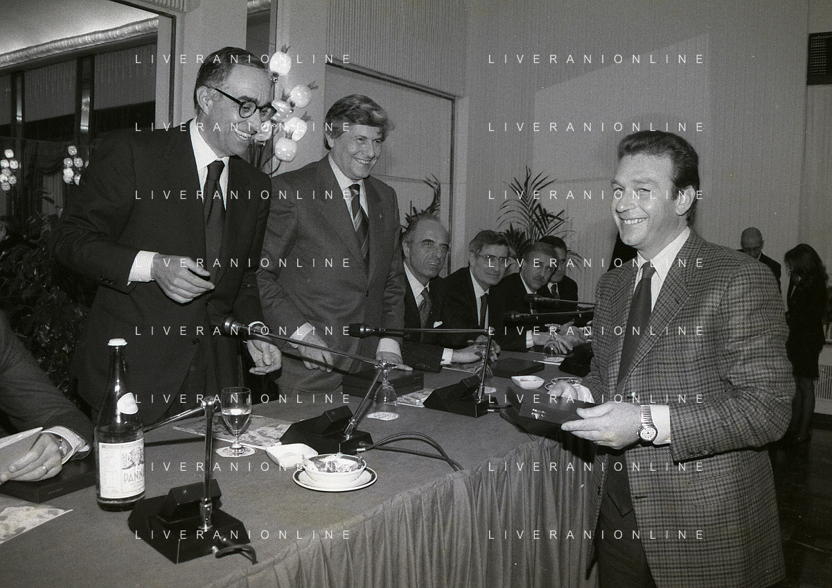 16-12-1997 MILANO FESTA DI NATALE LEGA CALCIO NELLA FOTO PAOLO CASARIN FRANCO DAL CINE ADRIANO GALLIANI AG ALDO LIVERANI SAS