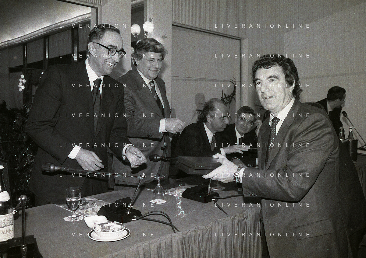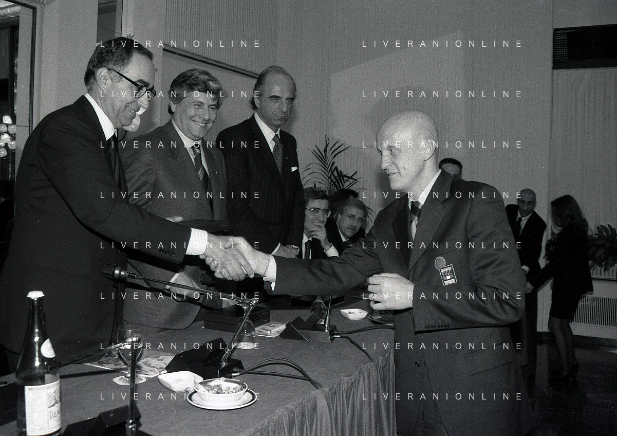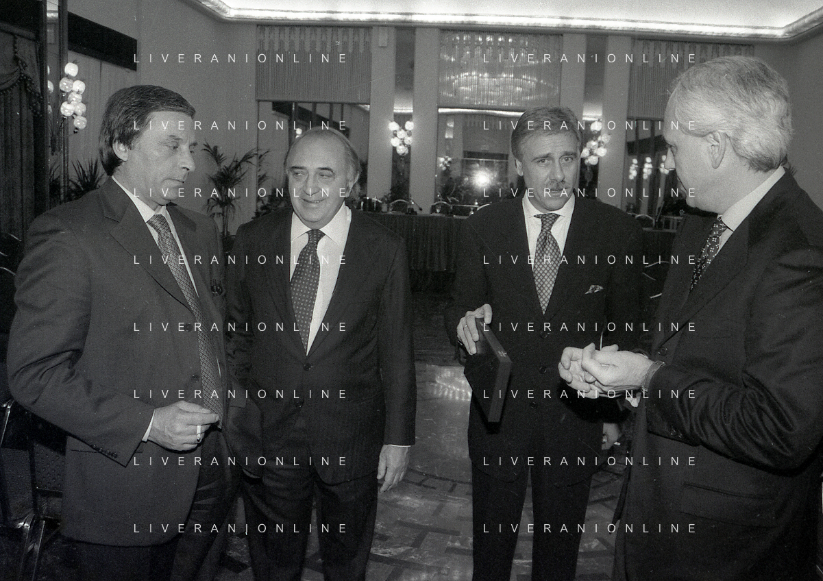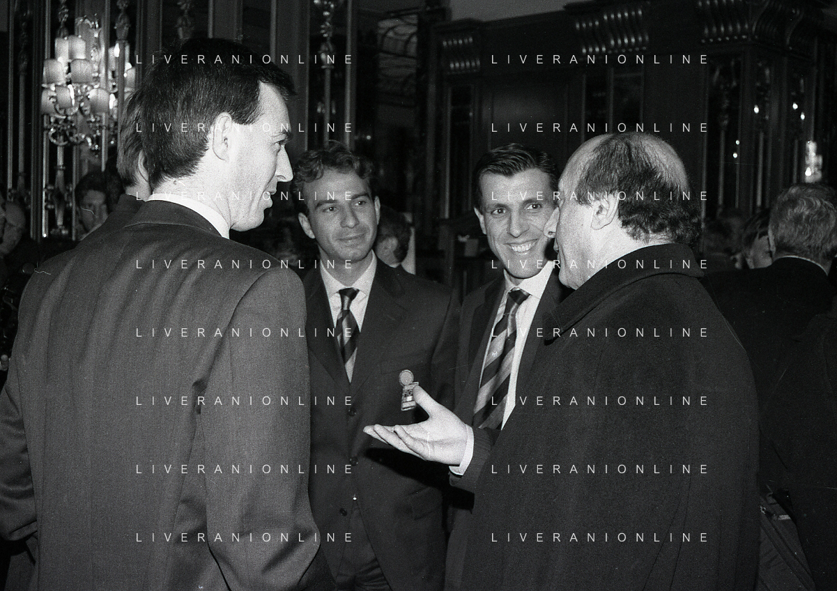 16-12-1997 MILANO FESTA DI NATALE LEGA CALCIO NELLA FOTO PIERO D'ELIA CON CORRADO FERLAINO FABIO BALDAS E ROBERTO BETTEGA AG ALDO LIVERANI SAS