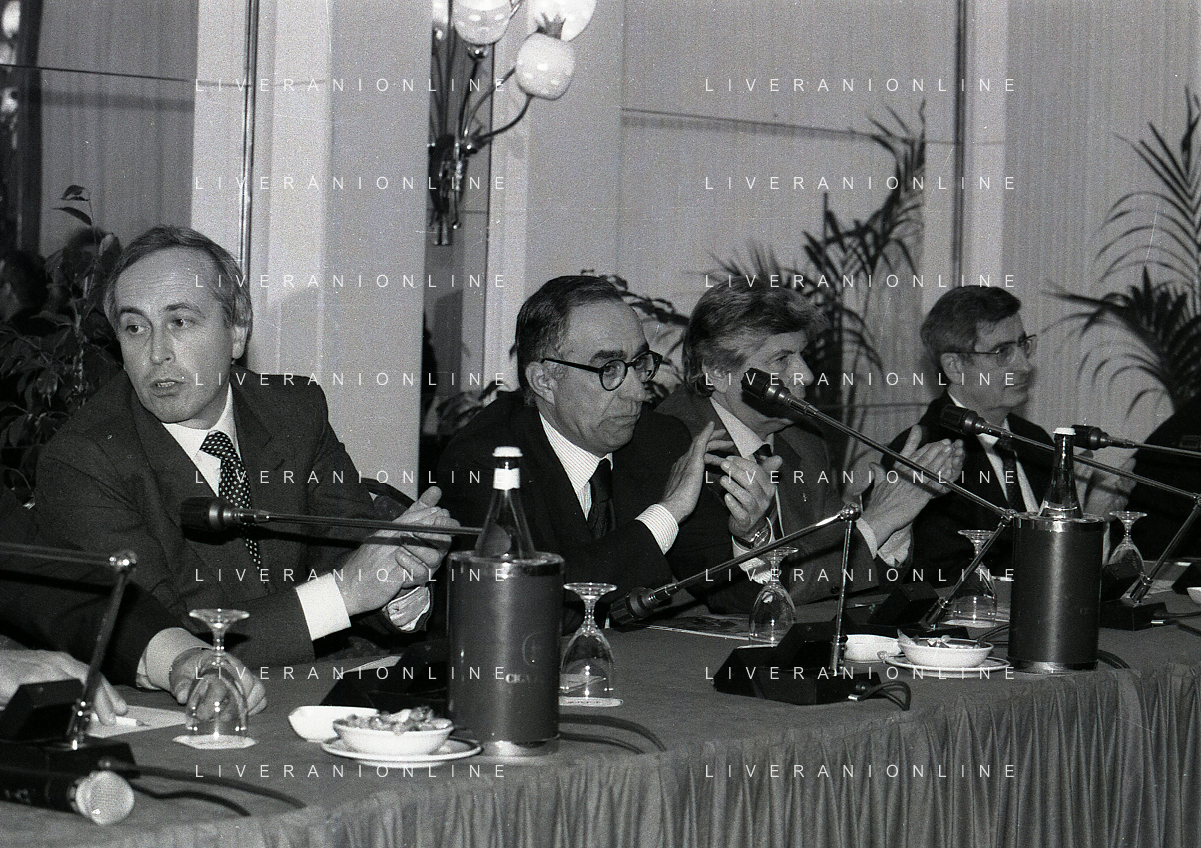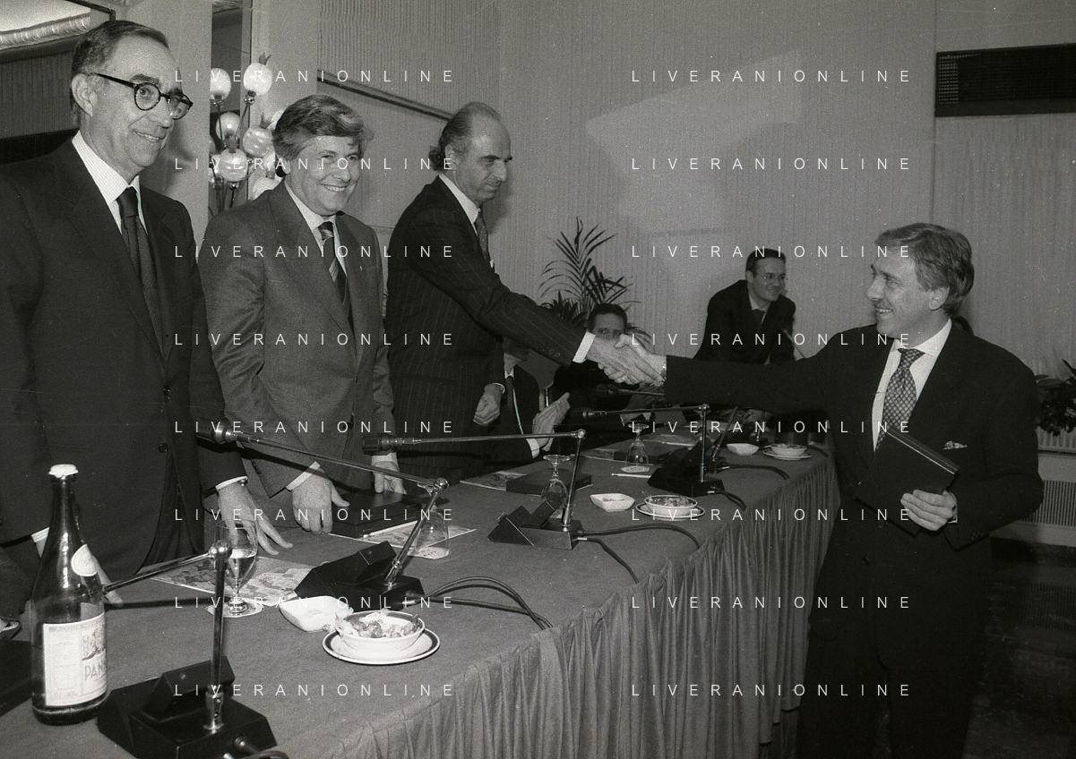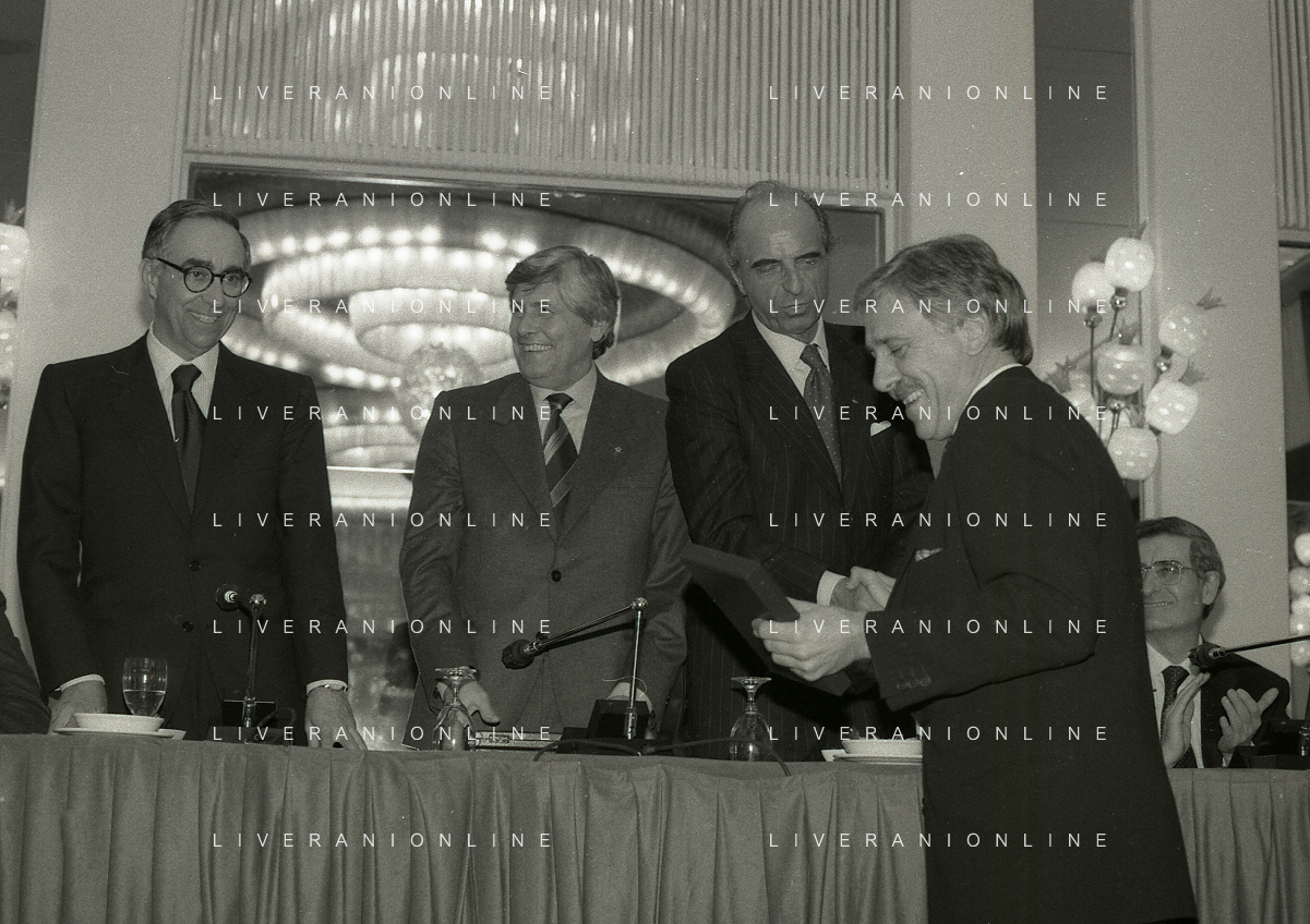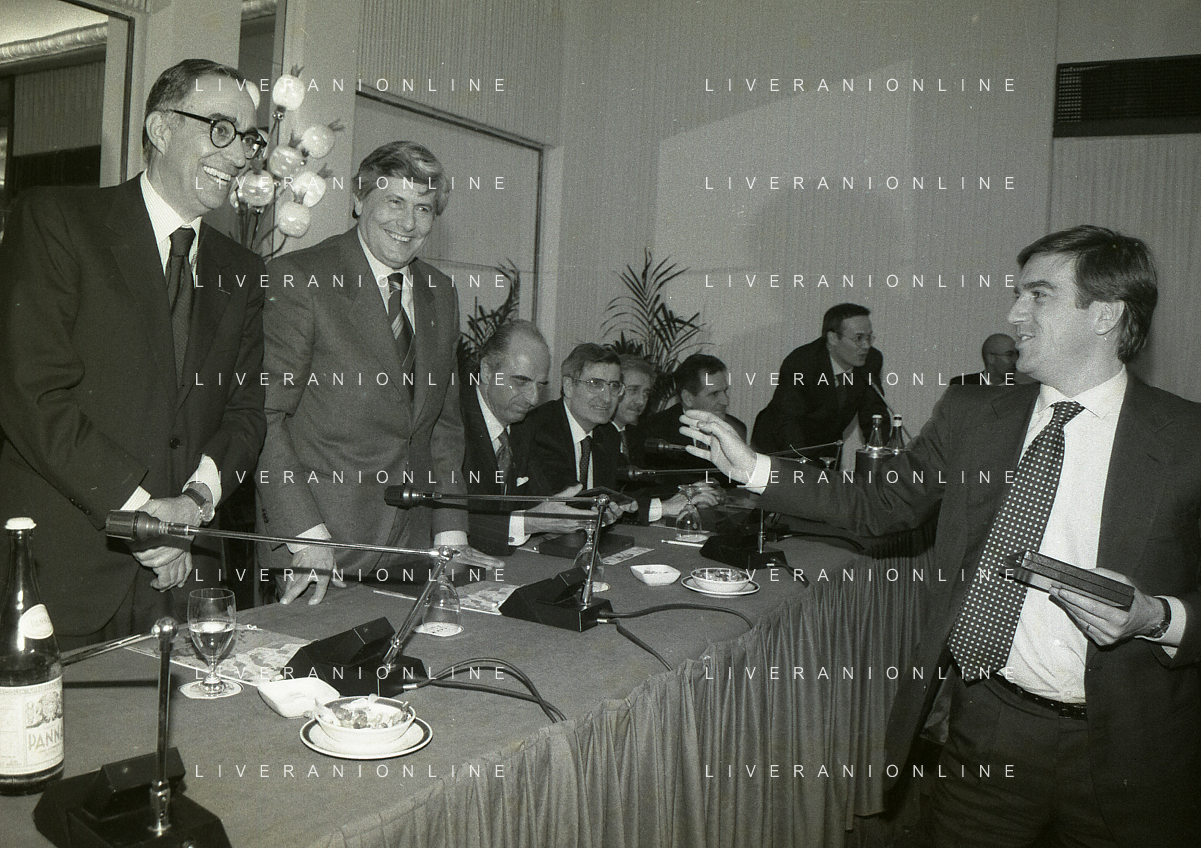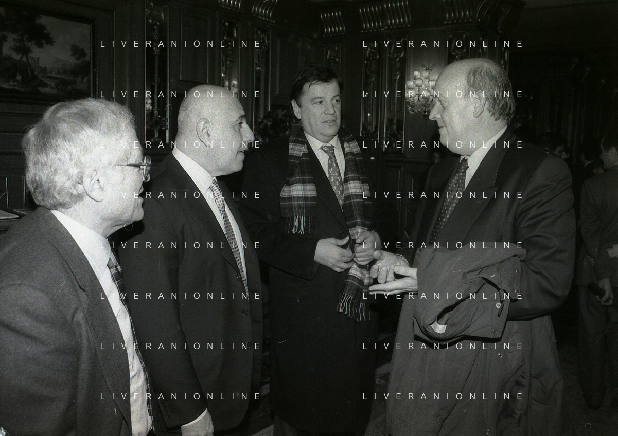 16-12-1997 MILANO FESTA DI NATALE LEGA CALCIO NELLA FOTO PIERO D'ELIA CON CORRADO FERLAINO FABIO BALDAS E ROBERTO BETTEGA AG ALDO LIVERANI SAS