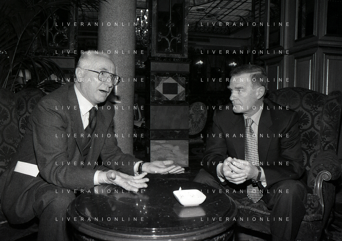 16-12-1997 MILANO FESTA DI NATALE LEGA CALCIO NELLA FOTO LUCIANO NIZZOLA E ADRIANO GALLIANI AG ALDO LIVERANI SAS