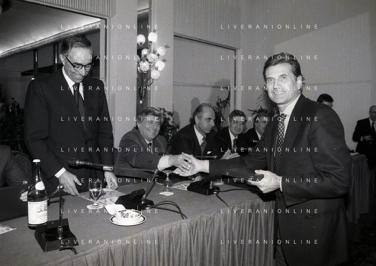 16-12-1997 MILANO FESTA DI NATALE LEGA CALCIO NELLA FOTO PIERLUIGI PAIRETTO E GINO CORIONI AG ALDO LIVERANI SAS