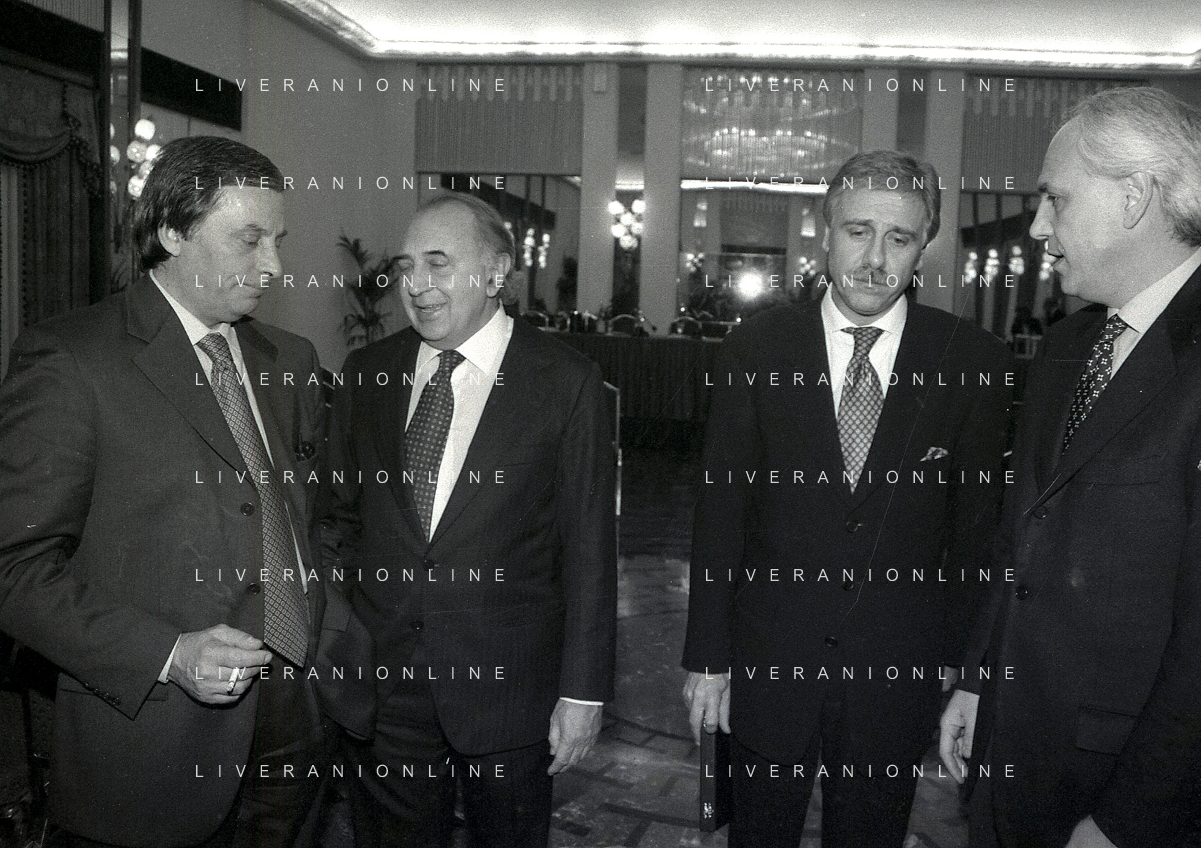 16-12-1997 MILANO FESTA DI NATALE LEGA CALCIO NELLA FOTO GIANCARLO ABETE FRANCO CARRARO ELUCIANO NIZZOLA AG ALDO LIVERANI SAS