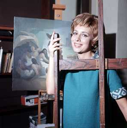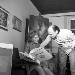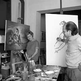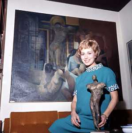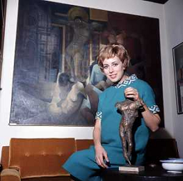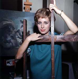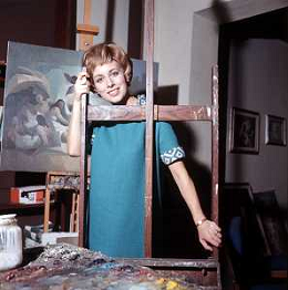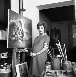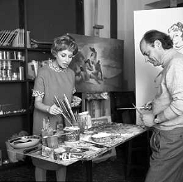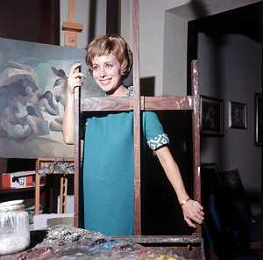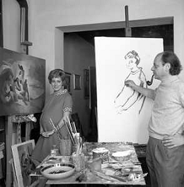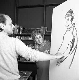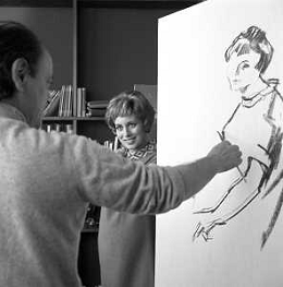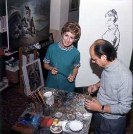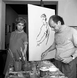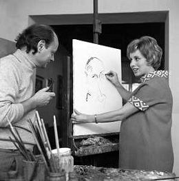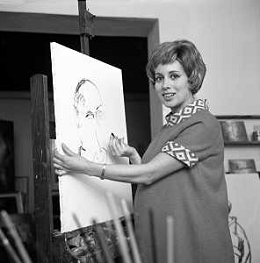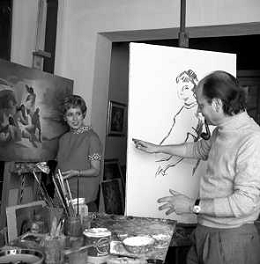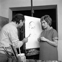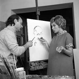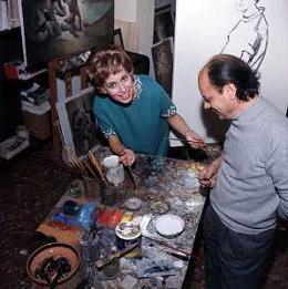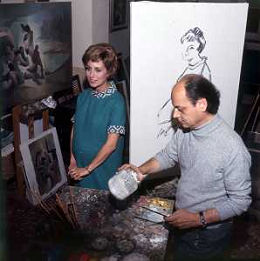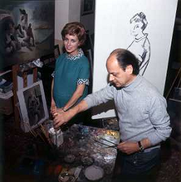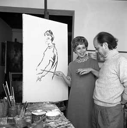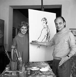 RETROSPETTIVA ROSANNA VAUDETTI ANNUNCIATRICE TELEVISIVA INCINTA DEL SECONDO FIGLIO A MILANO NEL 1969 NELLA FOTO CON IL PITTORE CHE DIPINGE IL SUO RITRATTO ©Archivio Giovanni Liverani/AGENZIA ALDO LIVERANI SAS