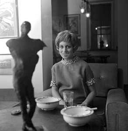 RETROSPETTIVA ROSANNA VAUDETTI ANNUNCIATRICE TELEVISIVA INCINTA DEL SECONDO FIGLIO A MILANO NEL 1969 NELLA FOTO CON IL SUO GATTO E IL PITTORE CHE DIPINGE IL SUO RITRATTO ©Archivio Giovanni Liverani/AGENZIA ALDO LIVERANI SAS