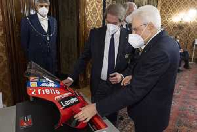 Il Presidente della Repubblica, Sergio Mattarella, ha ricevuto al Quirinale una delegazione della Federazione Motociclistica Italiana con i campioni del mondo 2021 vincitori delle competizioni a squadre nazionali. Dopo gli interventi del Presidente del CONI, Giovanni Malagò e del Presidente di Federmoto, Giovanni Copioli, il Presidente Mattarella ha rivolto un indirizzo di saluto. Erano presenti, tra gli altri, i piloti Valentino Rossi, Antonio Cairoli e Francesco Bagnaia. UFFICIO STAMPA PRESIDENZA DELLA REPUBBLICA ITALIANA-AG ALDO LIVERANI SAS