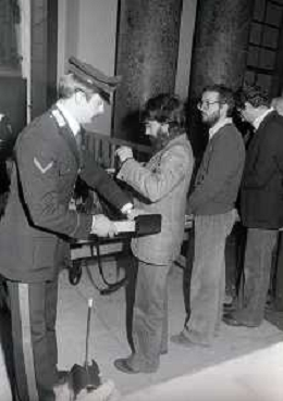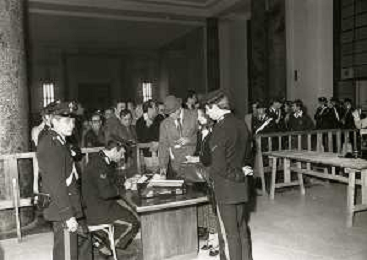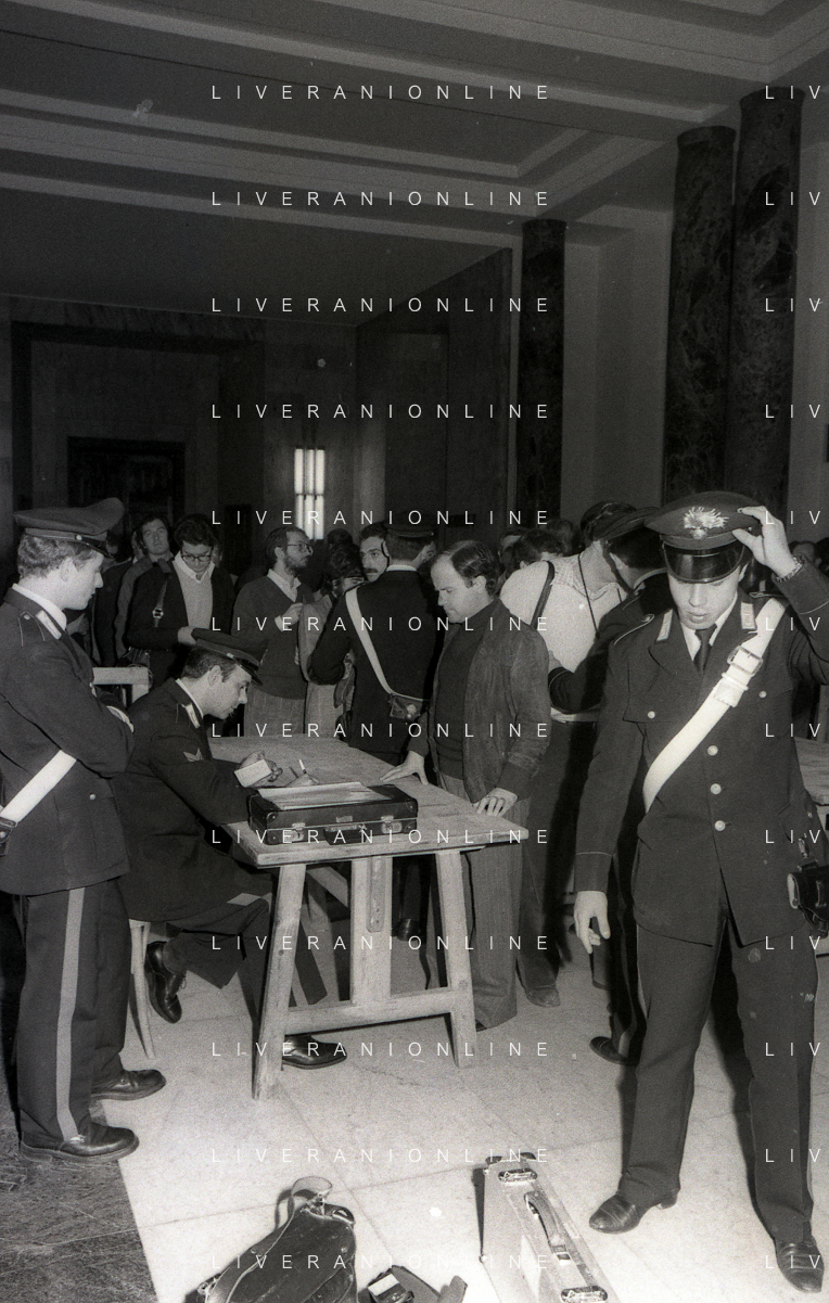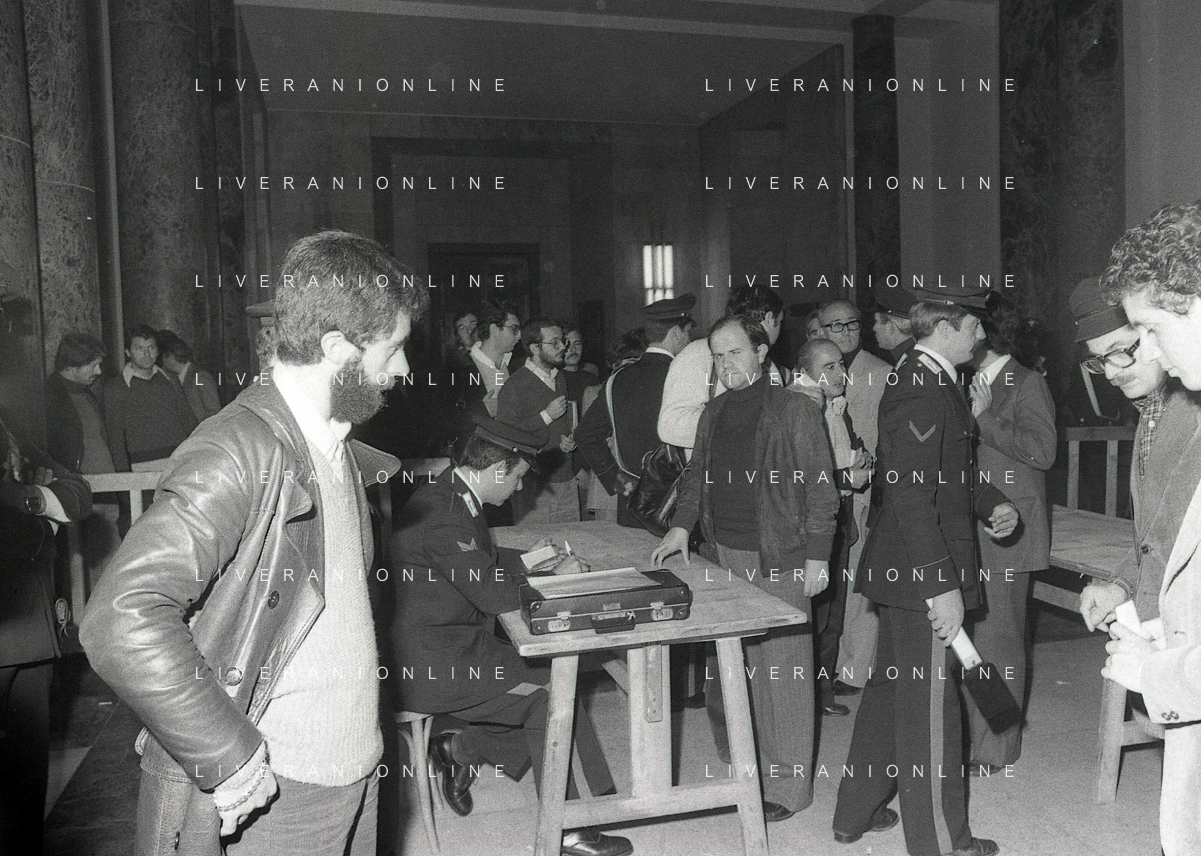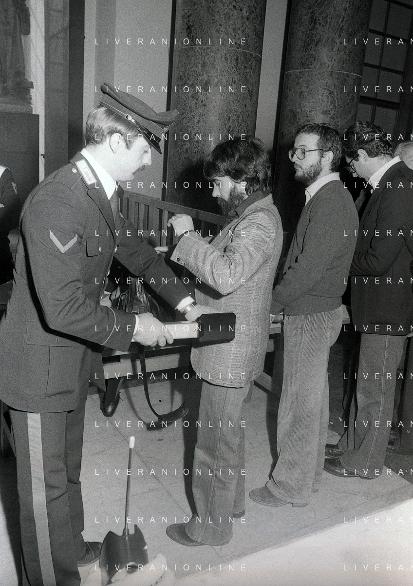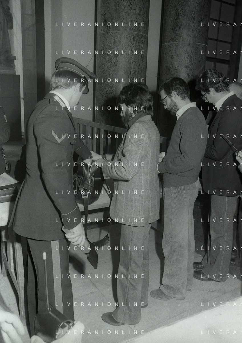 1978 MILANO PROCESSO A RENATO CURCIO FONDATORE DELLE BRIGATE ROSSE NELLA FOTO SISTEMI DI SICUREZZA AL TRIBUNALE DI MILANO PER IL PROCESSO A RENATO CURCIO AG ALDO LIVERANI SAS