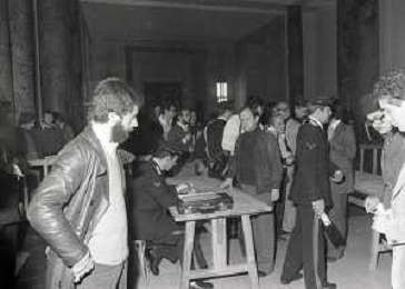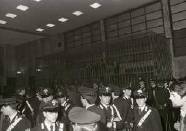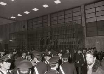 1978 MILANO PROCESSO A RENATO CURCIO FONDATORE DELLE BRIGATE ROSSE NELLA FOTO TRIBUNALE DI MILANO CON TRANSENNE PER IL PROCESSO DI RENATO CURCIO AG ALDO LIVERANI SAS