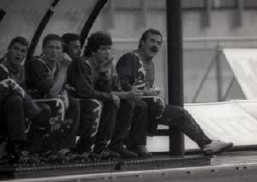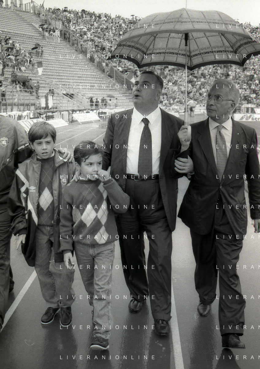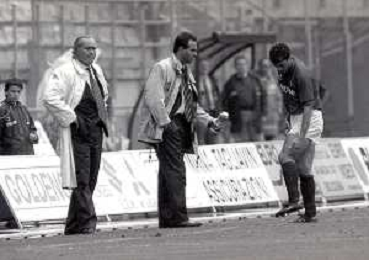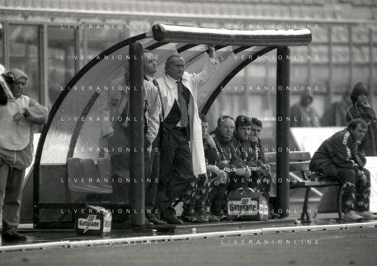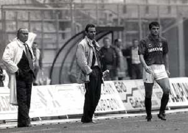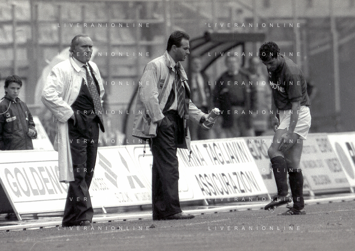 07-06-1992 BOLOGNA CAMPIONATO DI CALCIO SERIE B BOLOGNA-ANCONA 1-1 NELLA FOTO NEDO SONETTI CON ANTONIO CABRINI E KUBILAY TURKYLMAZ AG ALDO LIVERANI SAS