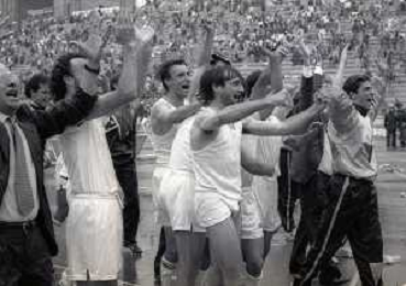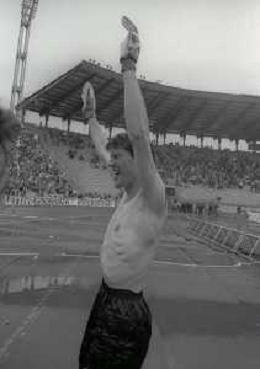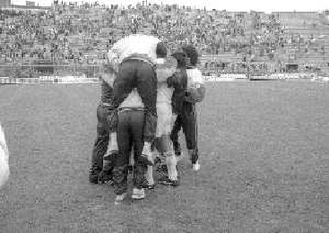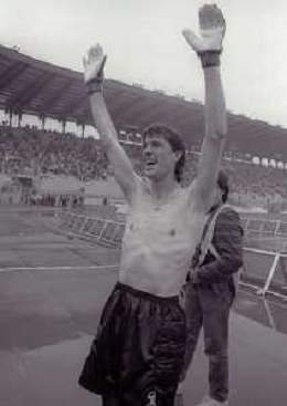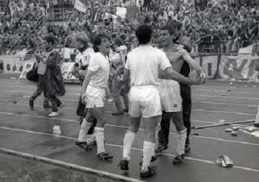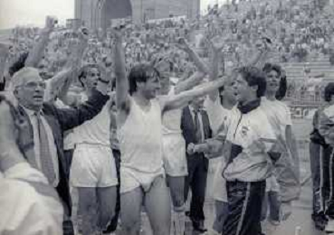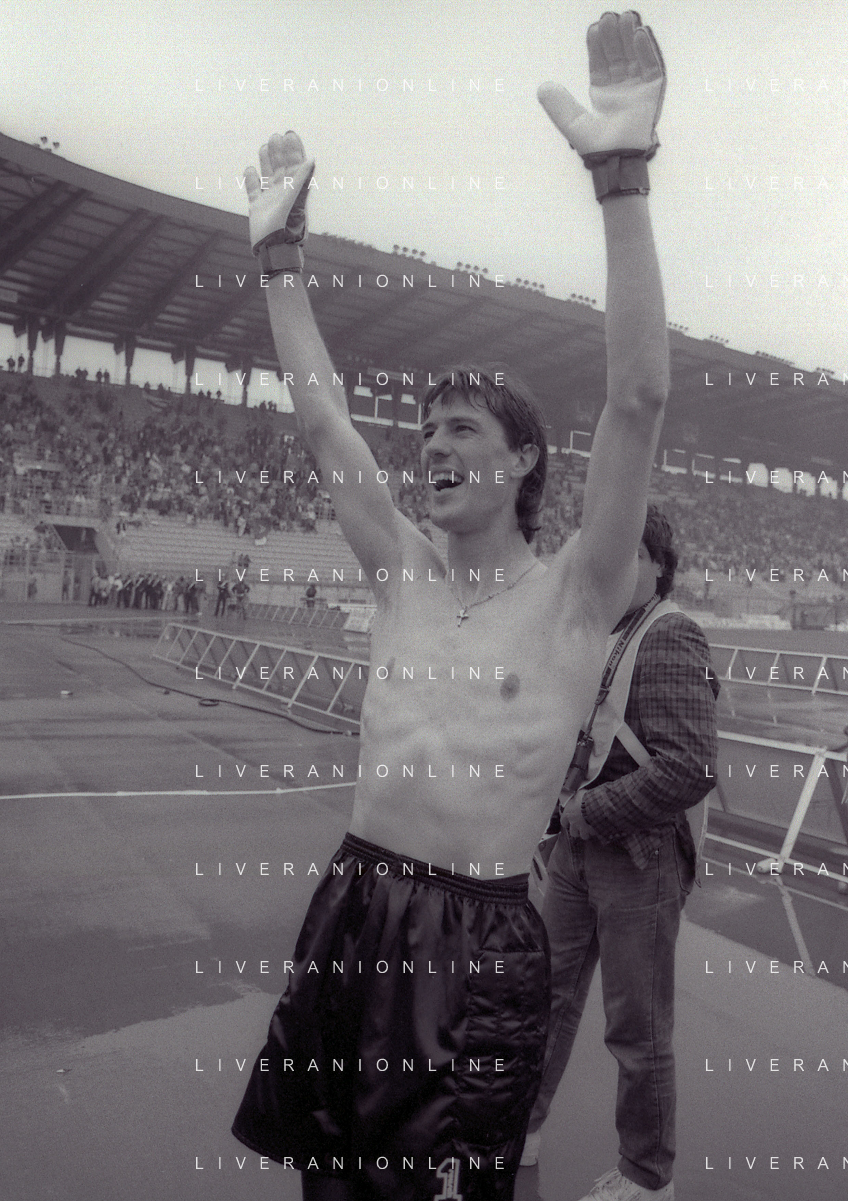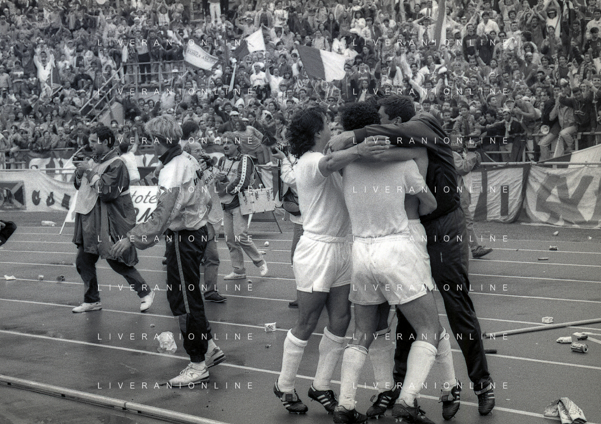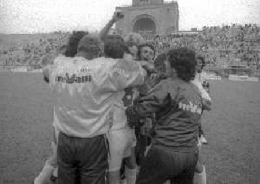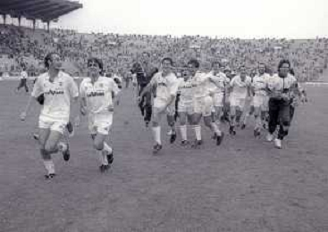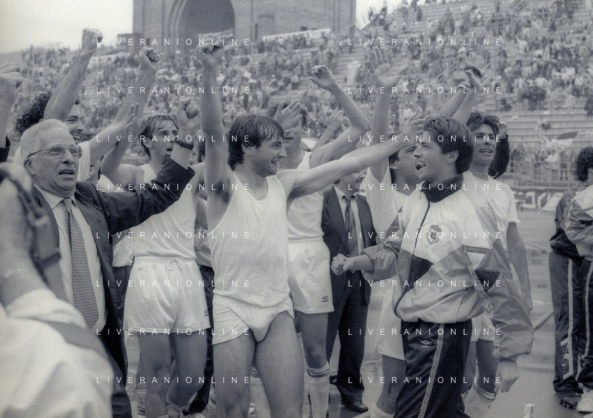 07-06-1992 BOLOGNA CAMPIONATO DI CALCIO SERIE B BOLOGNA-ANCONA 1-1 NELLA FOTO FESTEGGIAMENTI GIOCATORI ANCONA PER LA PROMOZIONE IN SERIE A AG ALDO LIVERANI SAS