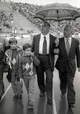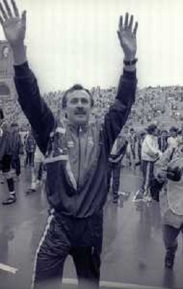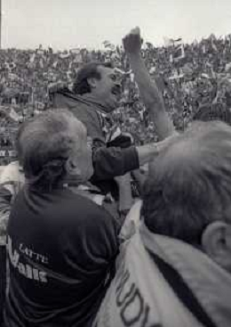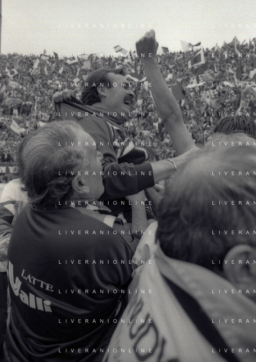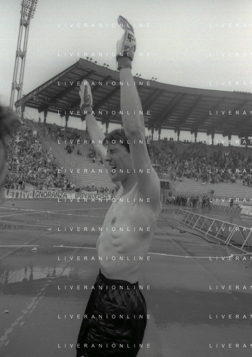 07-06-1992 BOLOGNA CAMPIONATO DI CALCIO SERIE B BOLOGNA-ANCONA 1-1 NELLA FOTO VINCENZO GUERINI PORTATO IN TRIONFO PER LA PROMOZIOME IN SERIE A AG ALDO LIVERANI SAS