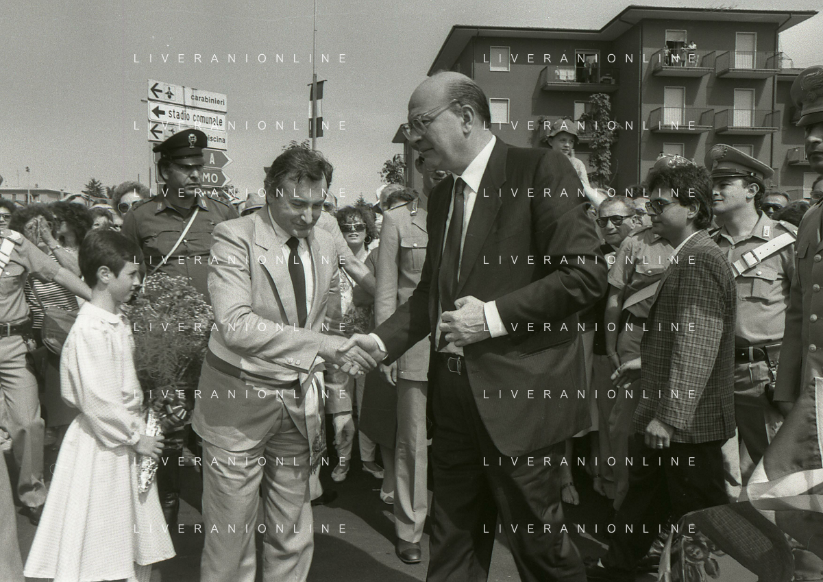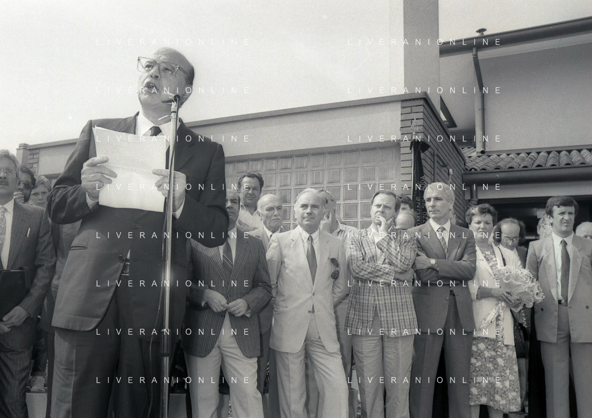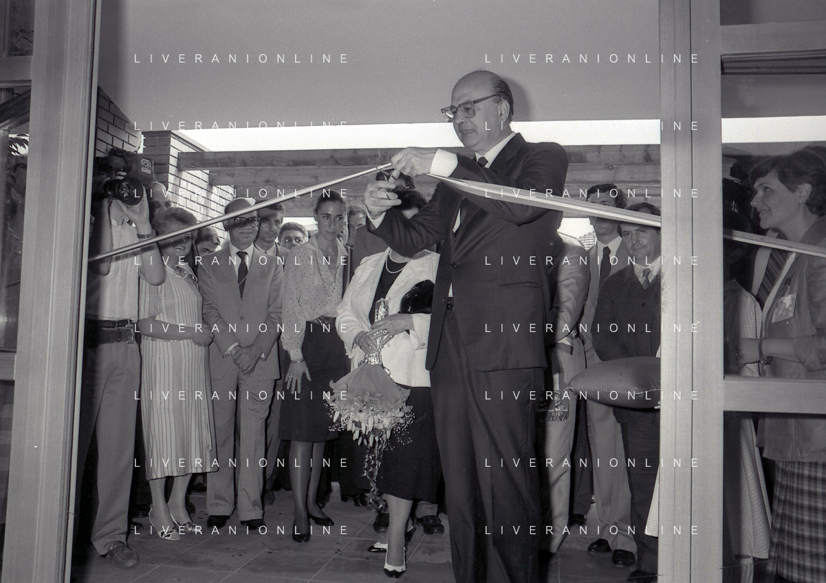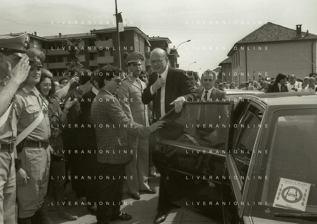 RETROSPETTIVA BETTINO CRAXI POLITICO NELLA FOTO BETTINO CRAXI A PAVIA INAUGURA LA EDUCANDO STATALE EMANUELA SETTI CARRARO DALLA CHIESA NELL'ANNO 1986 AG ALDO LIVERANI SAS
