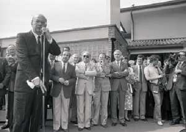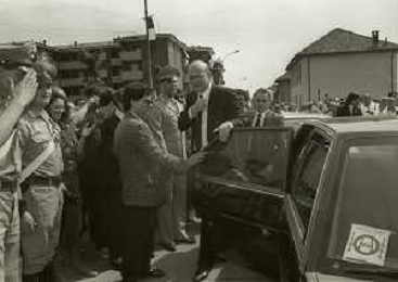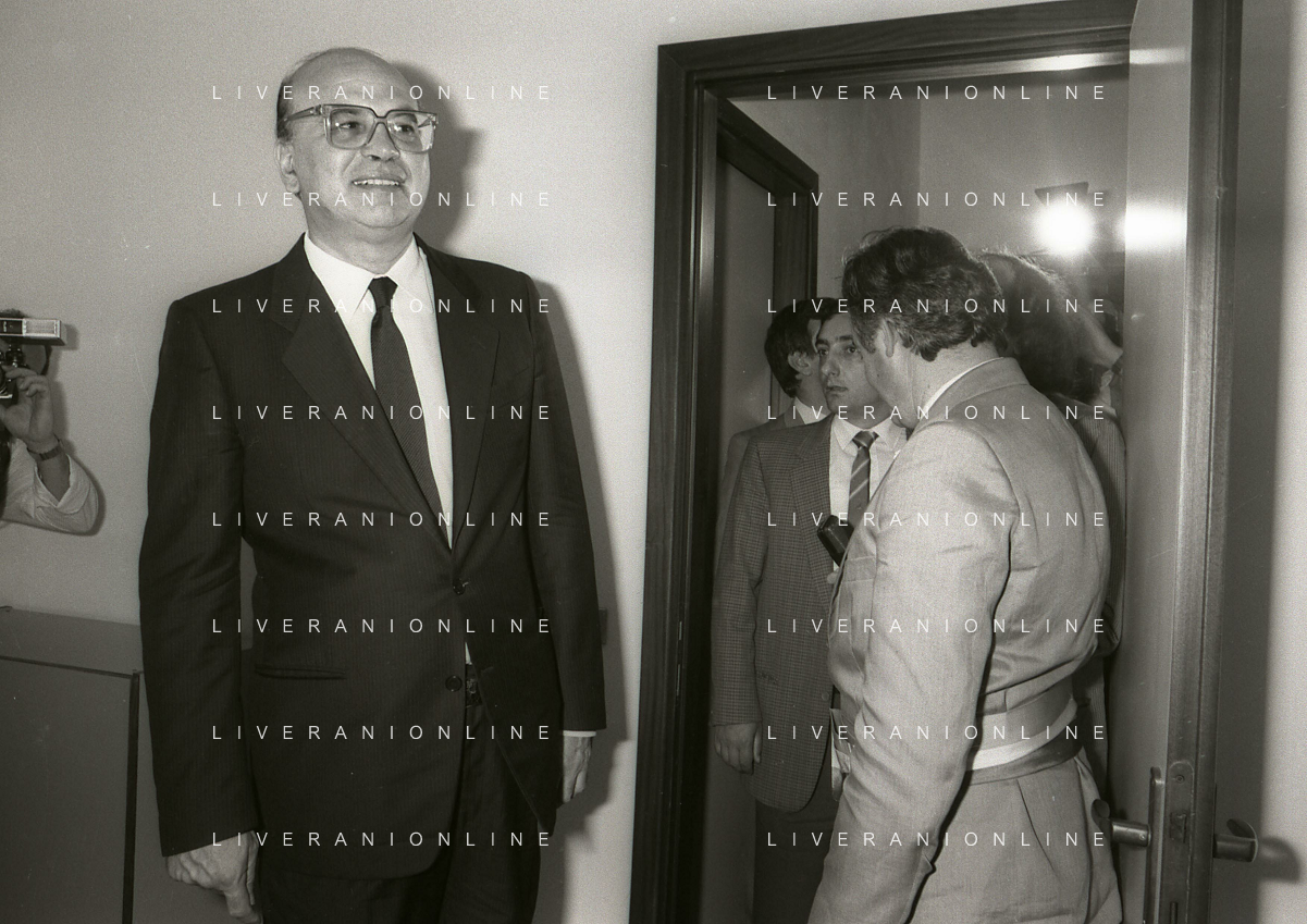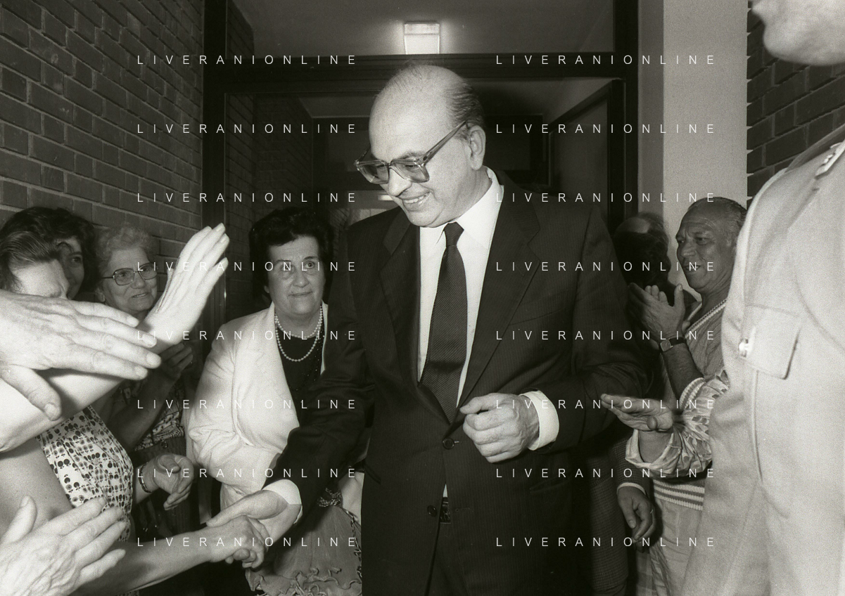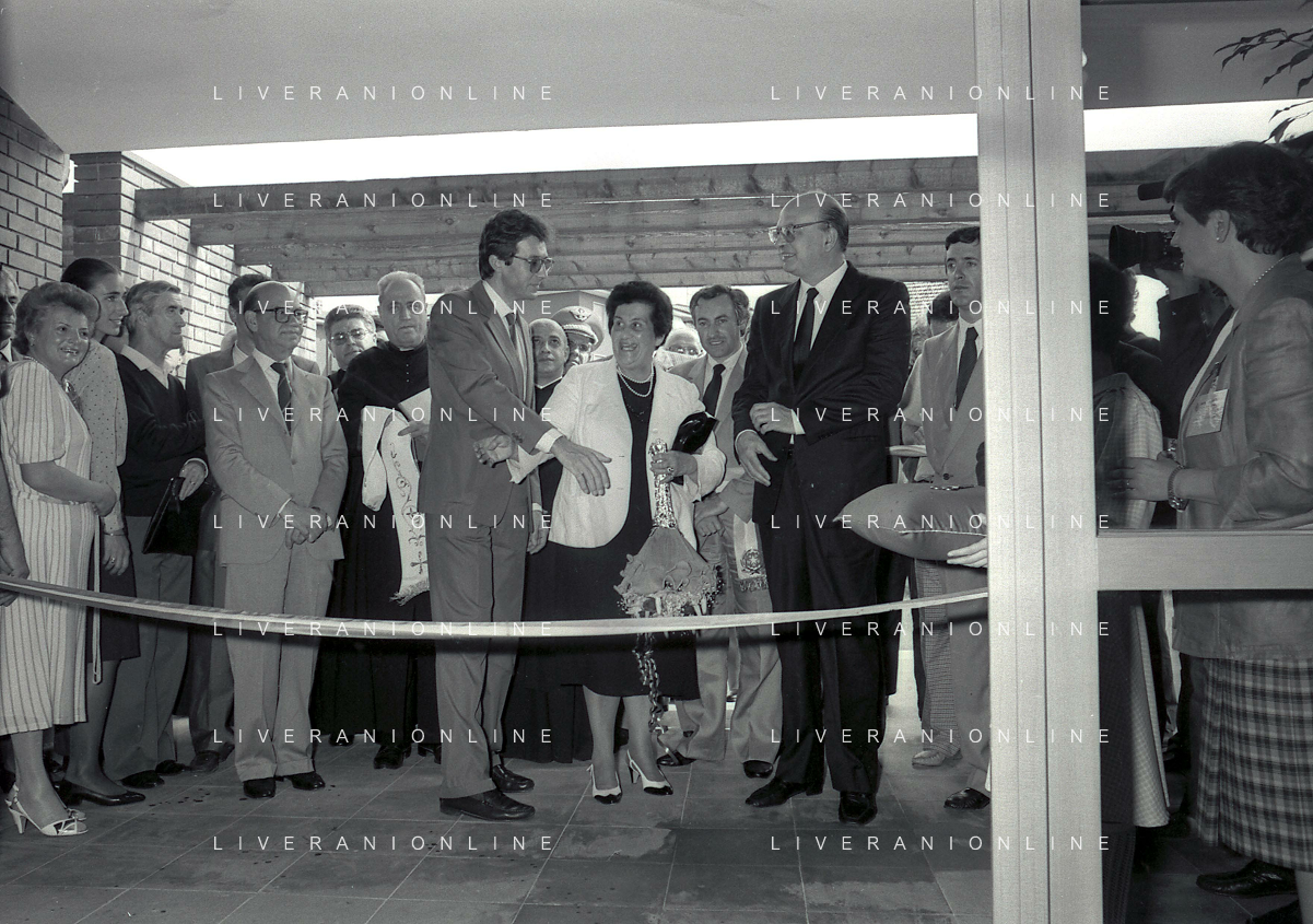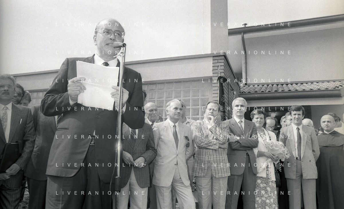 RETROSPETTIVA BETTINO CRAXI POLITICO NELLA FOTO BETTINO CRAXI A PAVIA INAUGURA LA EDUCANDO STATALE EMANUELA SETTI CARRARO DALLA CHIESA NELL'ANNO 1986 AG ALDO LIVERANI SAS
