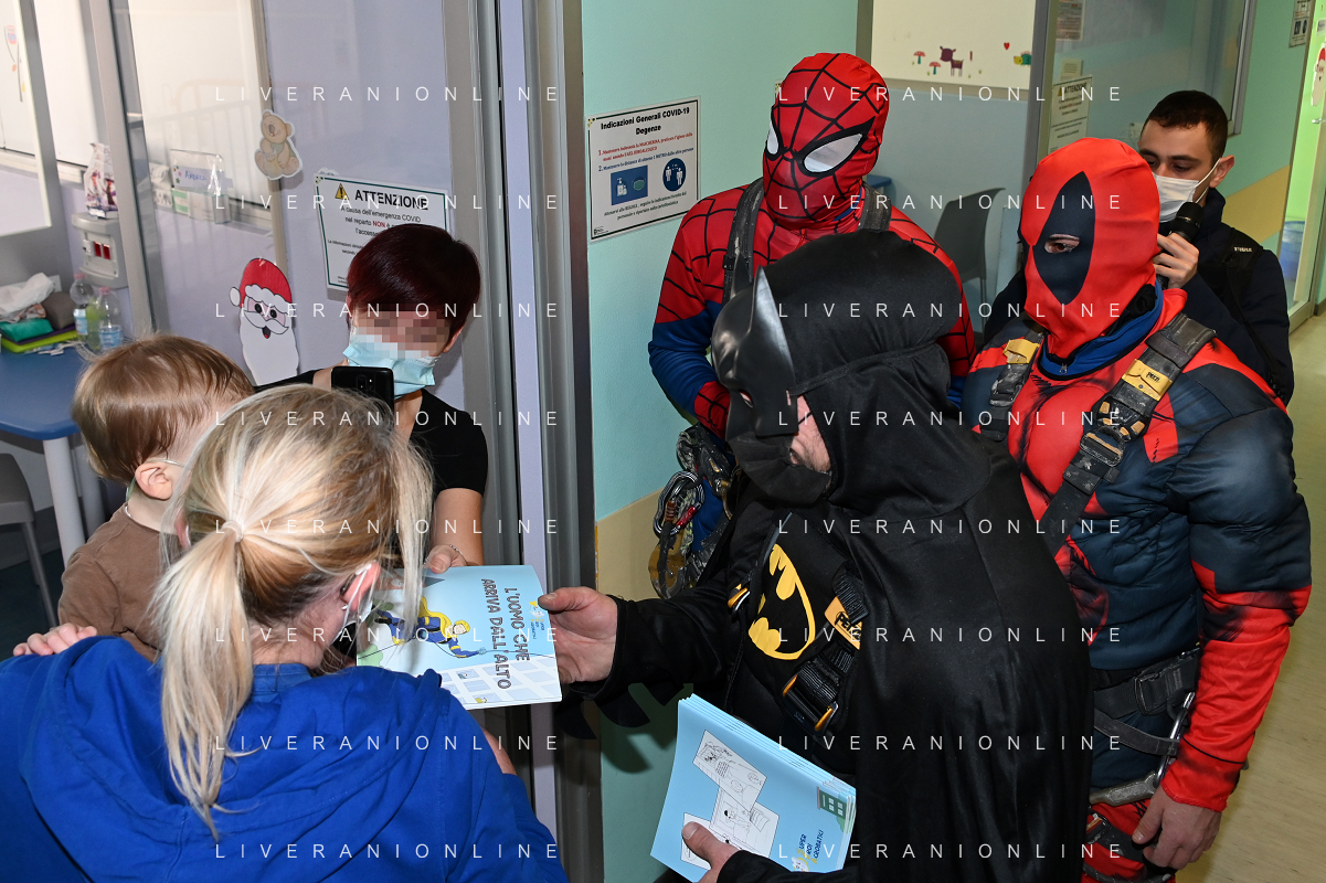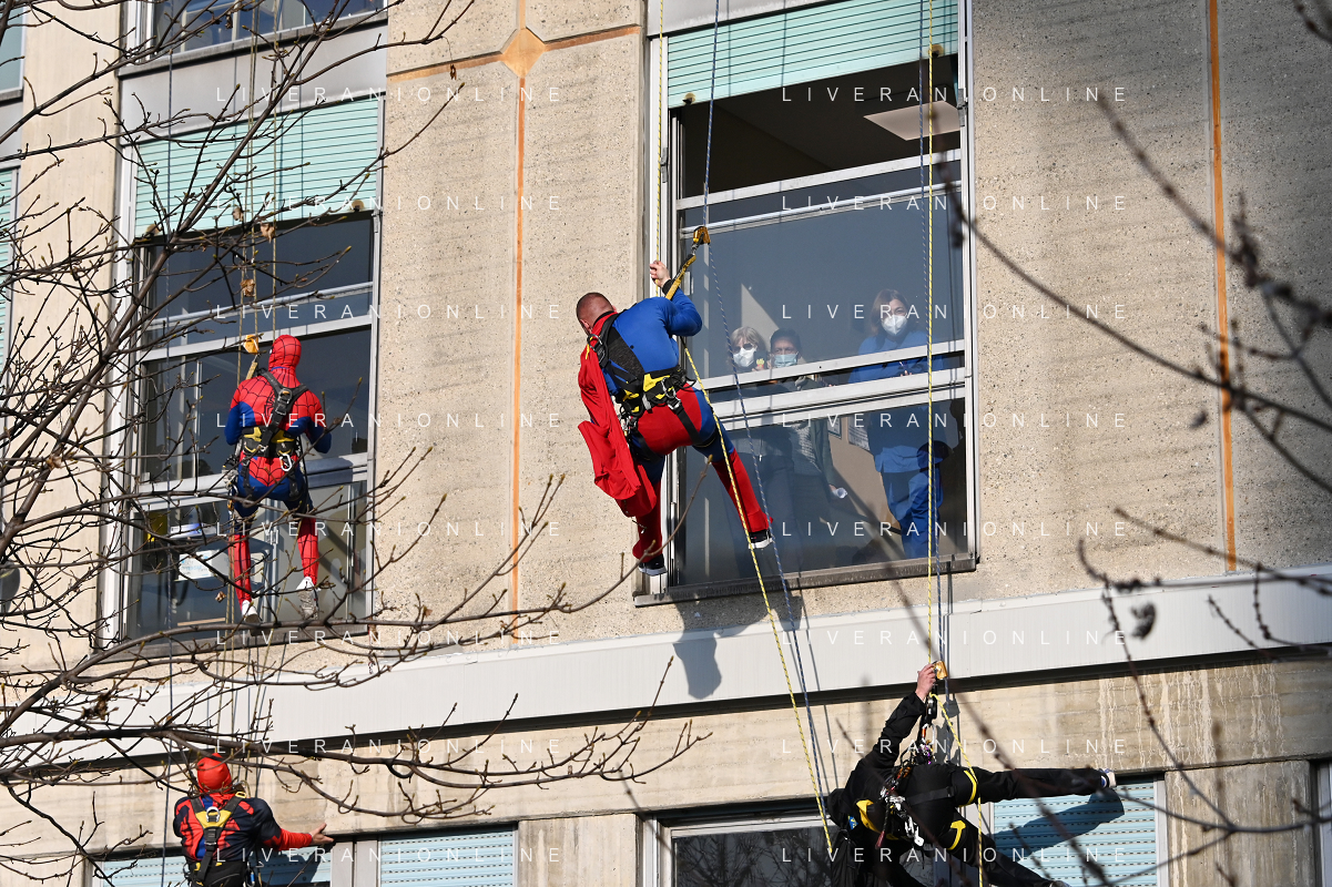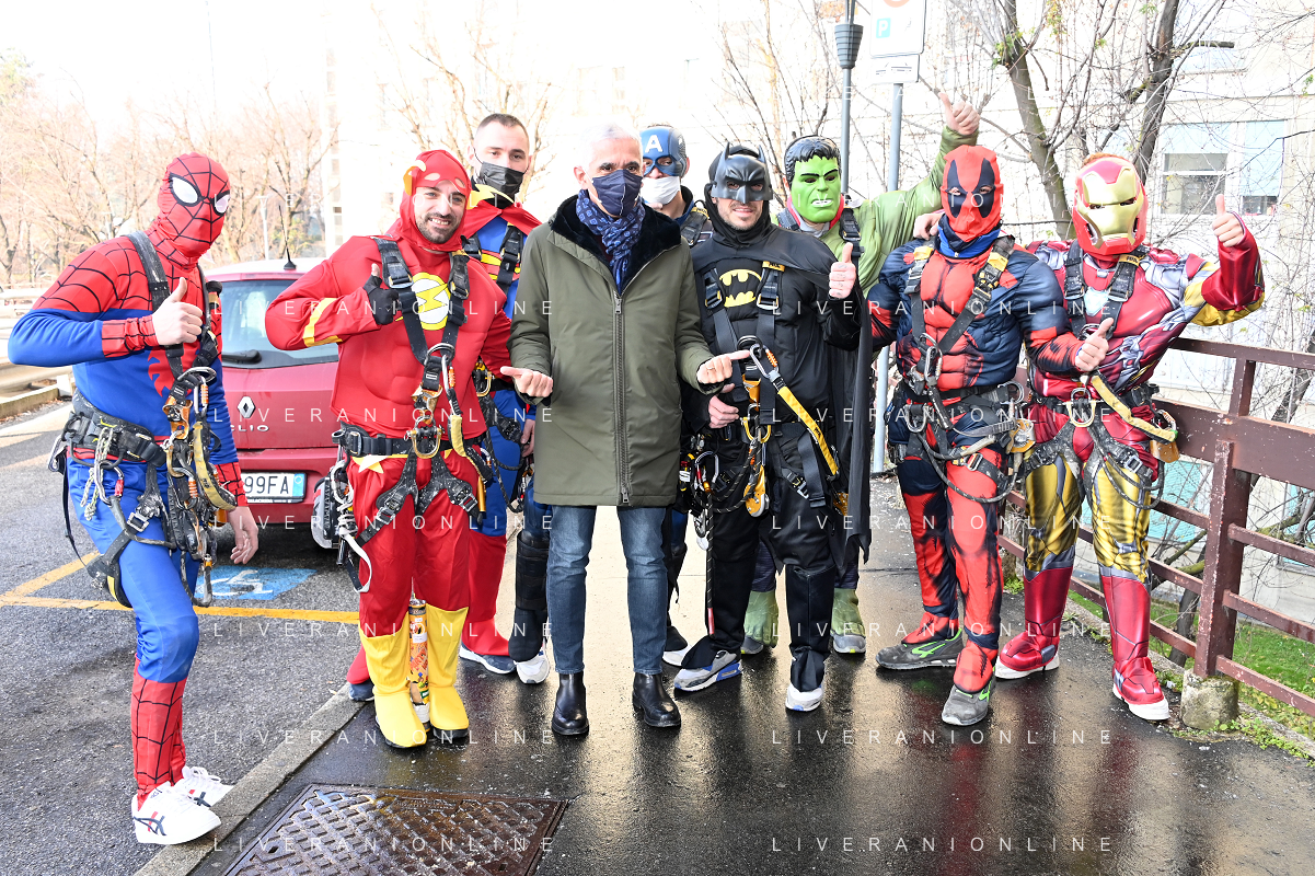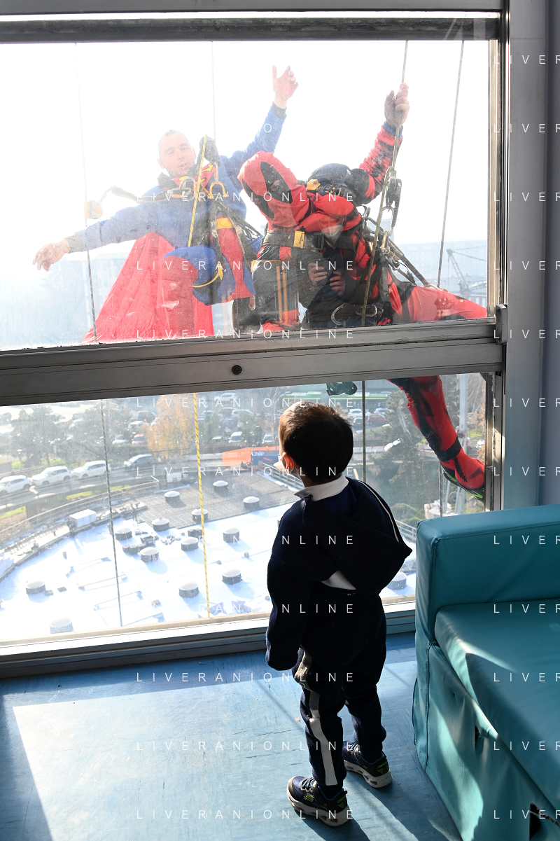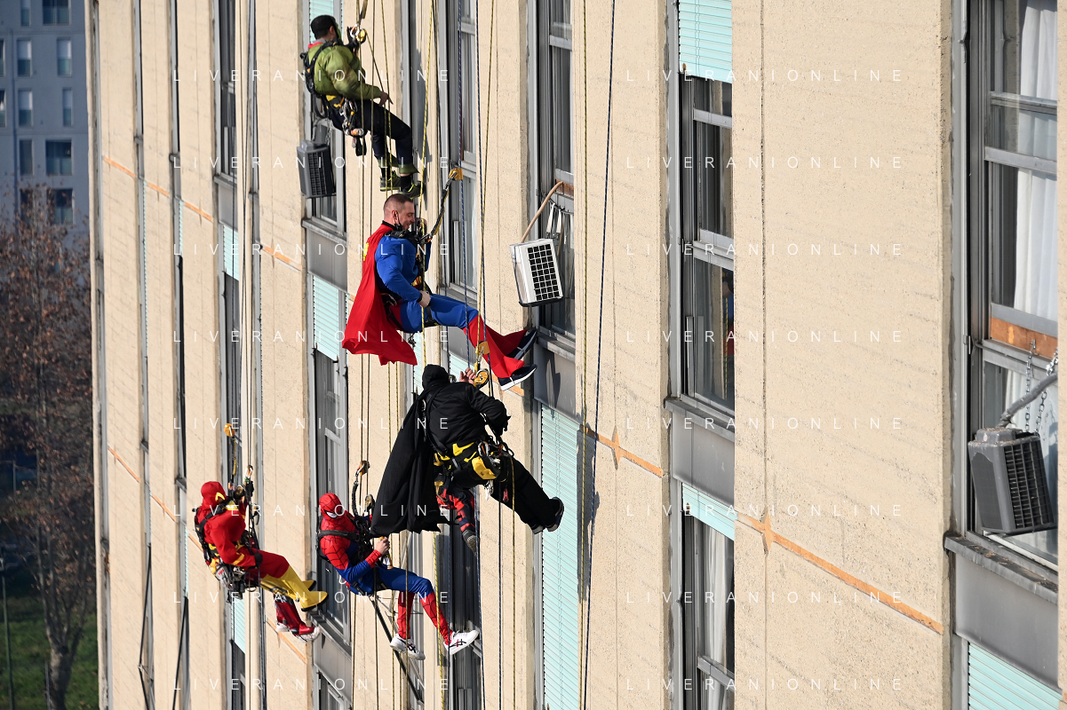Super Eroi acrobatici all'ospedale San Paolo portano gli auguri di buone feste ai bimbi della pediatria e non solo - Milano 15.12.2021 - 51 file