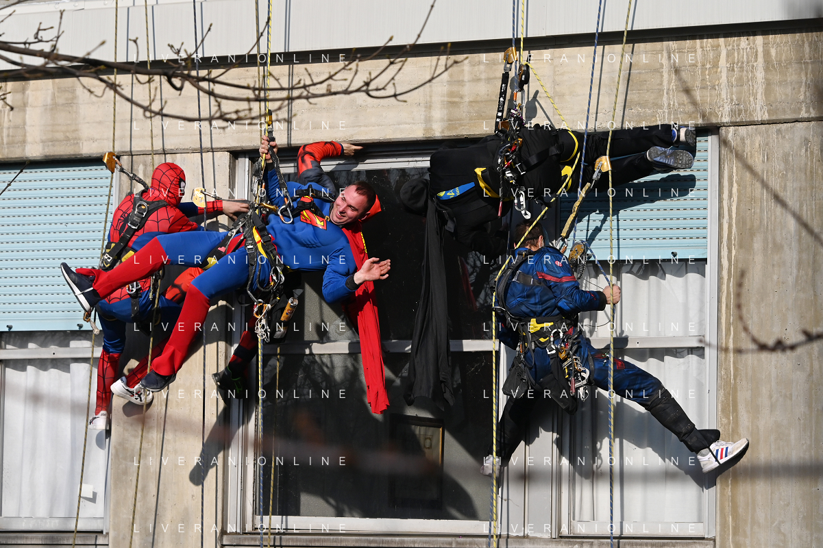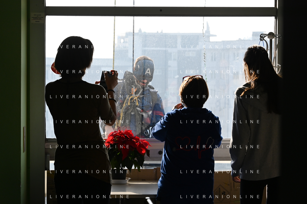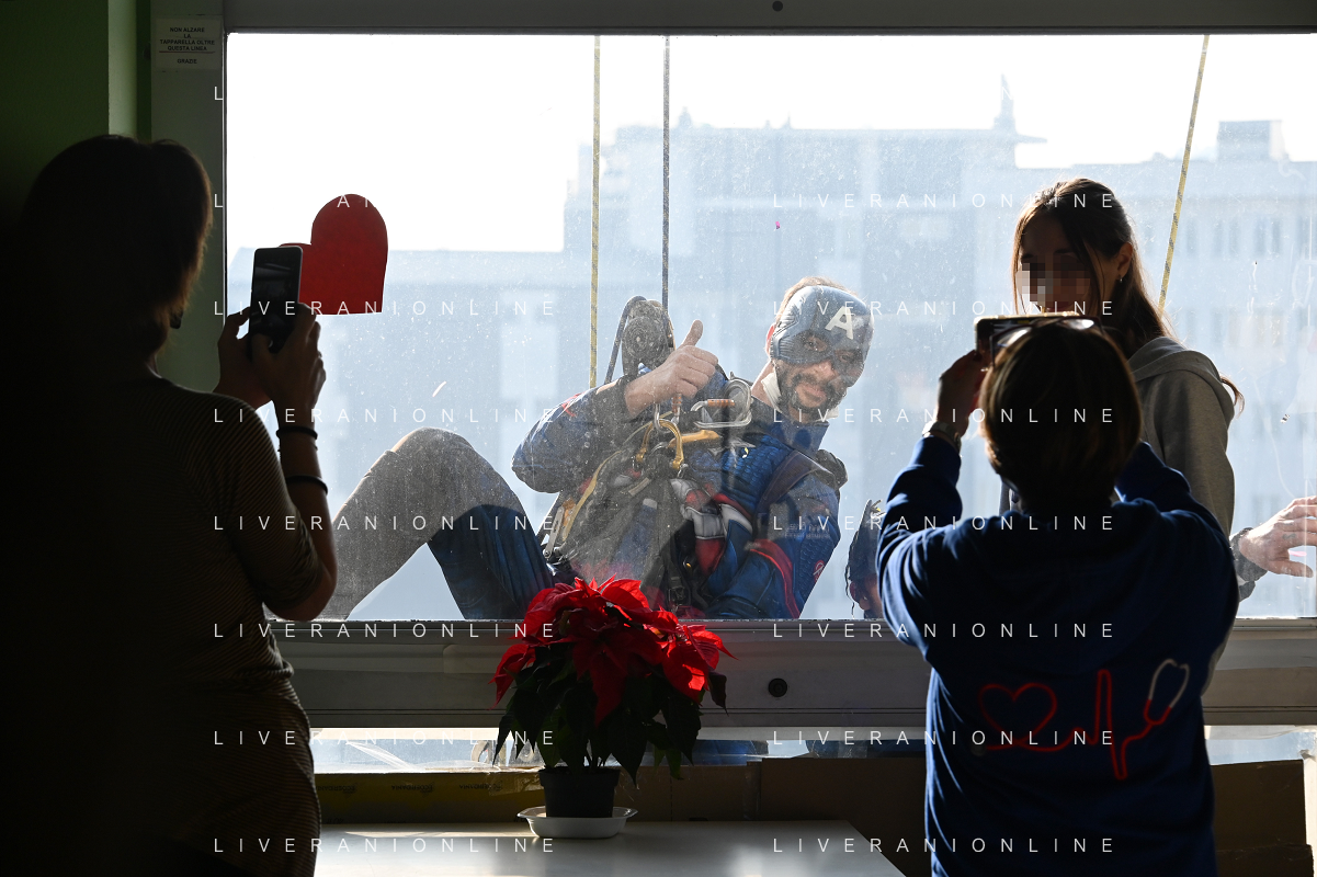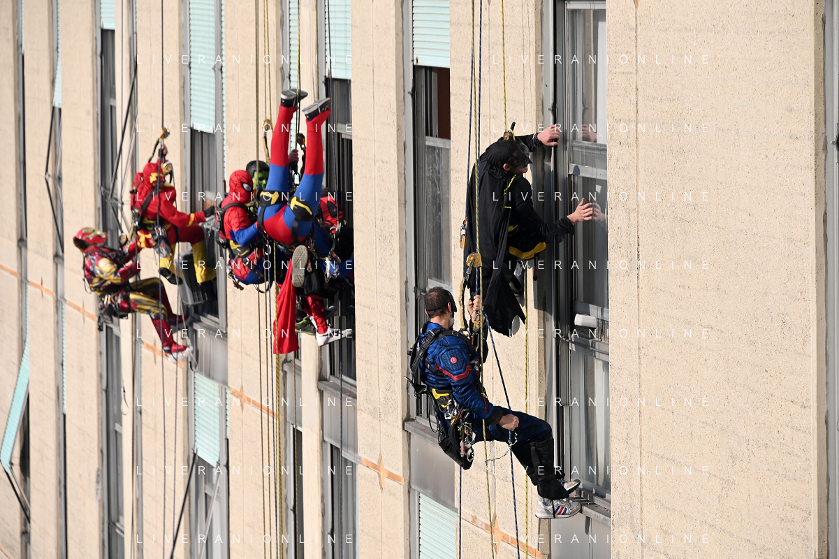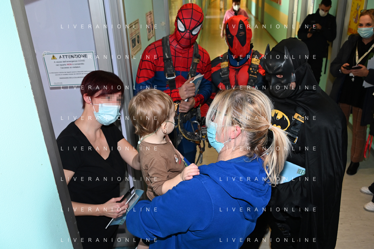 Super Eroi acrobatici all'ospedale San Paolo portano gli auguri di buone feste ai bimbi della pediatria e non solo - Milano 15.12.2021 - 51 file