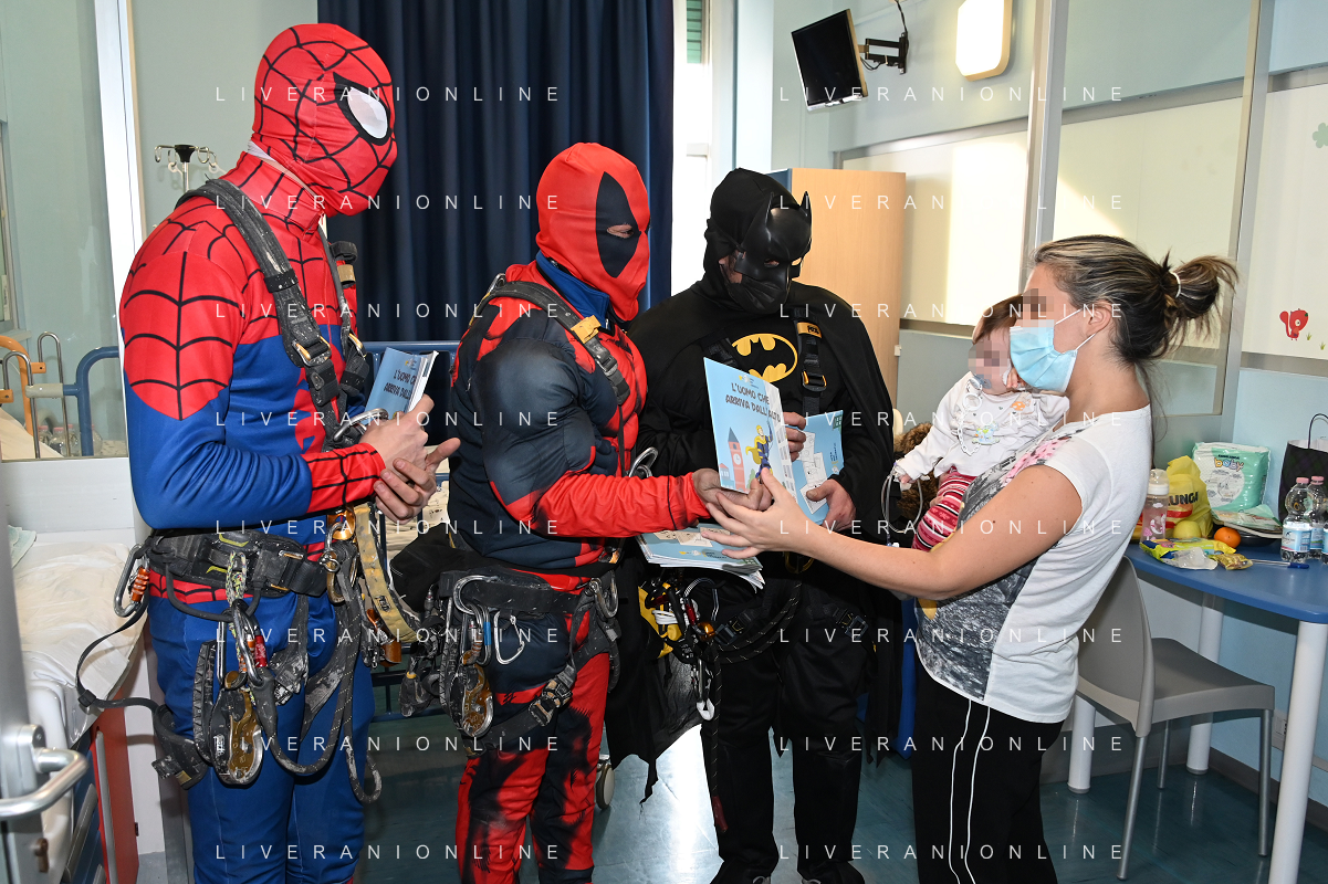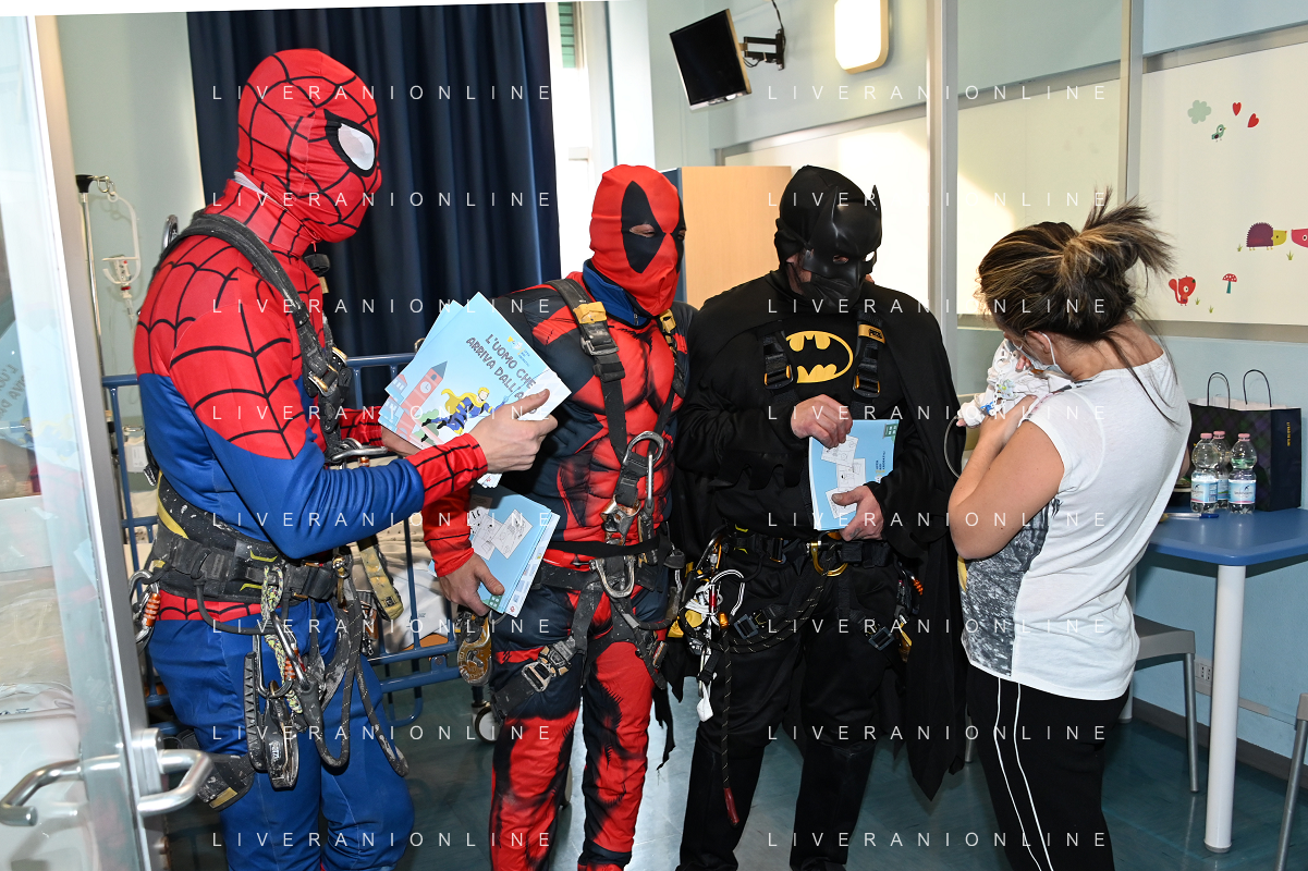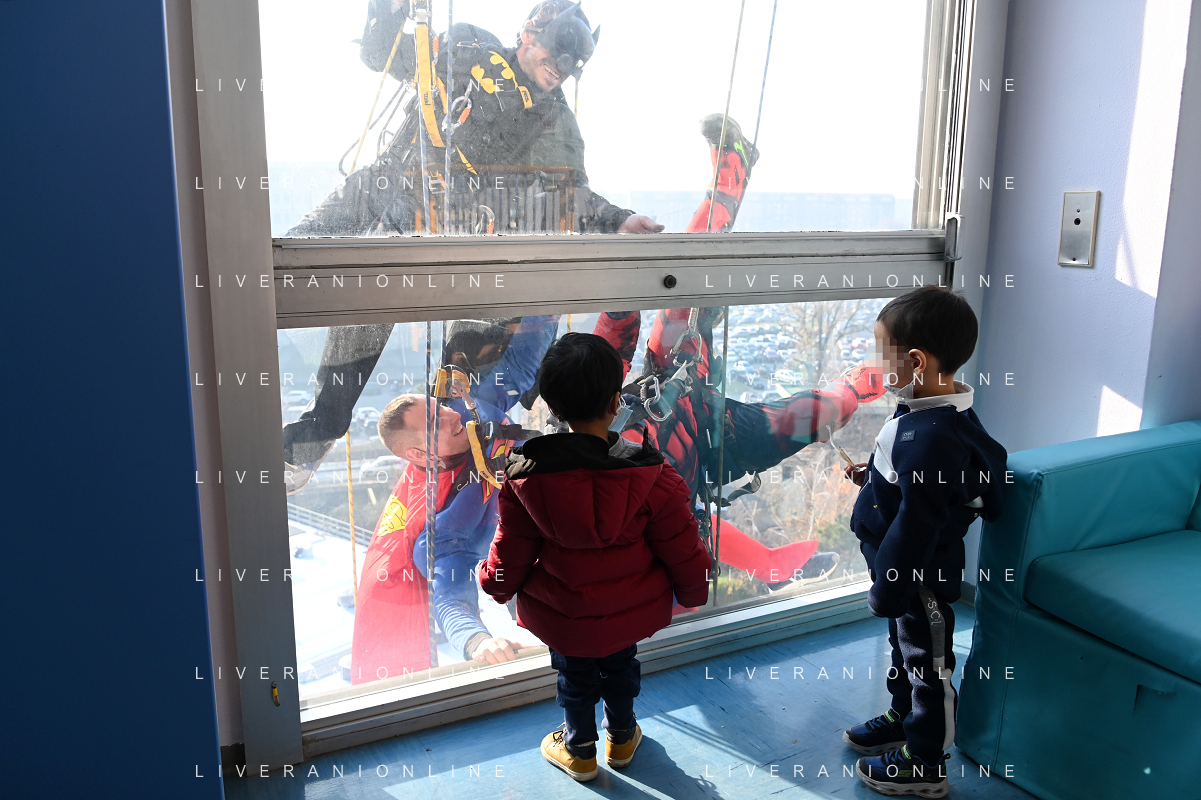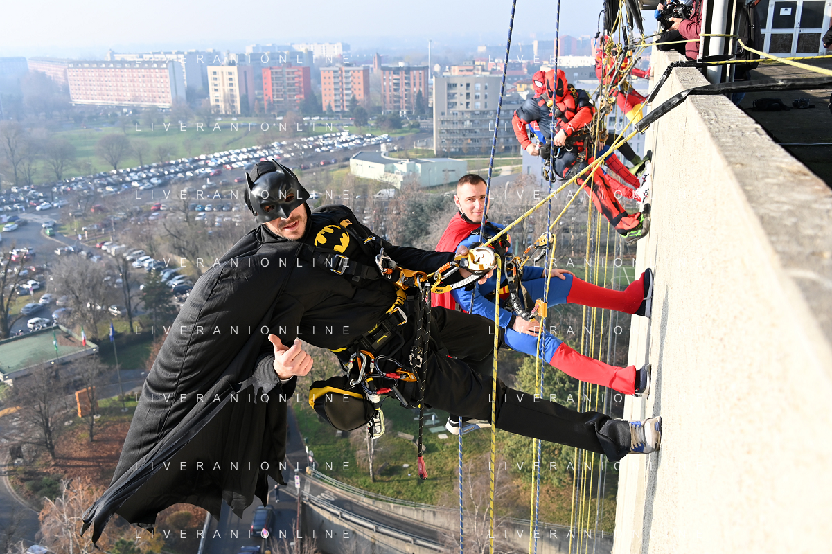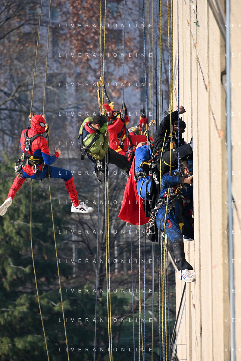 Super Eroi acrobatici all'ospedale San Paolo portano gli auguri di buone feste ai bimbi della pediatria e non solo - Milano 15.12.2021 - 51 file