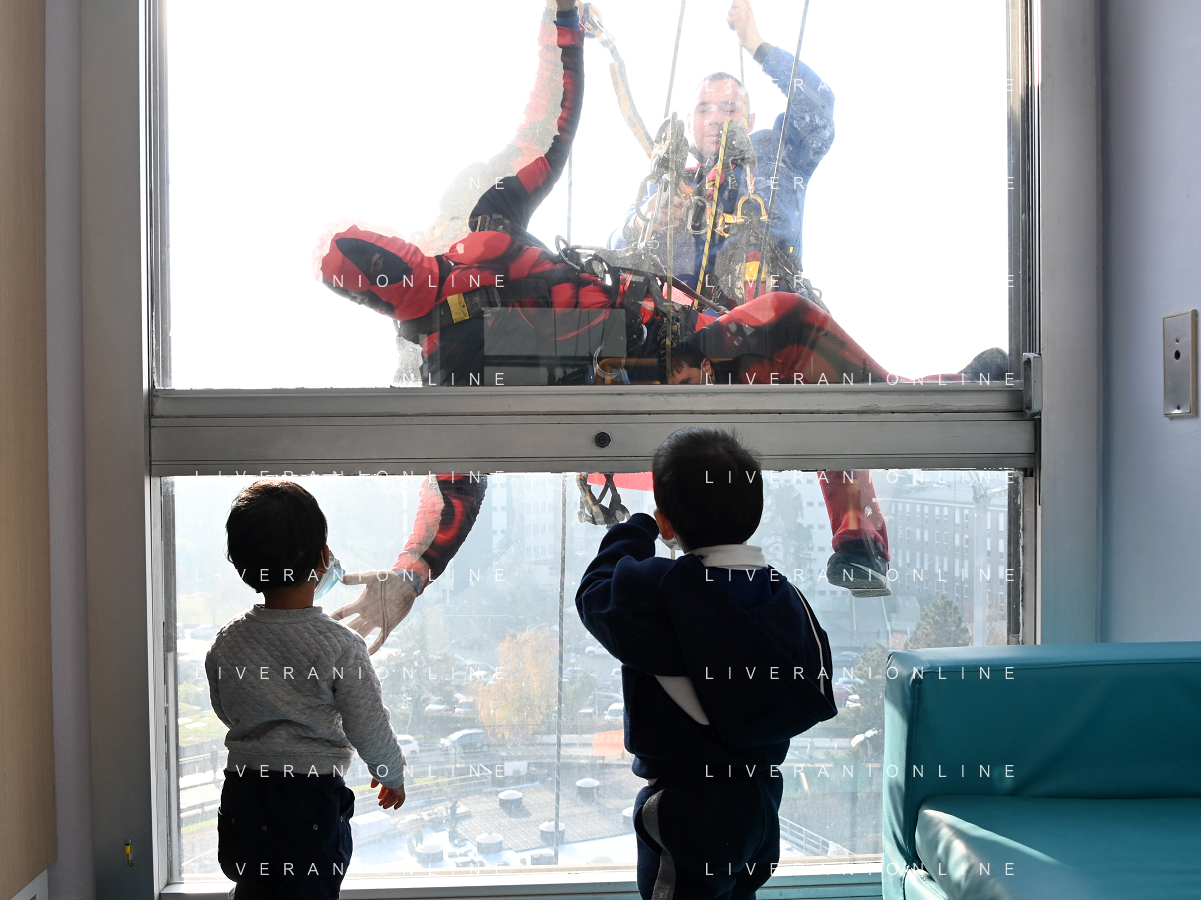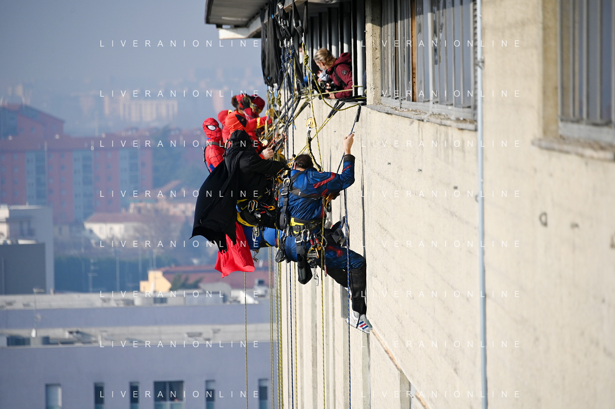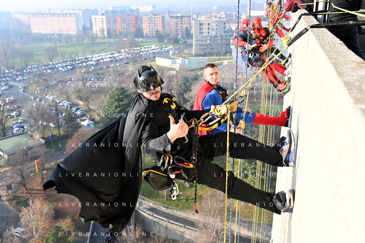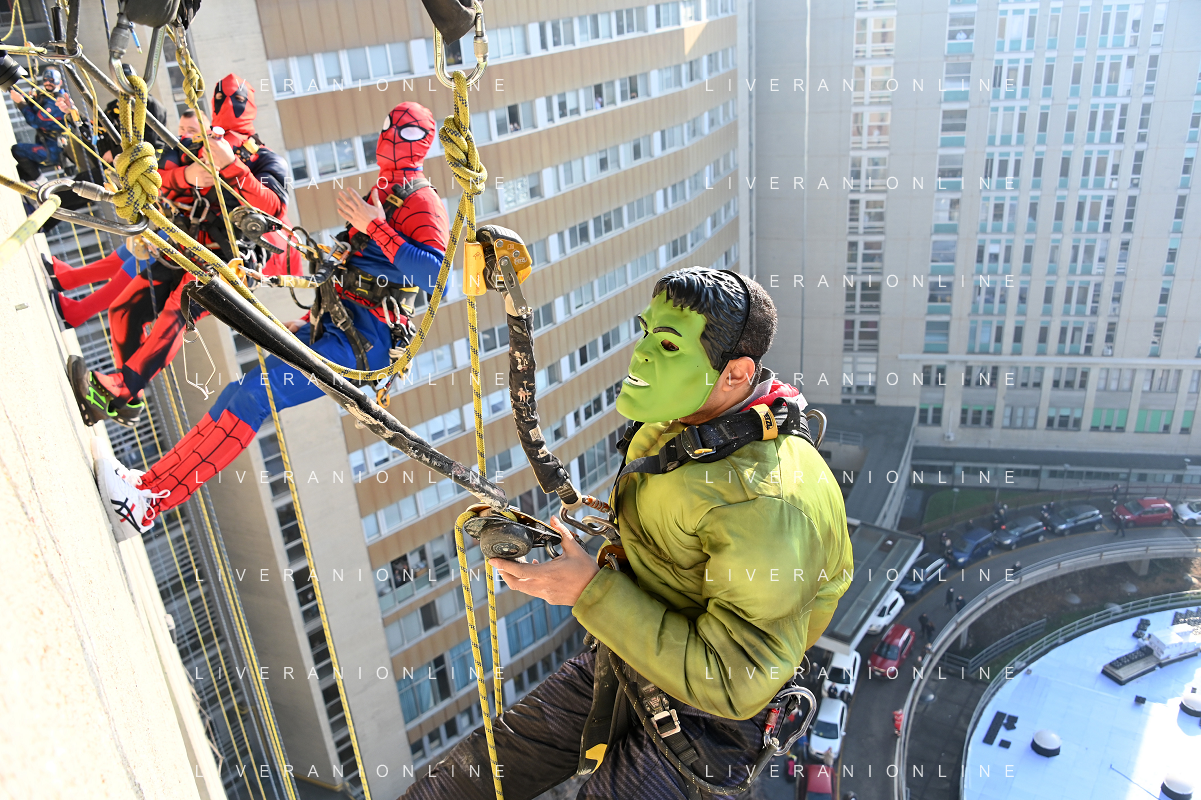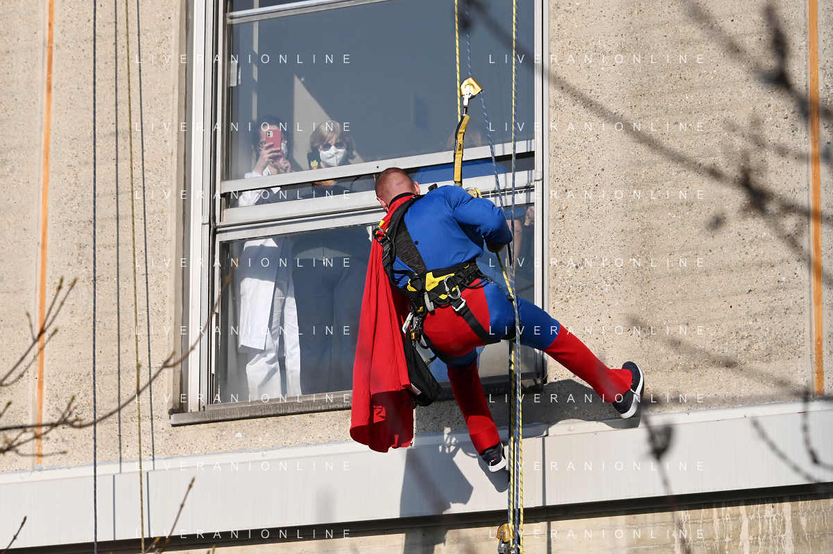 Super Eroi acrobatici all'ospedale San Paolo portano gli auguri di buone feste ai bimbi della pediatria e non solo - Milano 15.12.2021 - 51 file