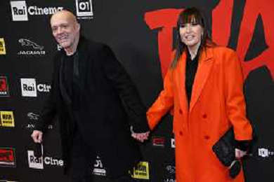 © TVRG Photocall Diabolik nella foto Max Pezzali cantante con la moglie Debora Pelamatti Milano 15-12-2021 Photocall con i protagonisti del film Diabolik presso il cinema Odeon di via Santa Radegonda foto Roberto Garavaglia/ag. Aldo Liverani sas/AGENZIA ALDO LIVERANI SAS