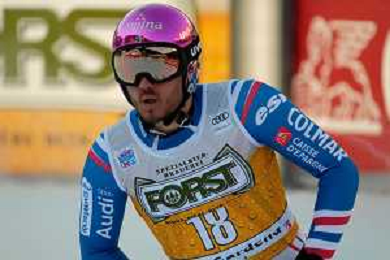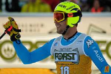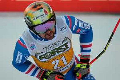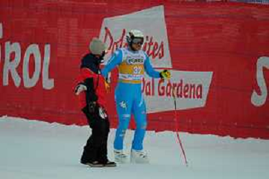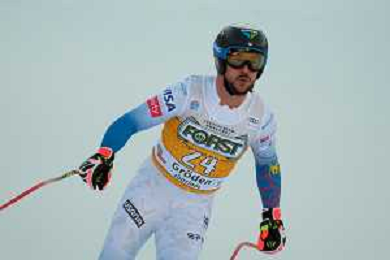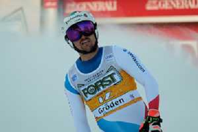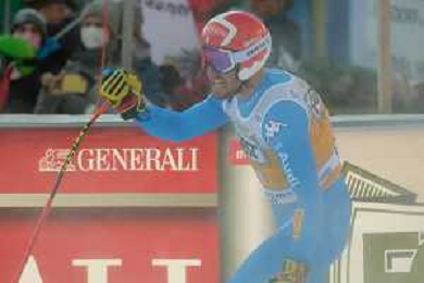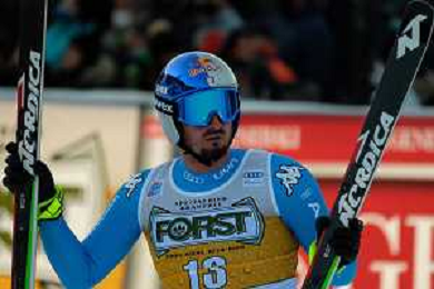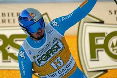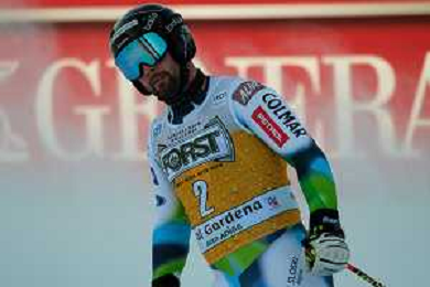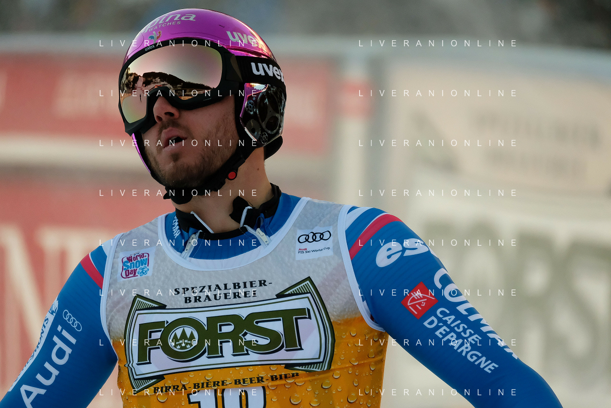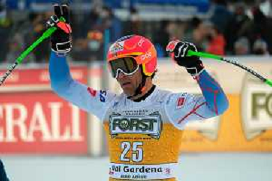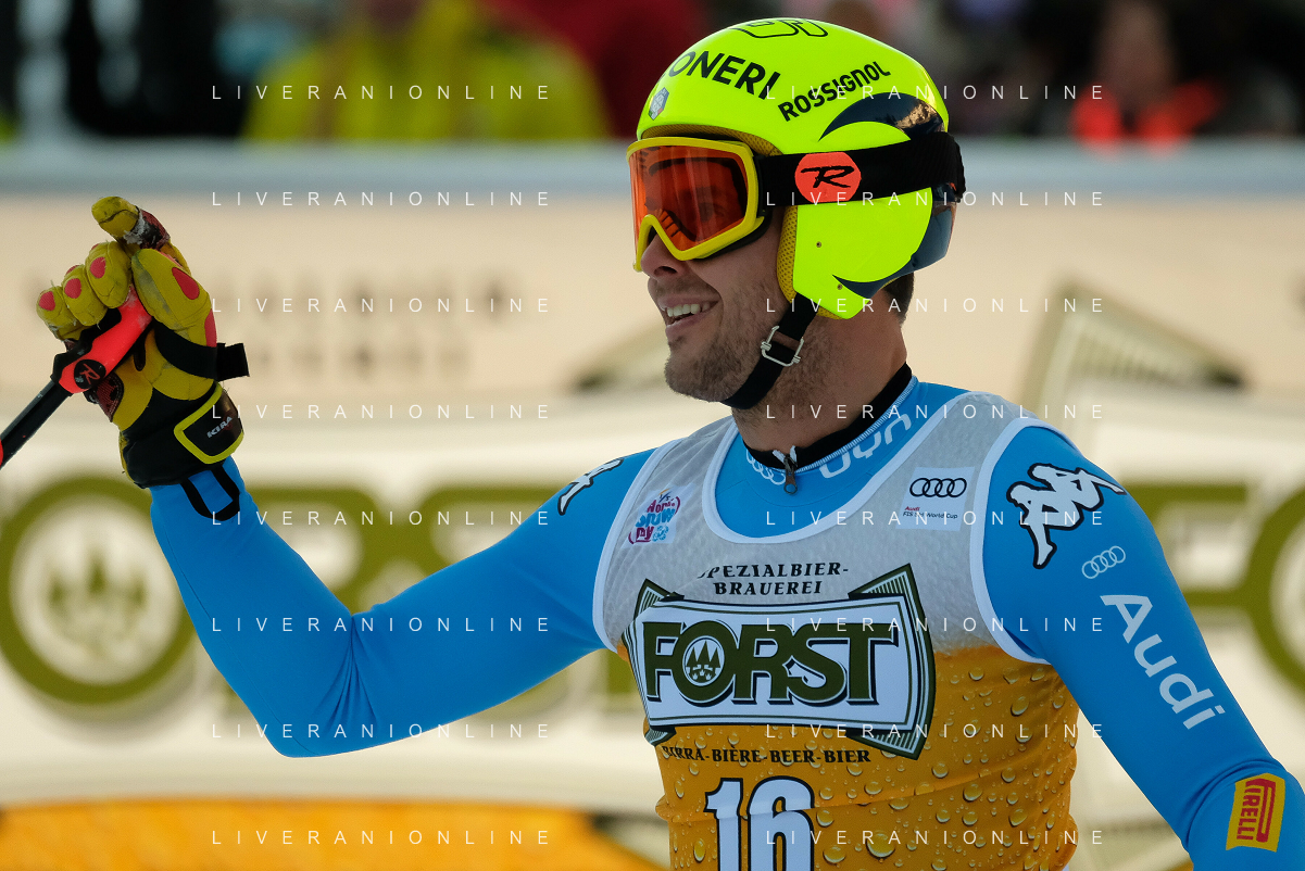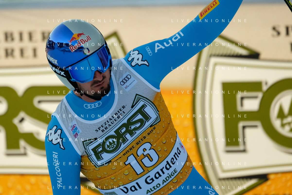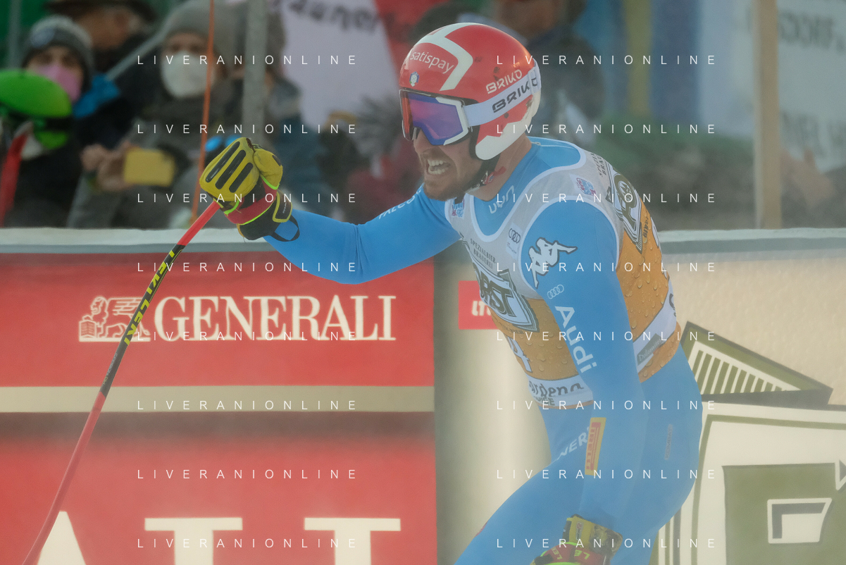 TommasiniR/LMedia - 2021 FIS Ski World Cup - Men's Downhill - alpine ski race 18 December 2021 - Saslong, Val Gardena, Italy Photo showing: Mattia Casse (ITA) at the finish line. @TommasiniR/LMedia/AGENZIA ALDO LIVERANI SAS